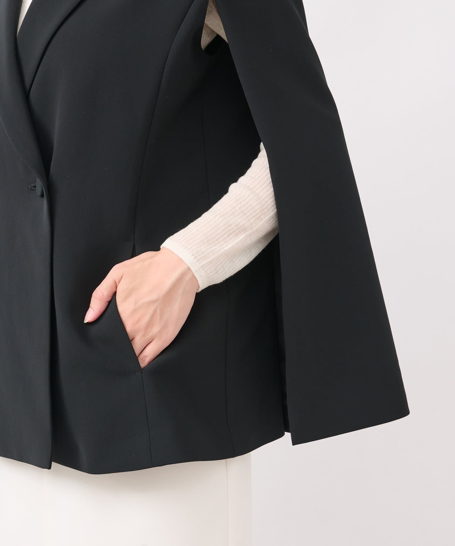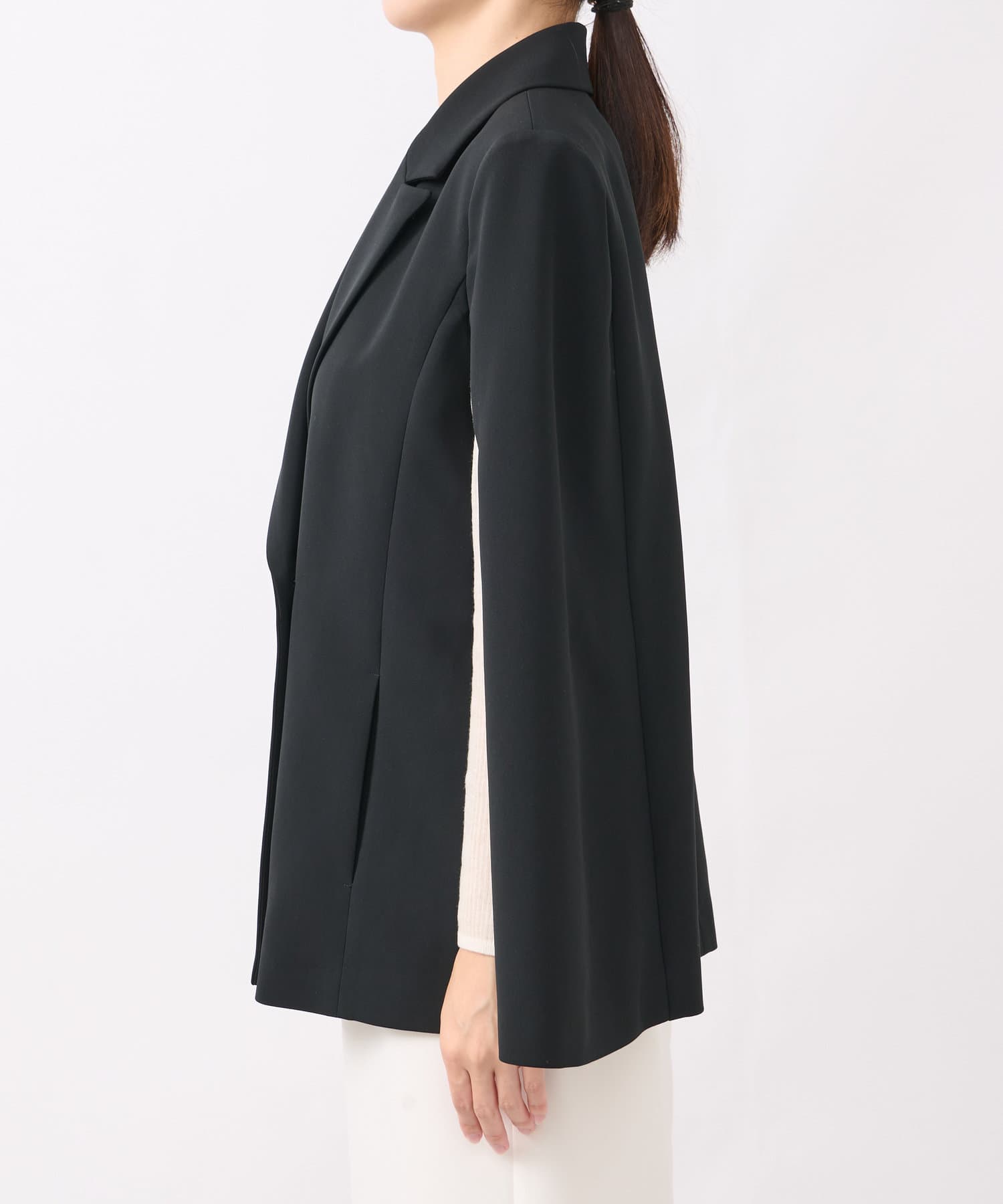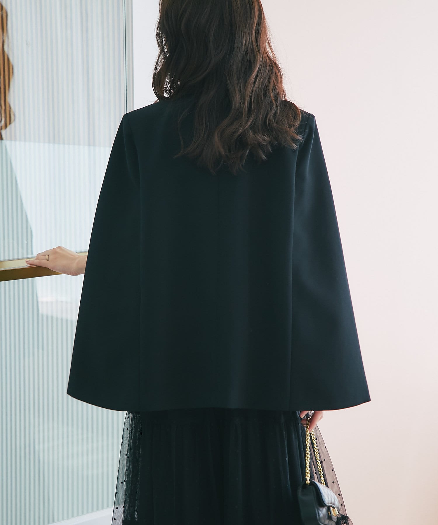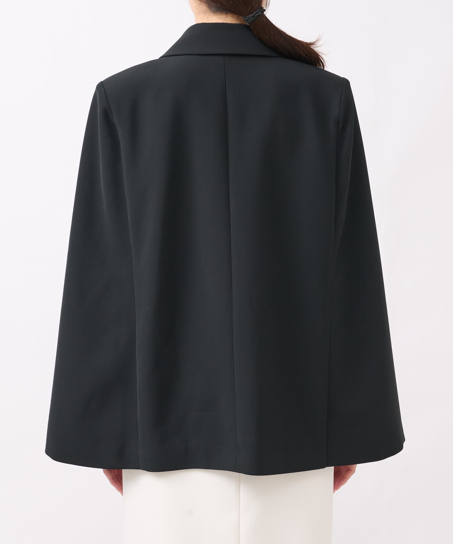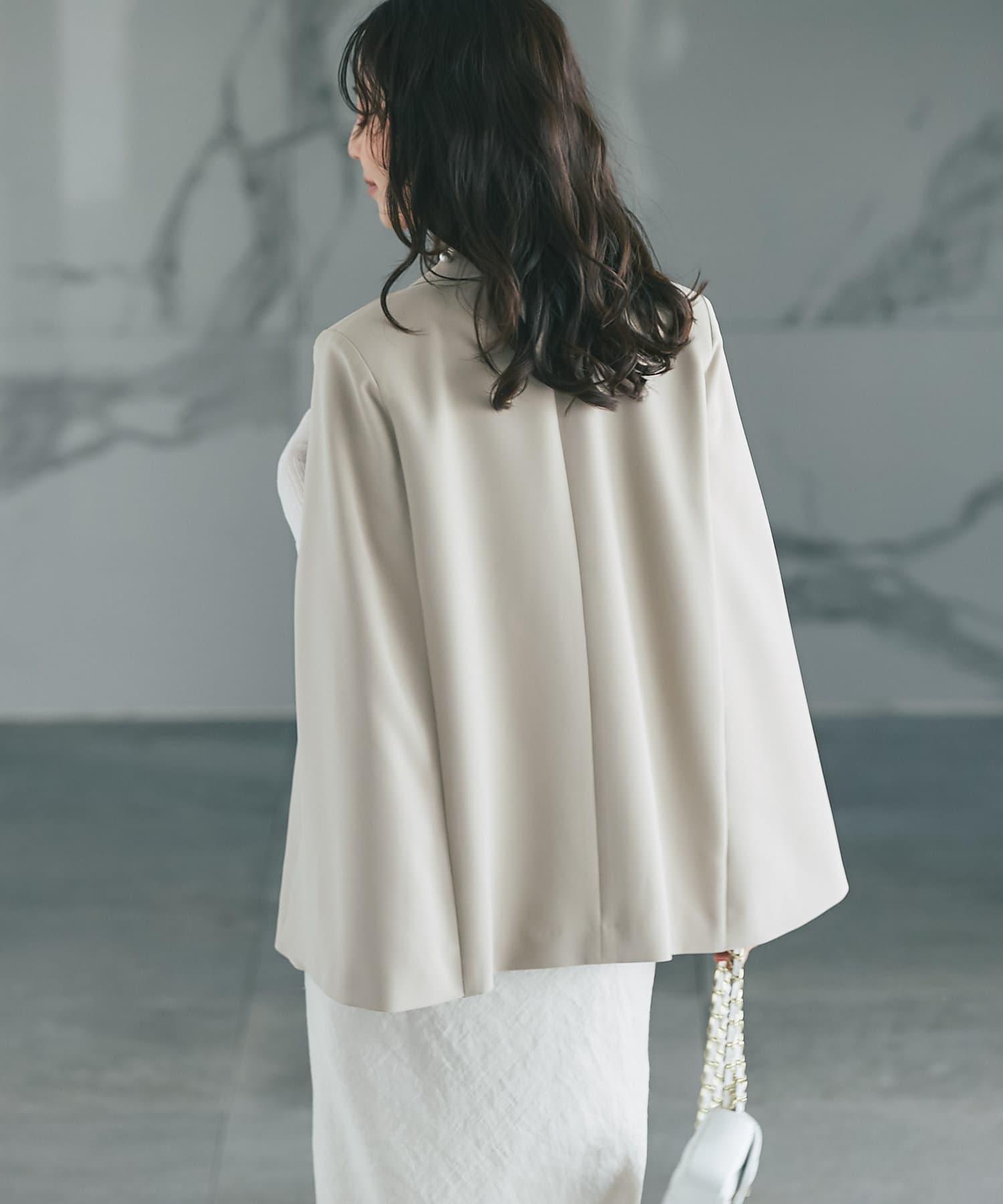 羽織るだけで上品なコーディネートになる、ケープ風デザインジャケット。