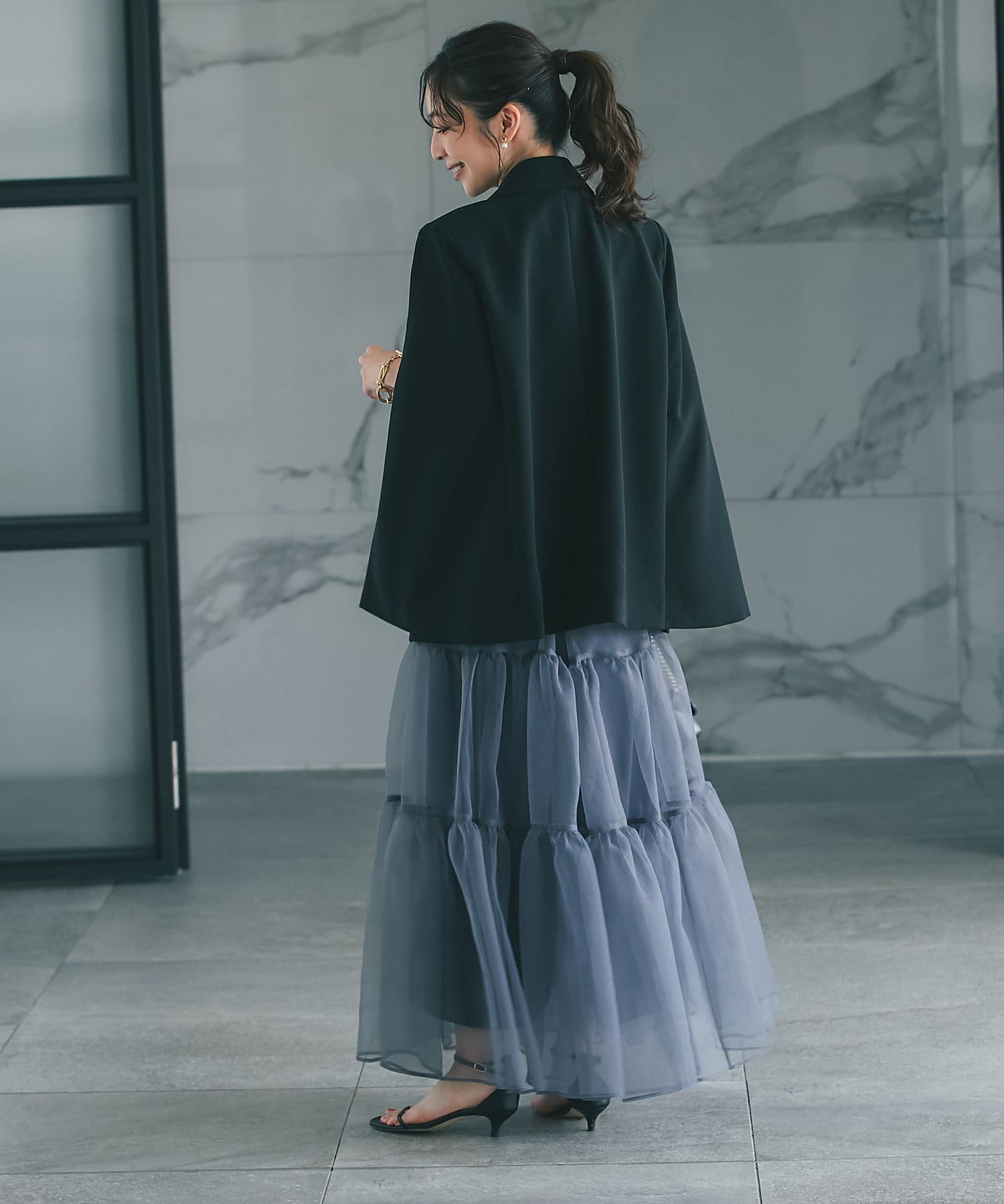 後ろ姿はゆるっとなりすぎず、上品なシルエット。