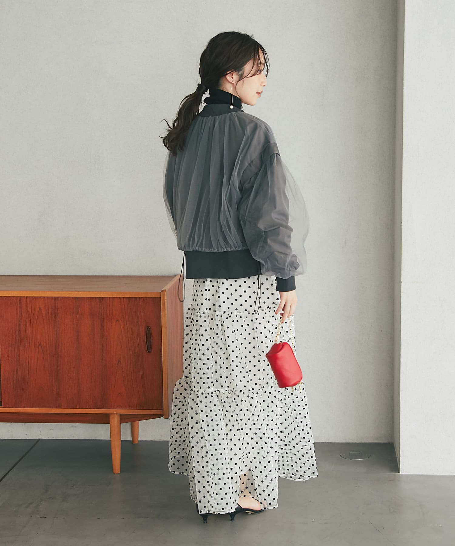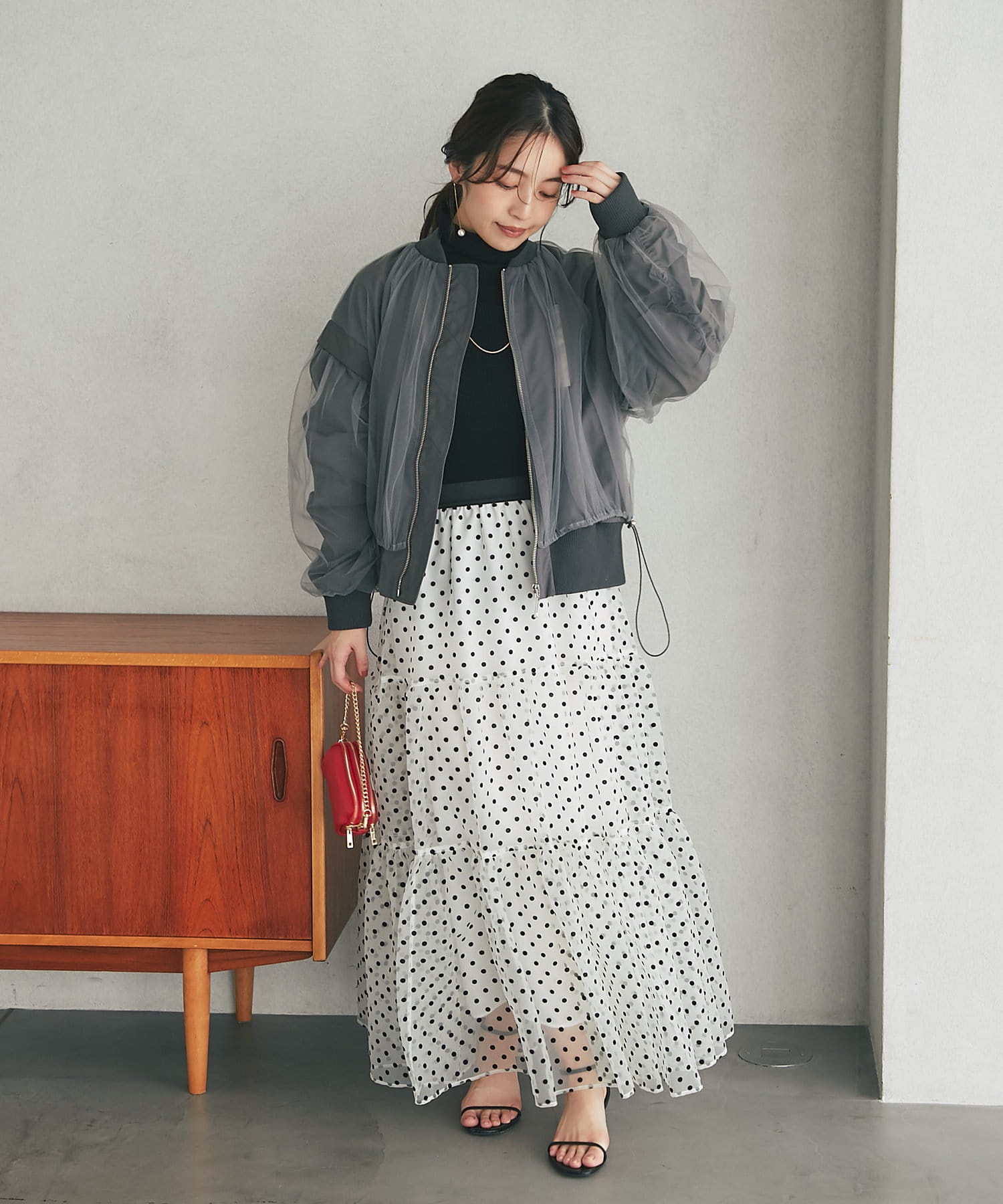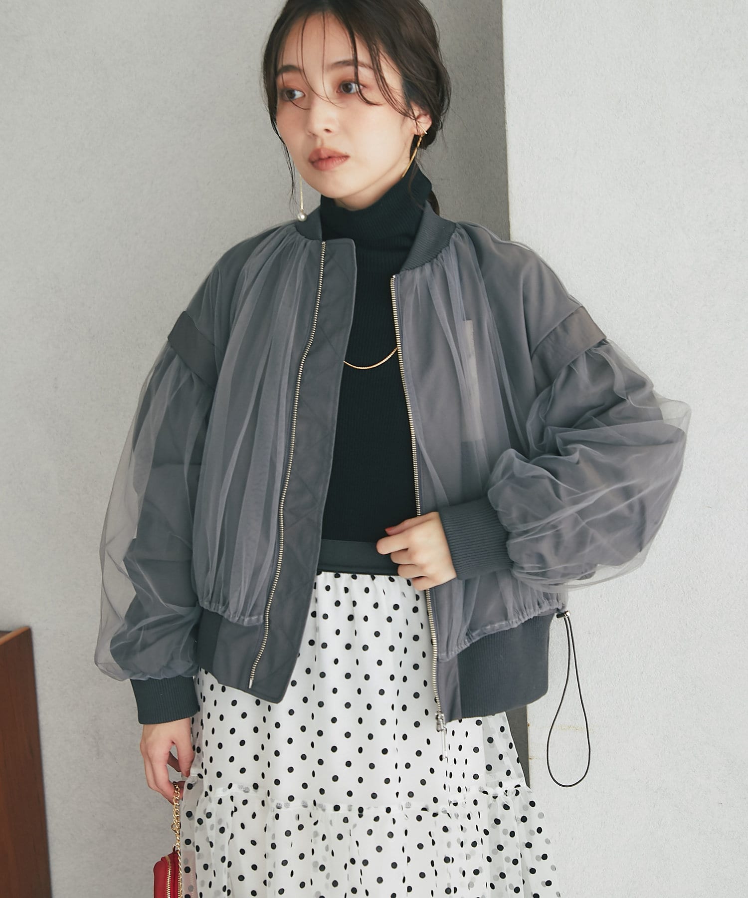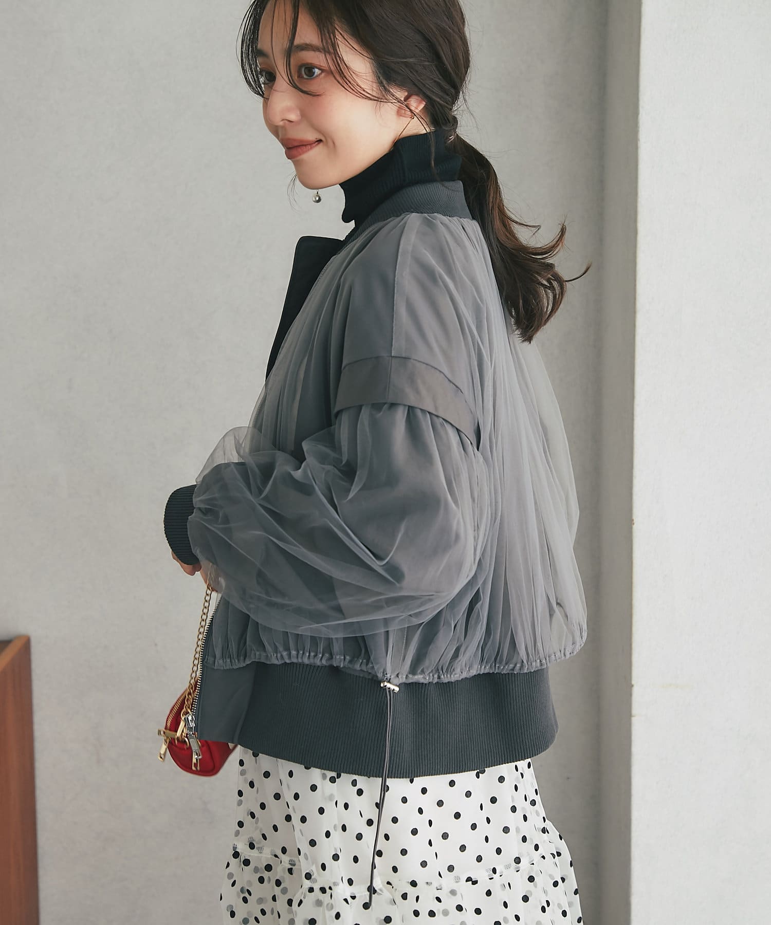 品番 LBZ1042107A0002 素材 表地:ポリエステル 100% / チュール部分 ナイロン100% / リブ部分 ポリエステル100%
