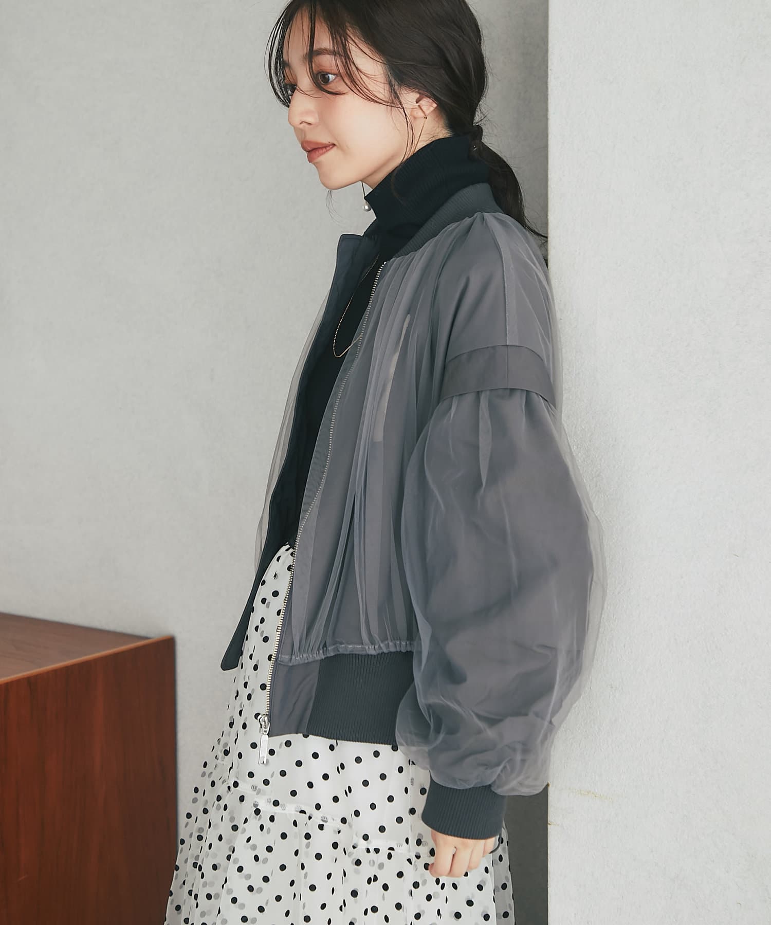 袖の切り替えで肩回りもすっきり見えて、程よい丈感でボトムと合わせやすいです。