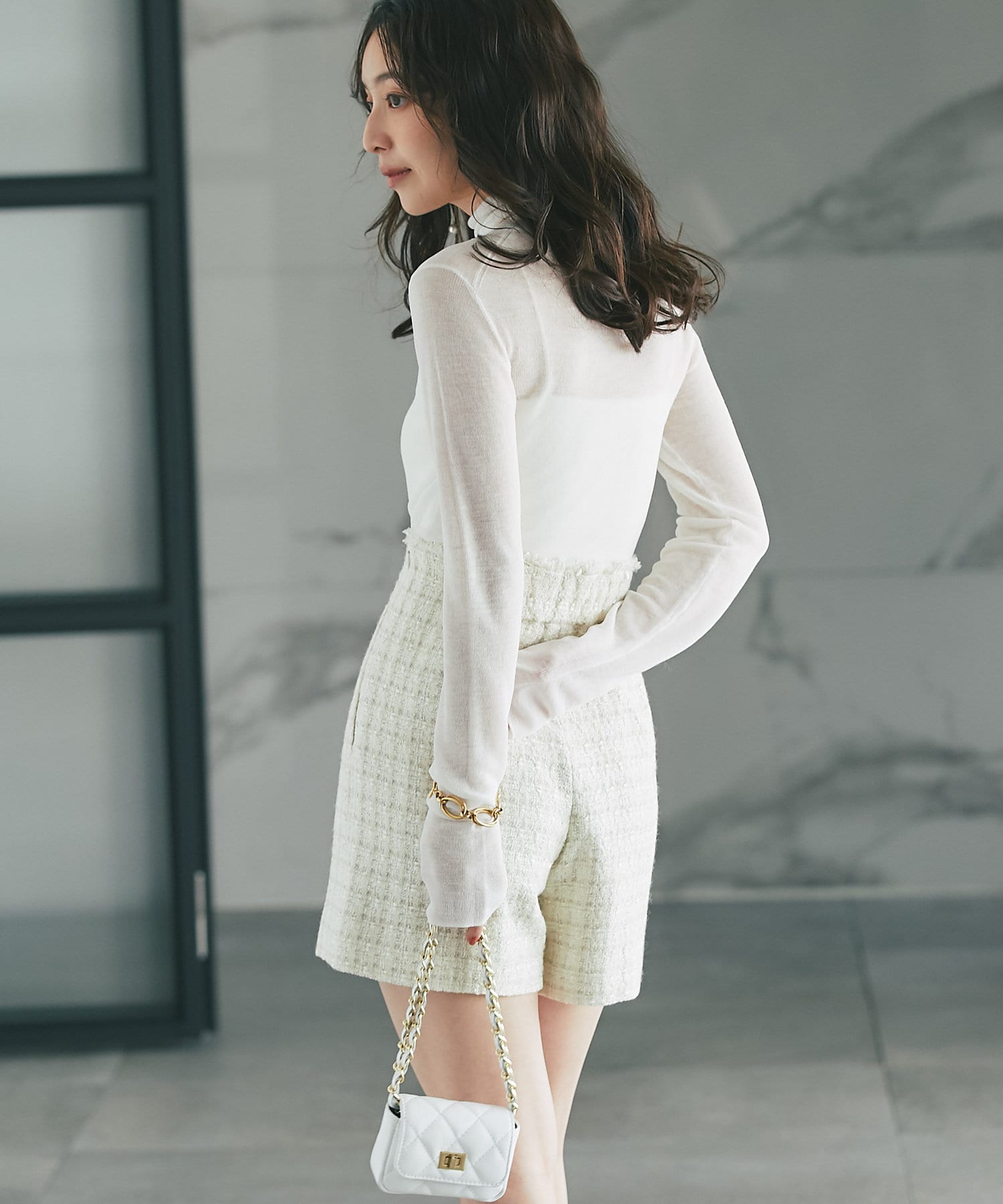ウエスト上端はポイントにほぐしたフリンジ仕様で華やかな印象に。