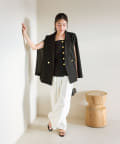 生地の落ち感ととろみ感が女性らしい柔らかなタックパンツ