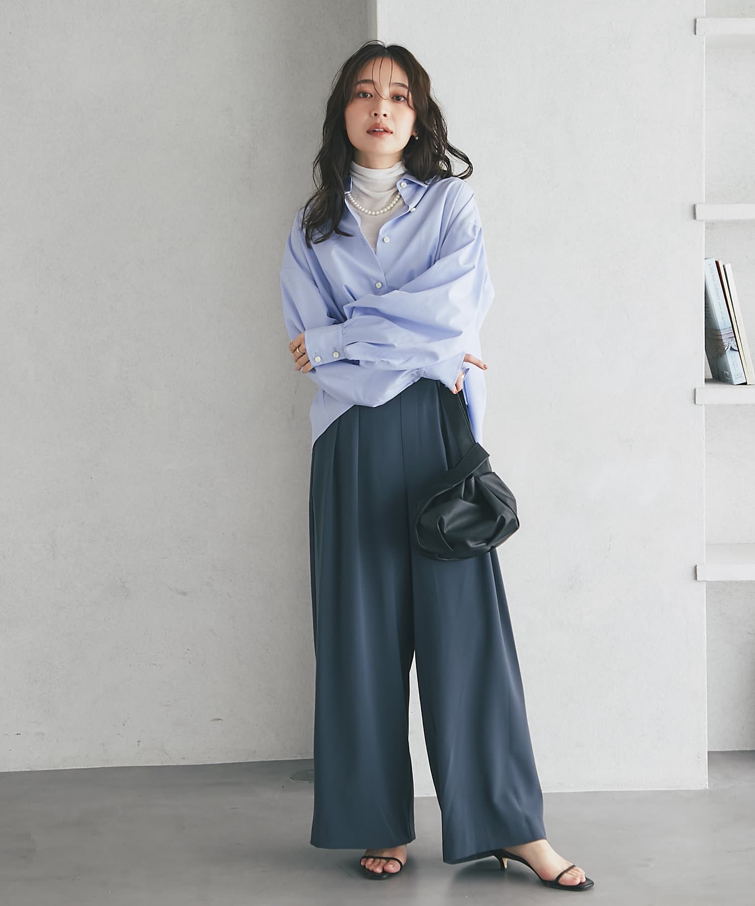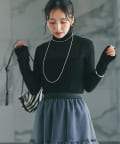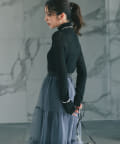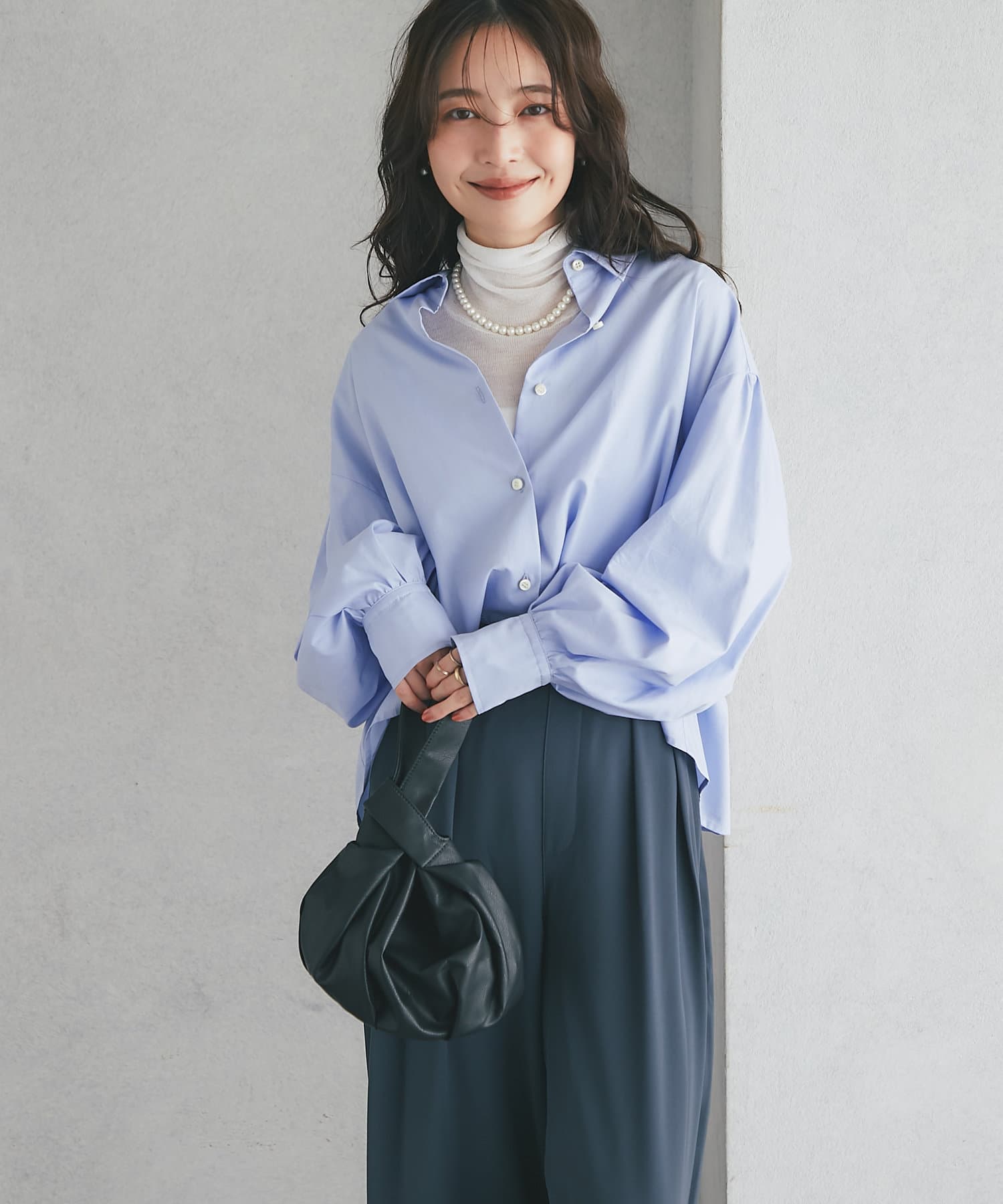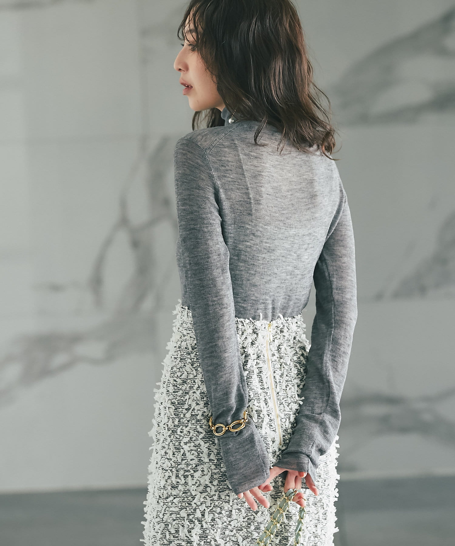タイトでシアーな軽さがあるので1枚着としてボリュームのあるボトム合わせも相性よくきまります。