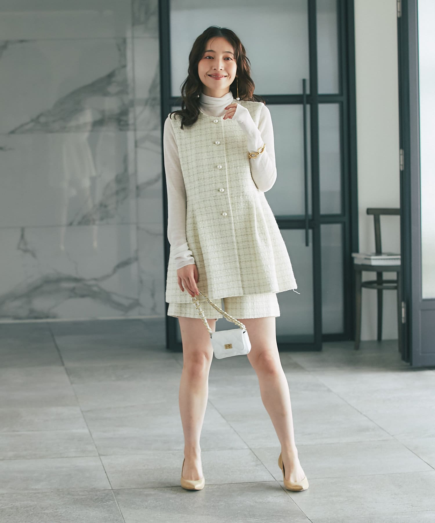ワンピースやジレ・ジャケットなどのレイヤードスタイルもおすすめ。