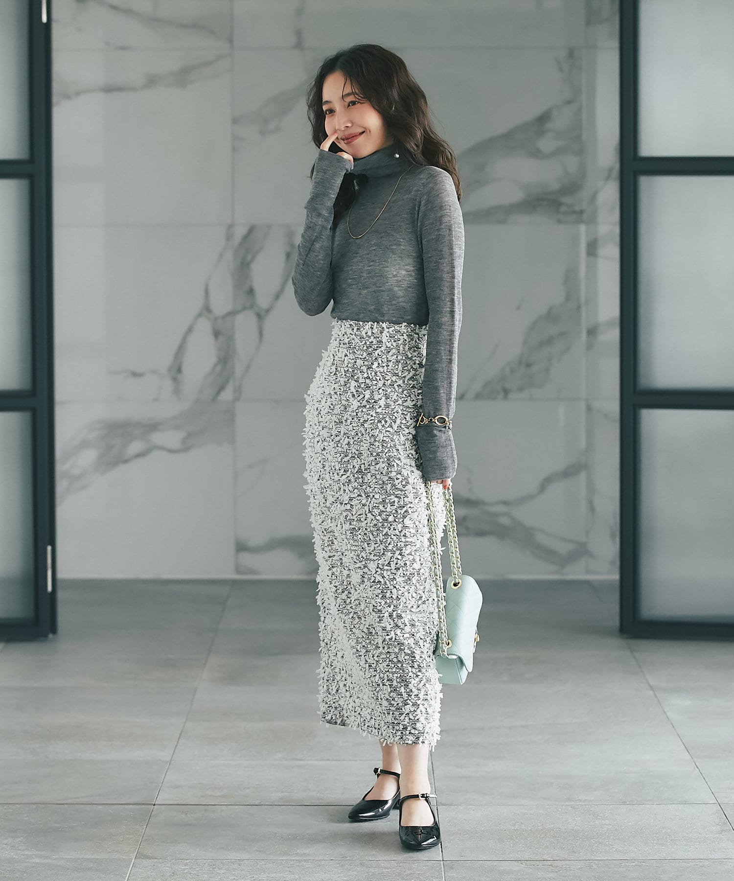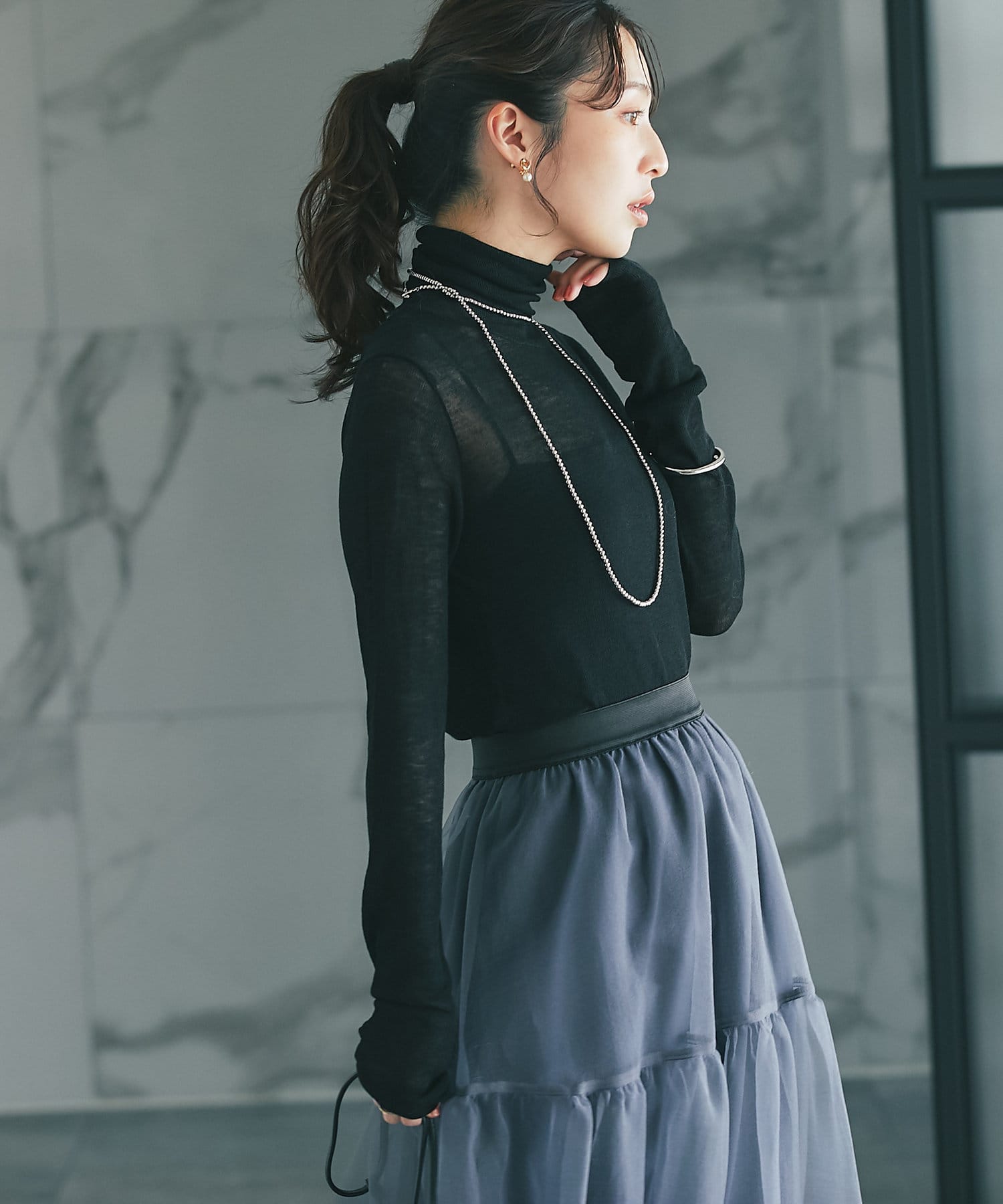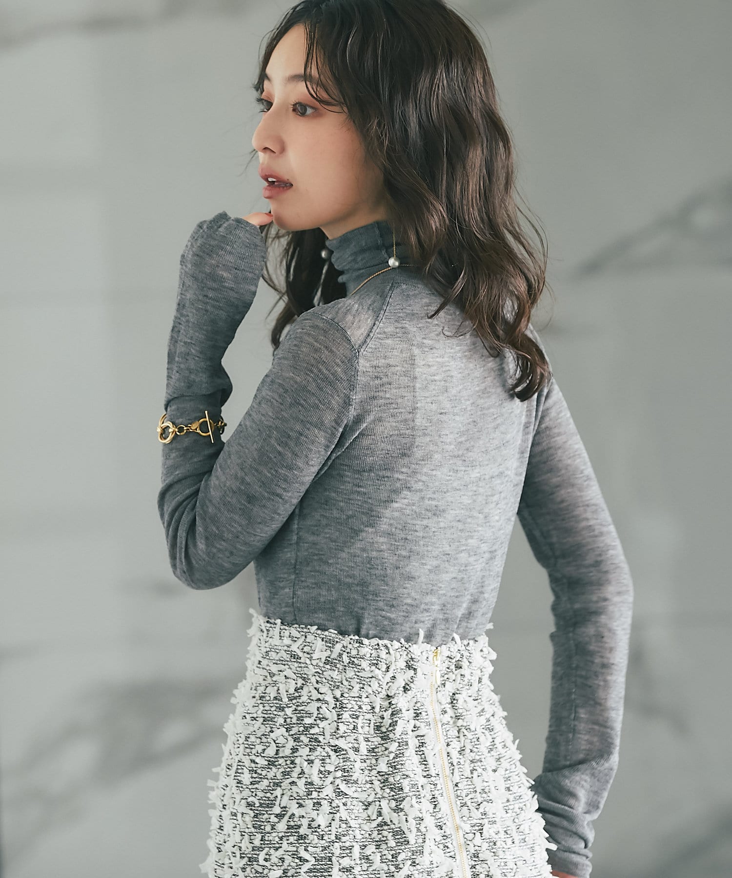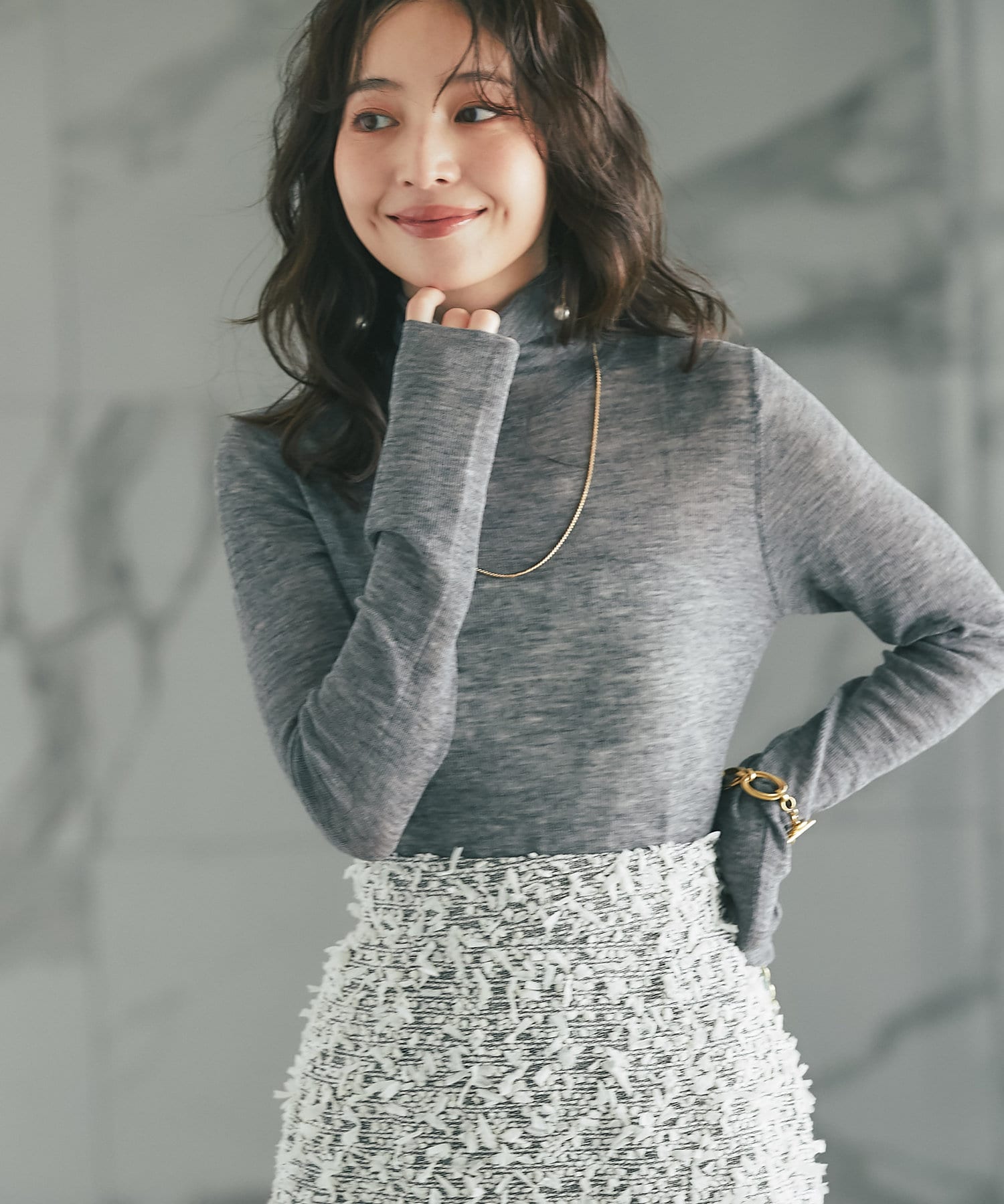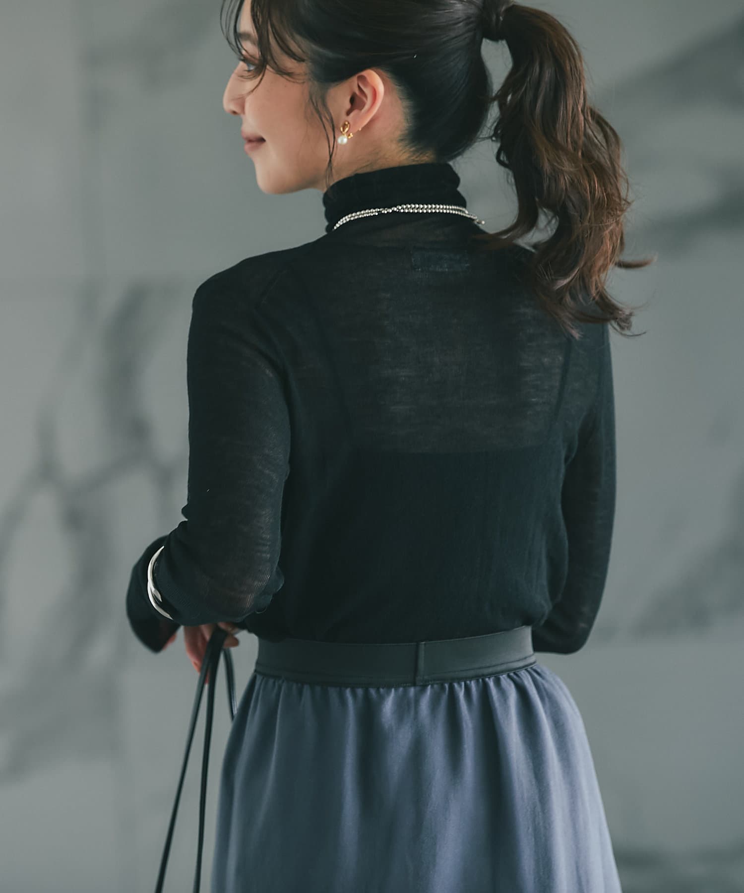 【着回し力抜群】シアーウールブレンドリブタートルニット