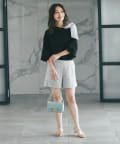 パンツスタイルで甘さをプラスするのもおすすめ。