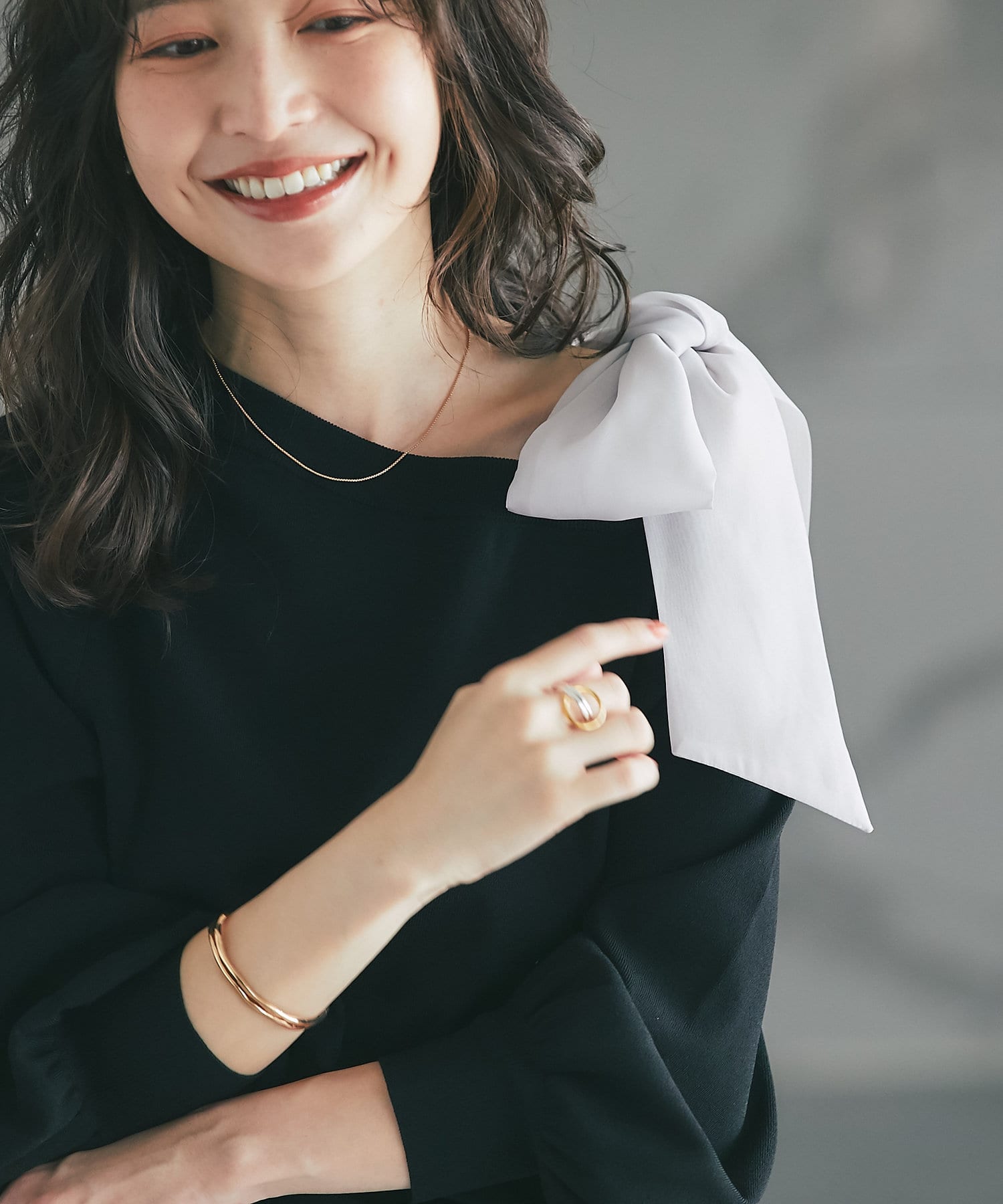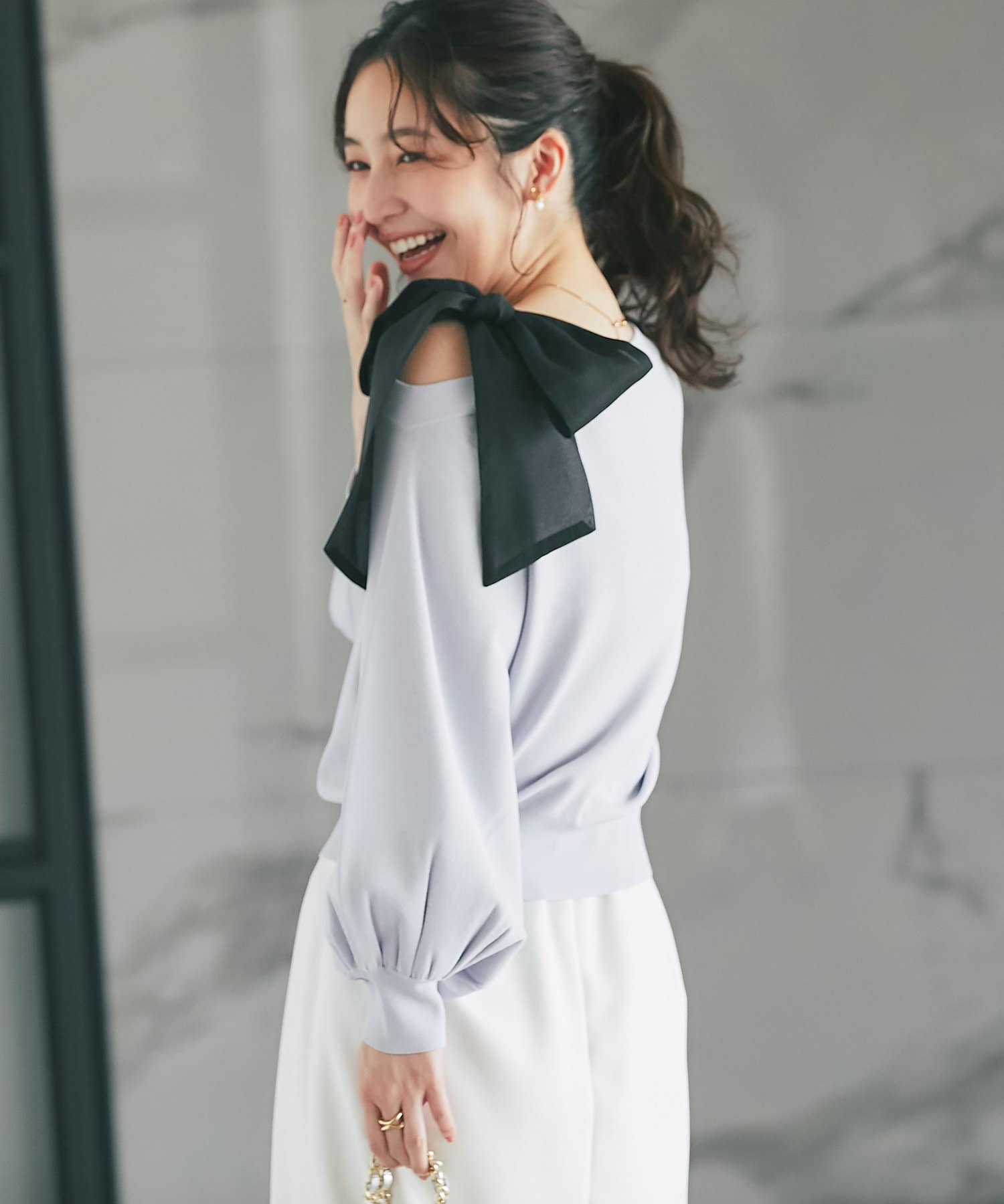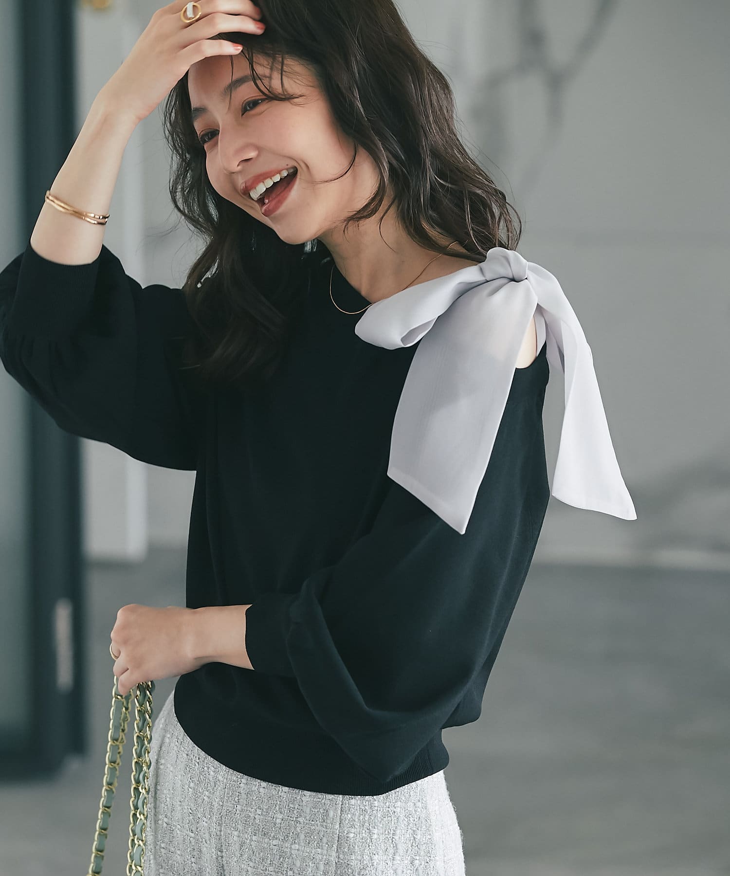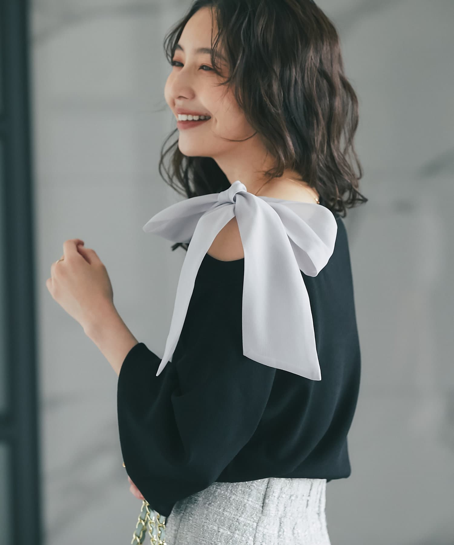 トレンドのリボンショルダーで、一気に上品な大人コーデになれるアイテムです。