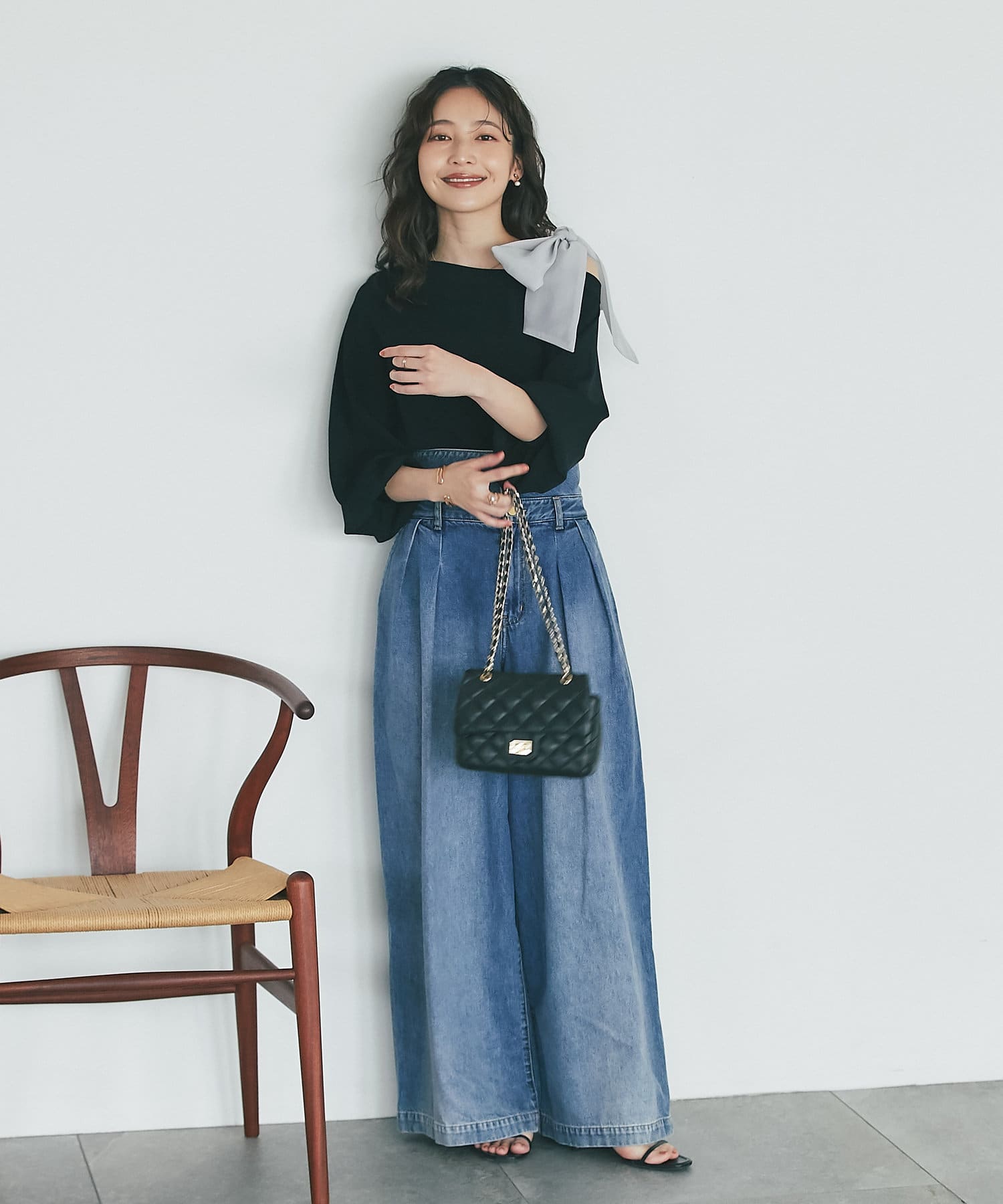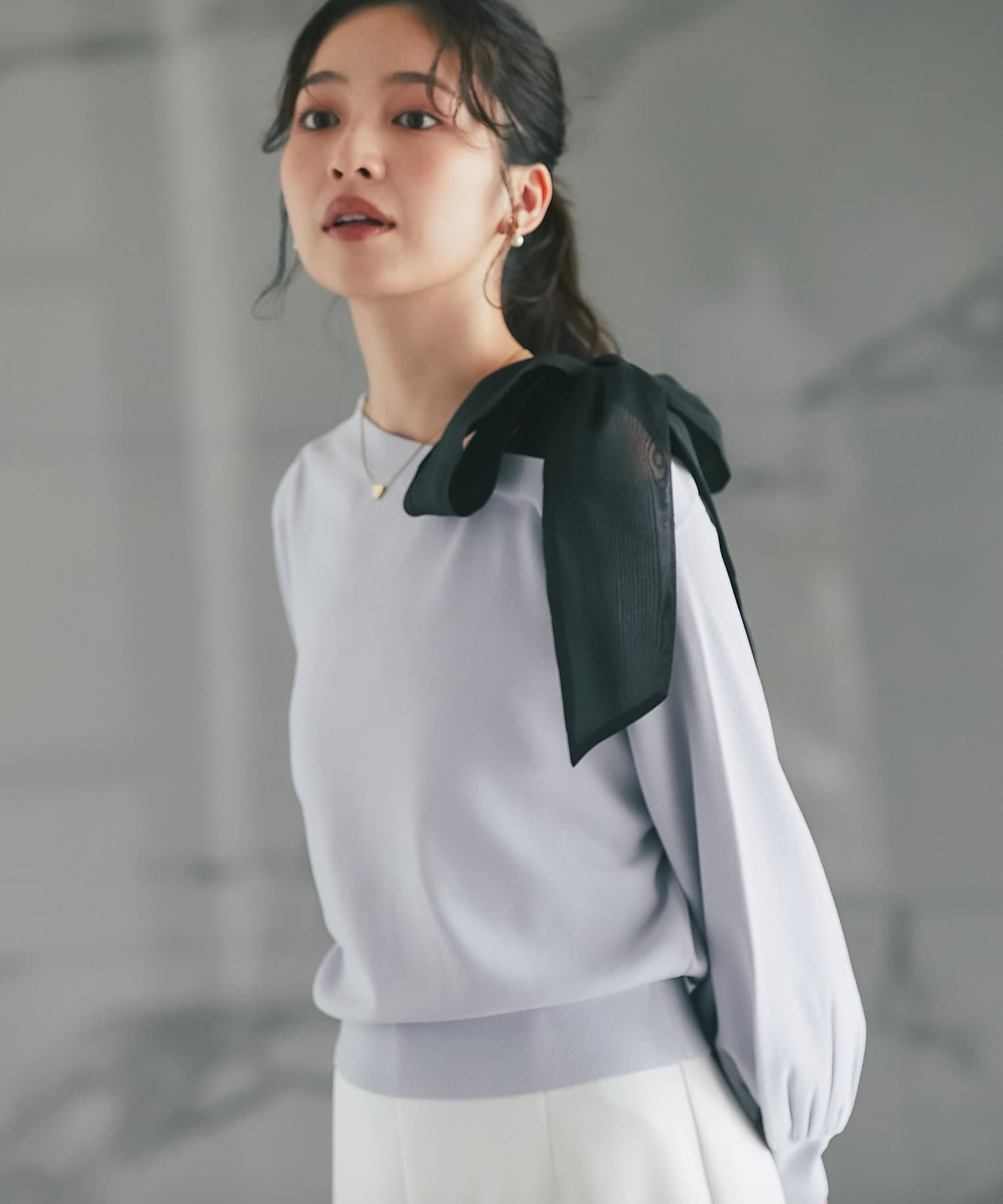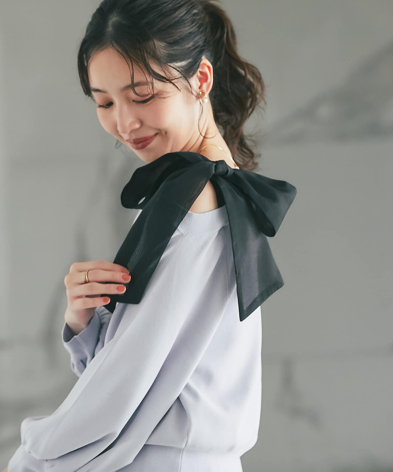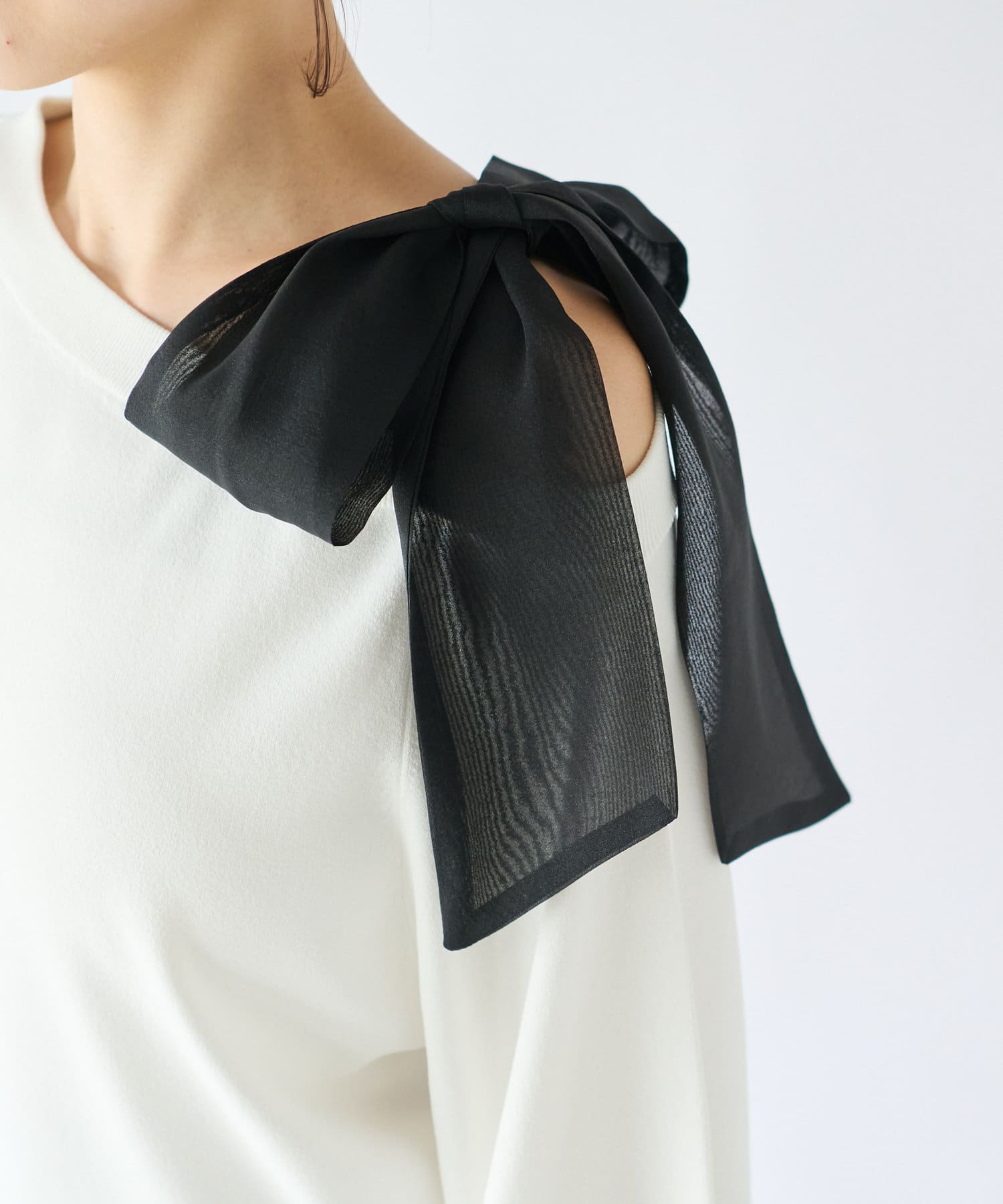 トレンドのリボンショルダーで、一気に上品な大人コーデになれるアイテムです。