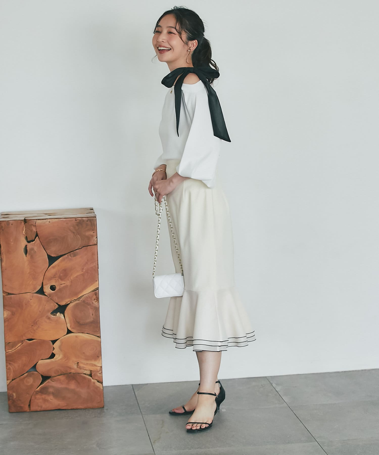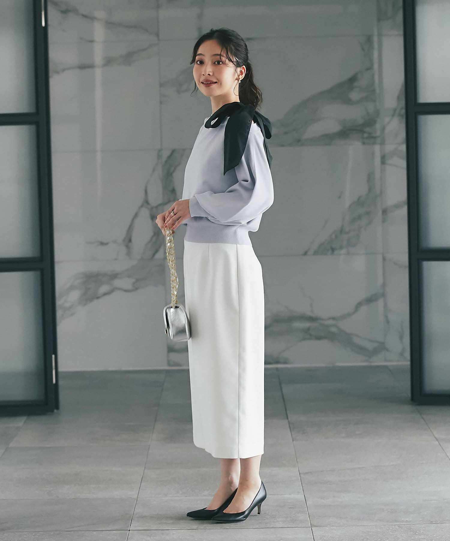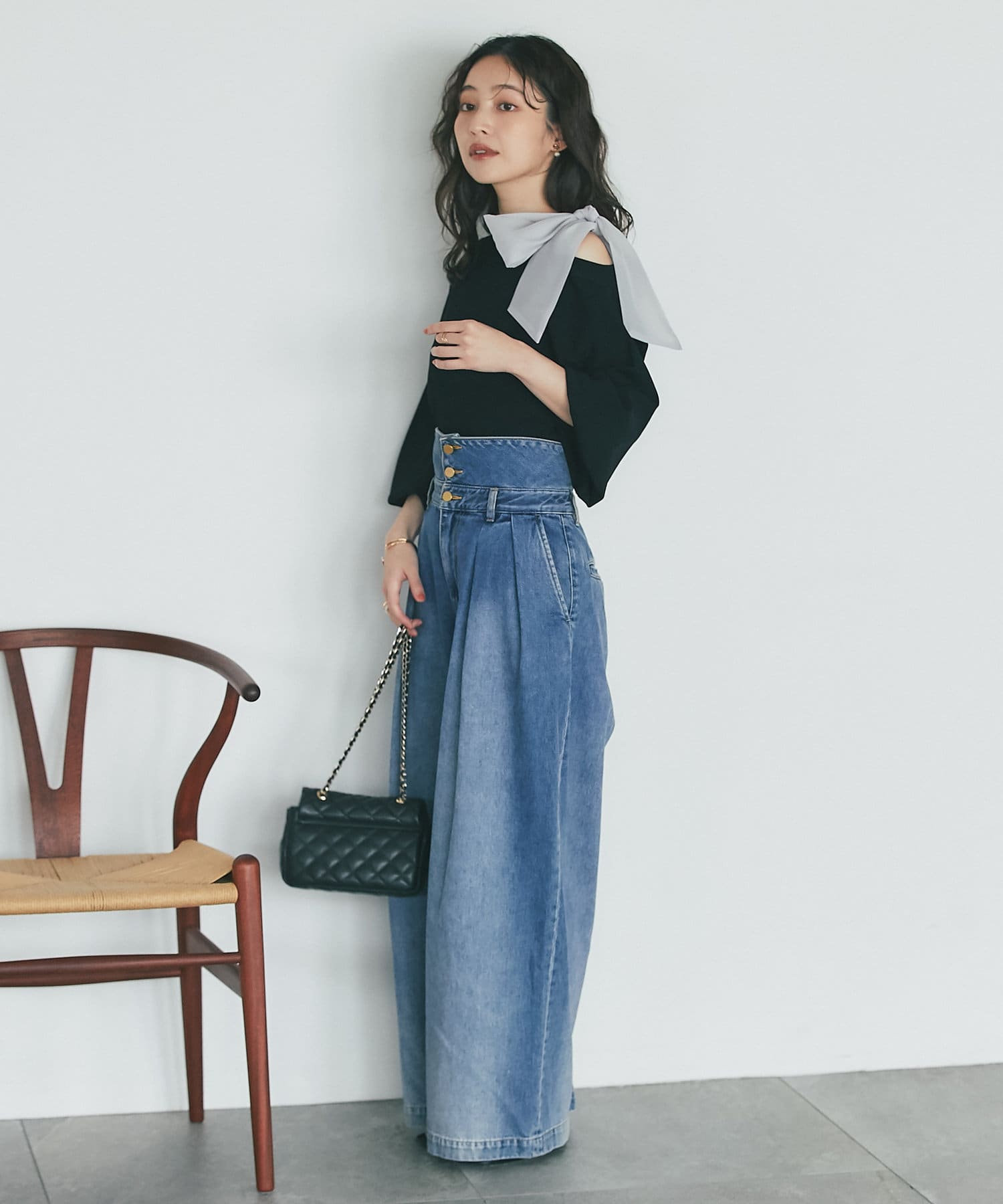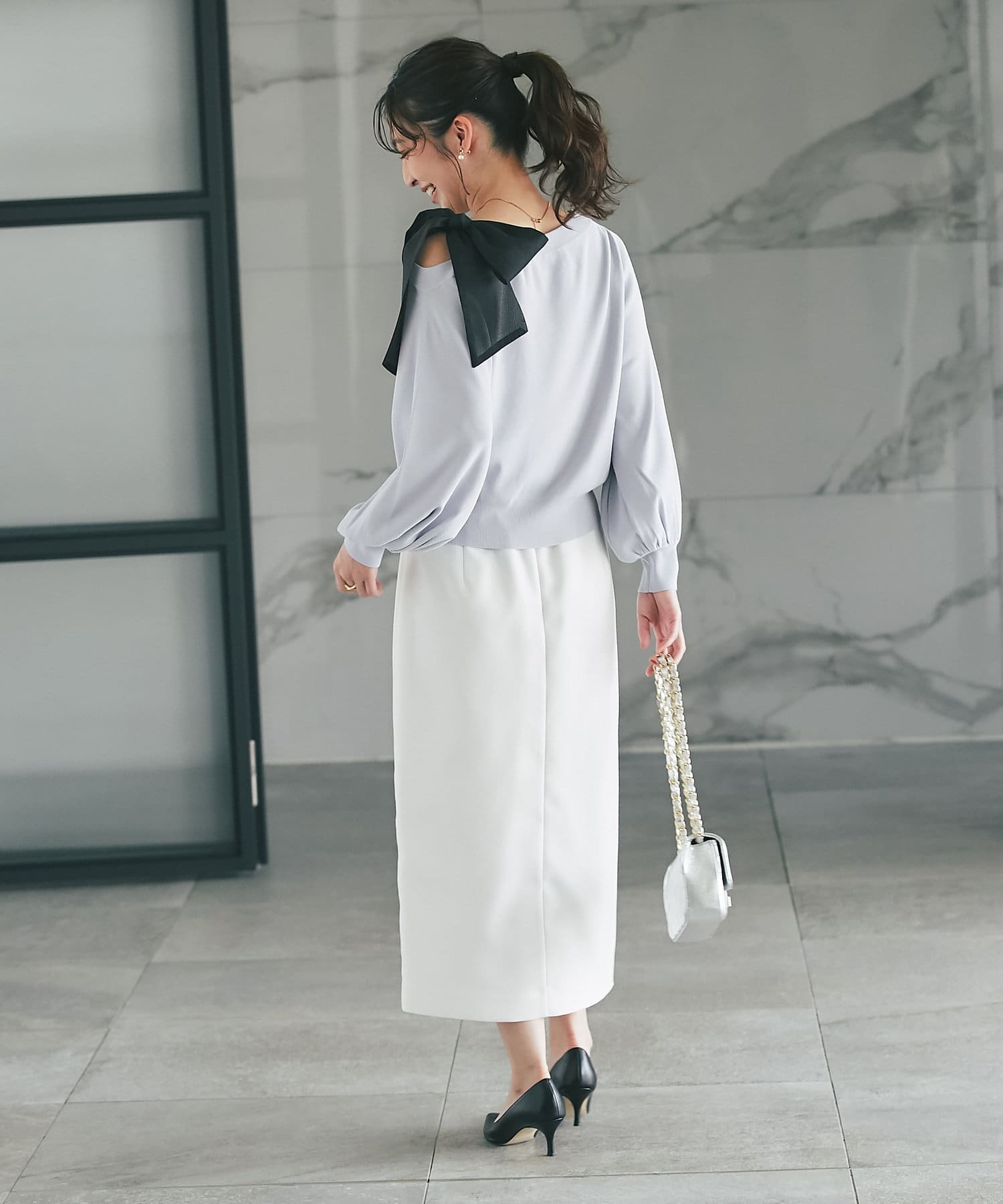 トレンドのリボンショルダーで、一気に上品な大人コーデになれるアイテムです。