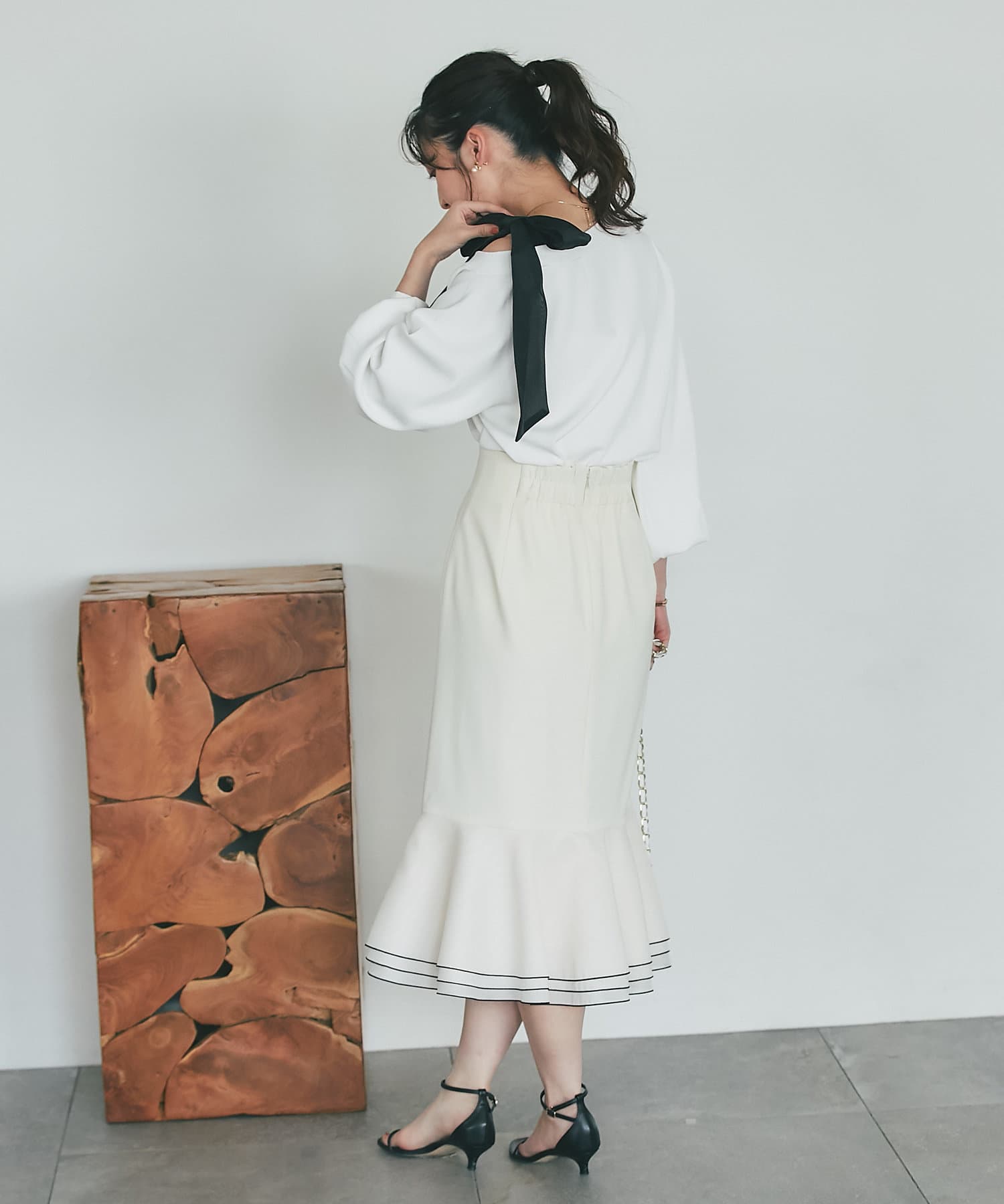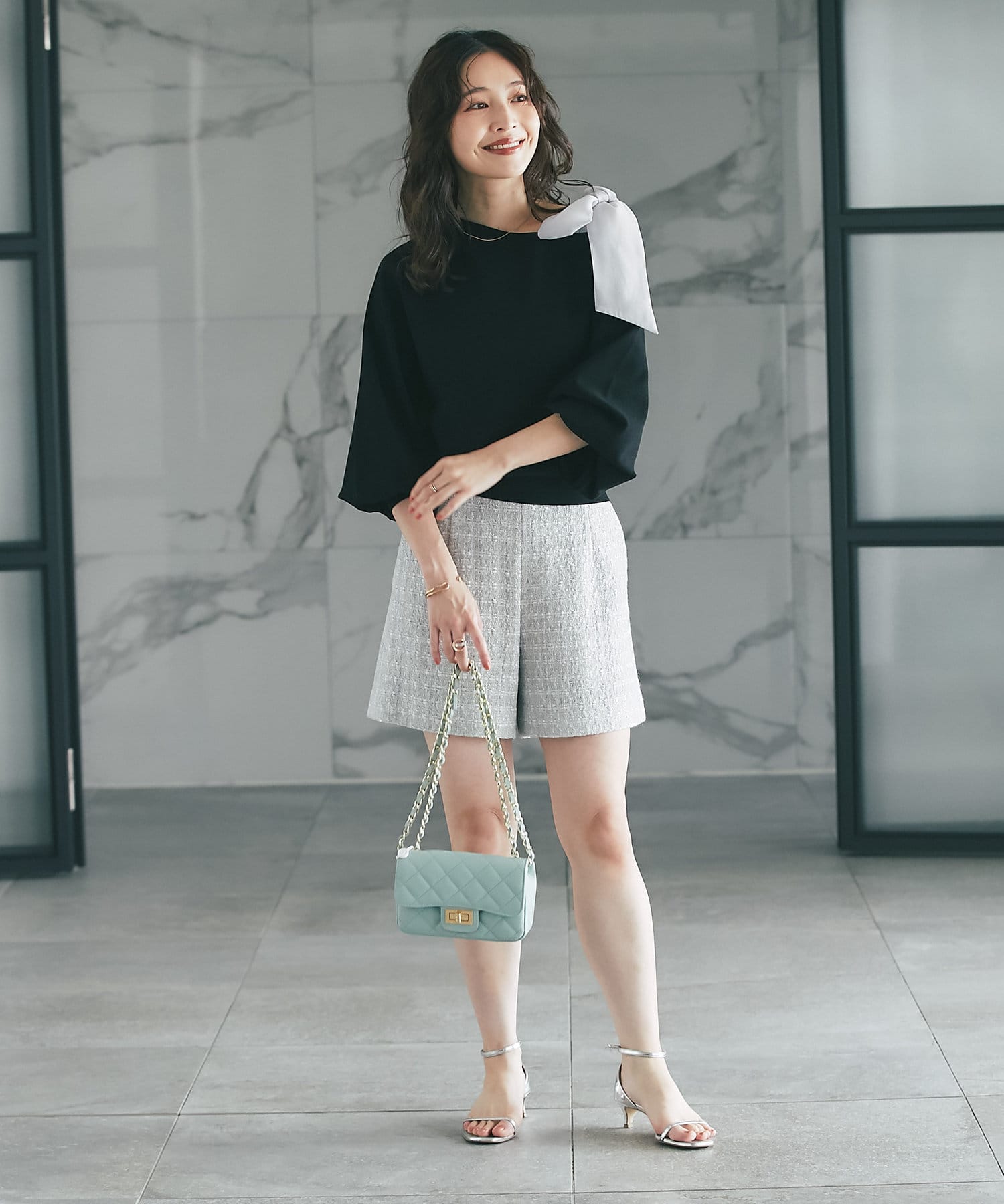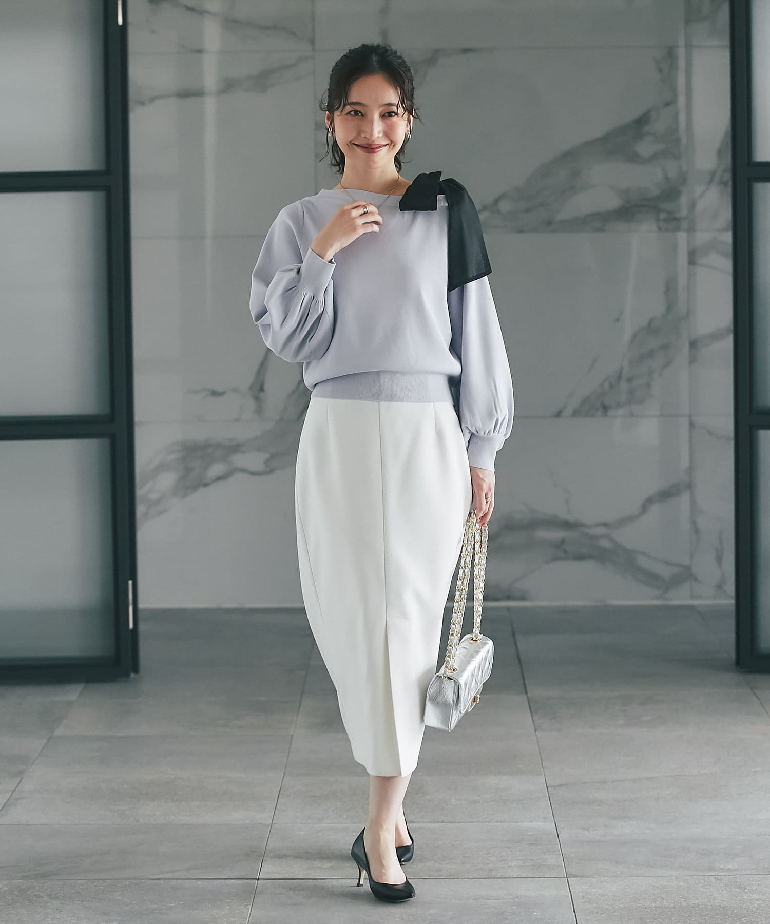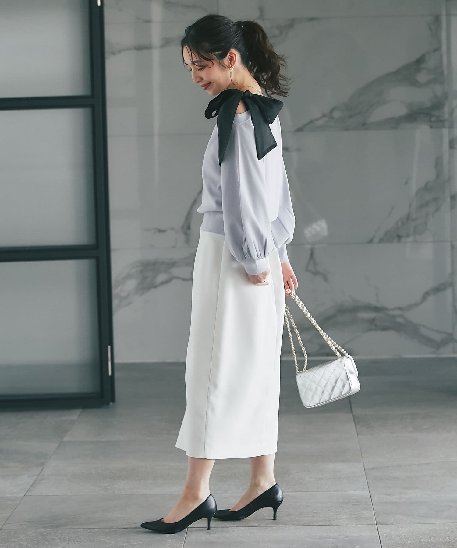 トレンドのリボンショルダーで、一気に上品な大人コーデになれるアイテムです。