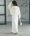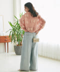 シフォンで繊細なリボンの素材感で、ニットと同系色にし、かわいさもありモードっぽくも着れるように仕上げました。