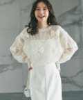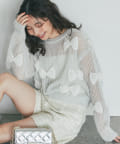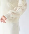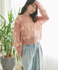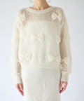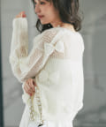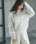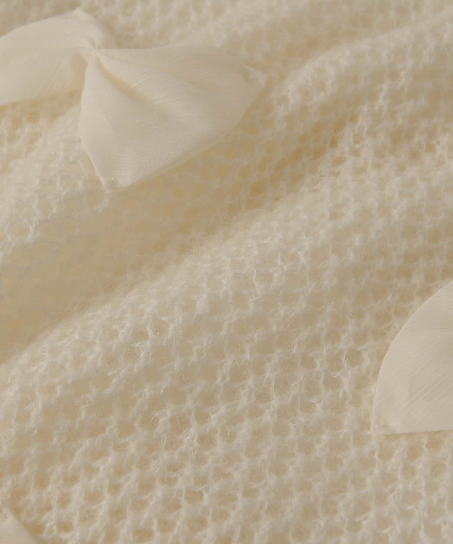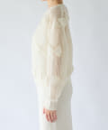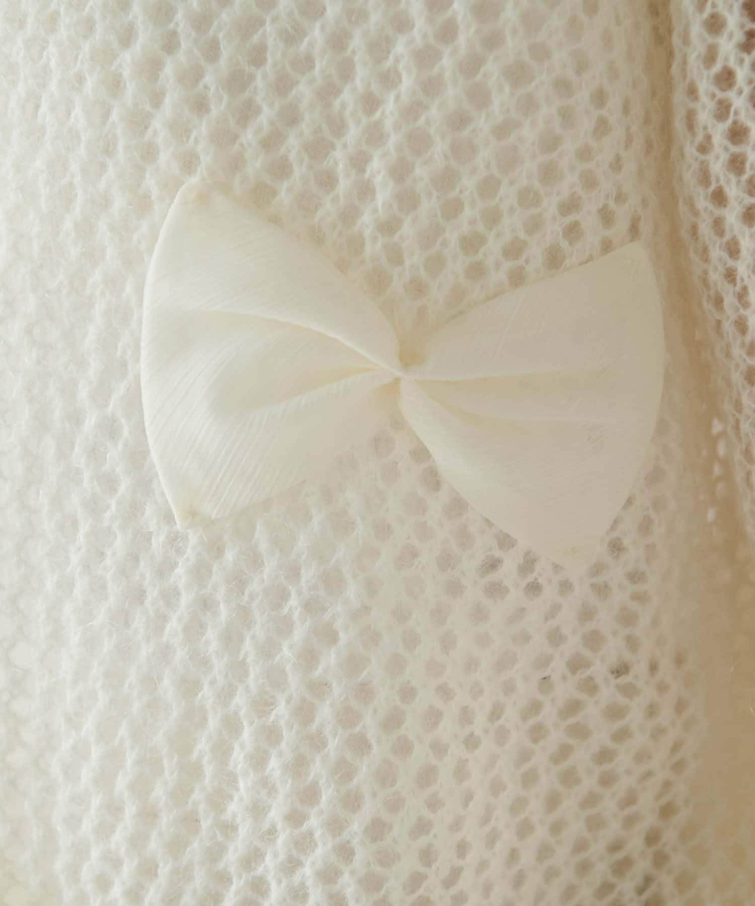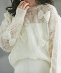 モヘアの素材感とメッシュ柄で透けた軽い仕上がりがかわいいニットです。