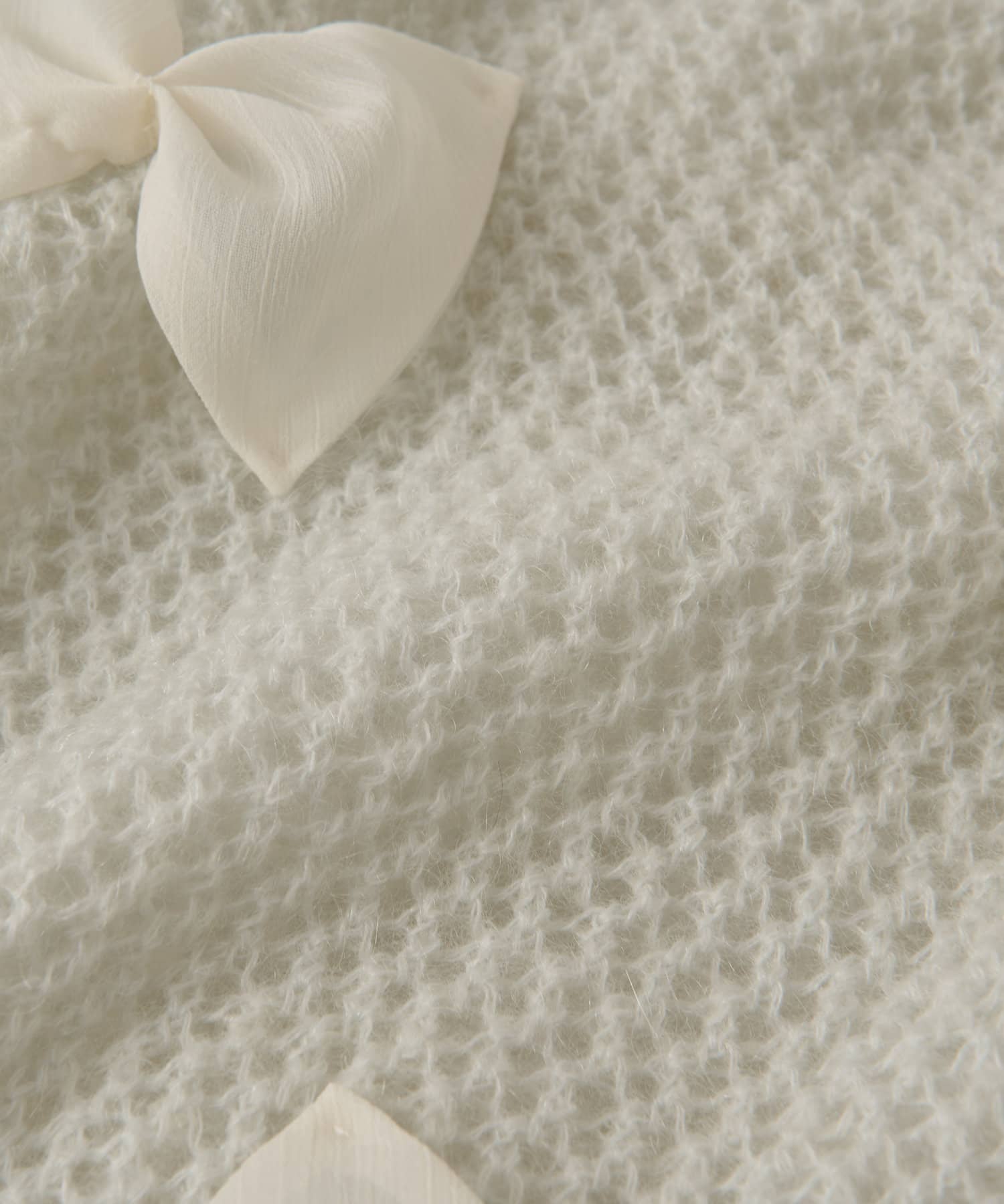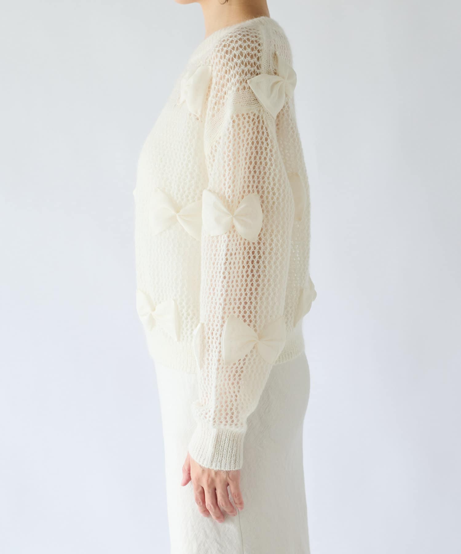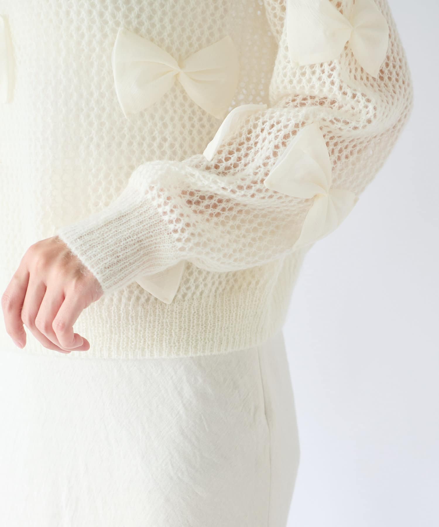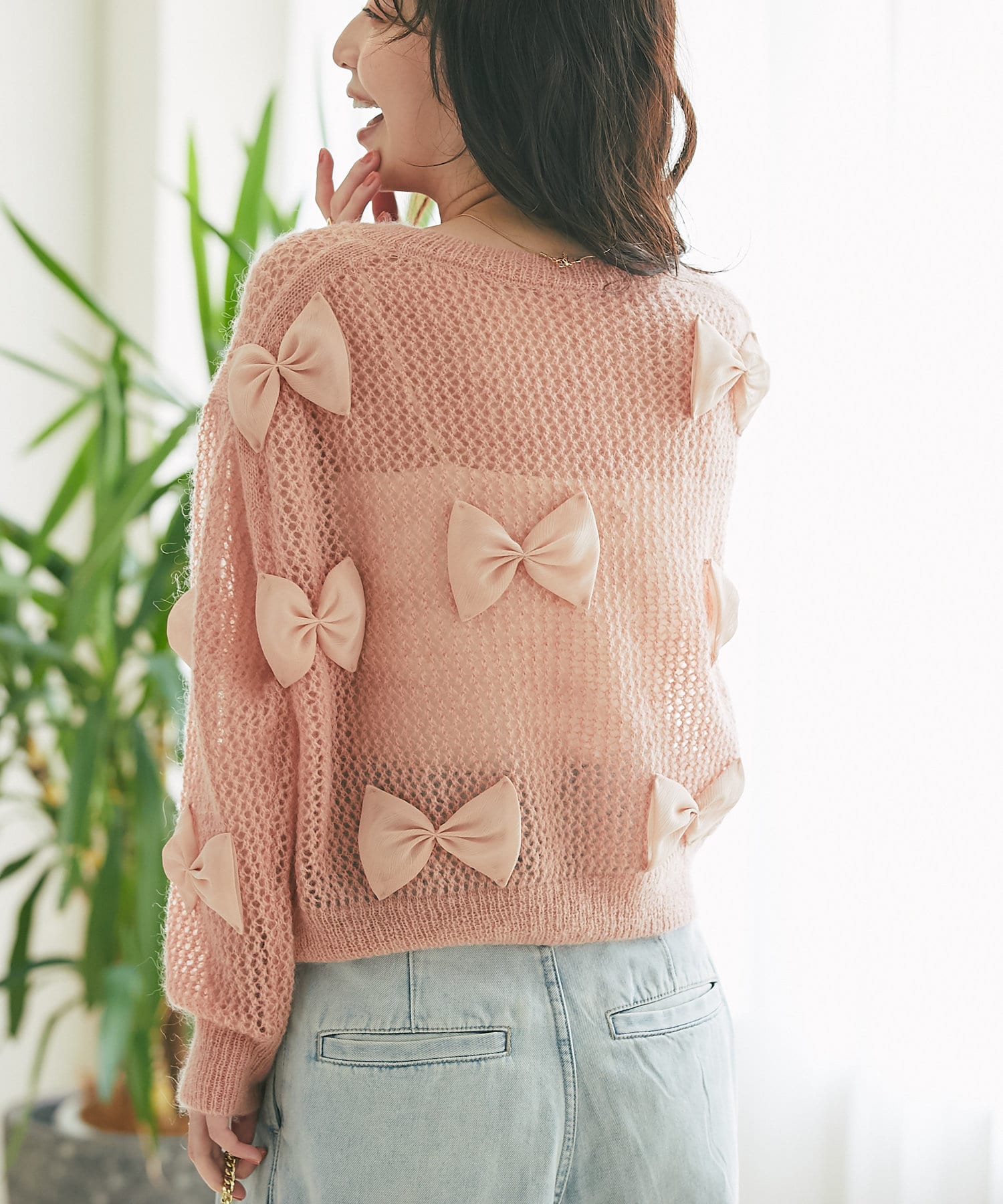 トレンドのリボンが散りばめられたオーバーサイズのメッシュニット。