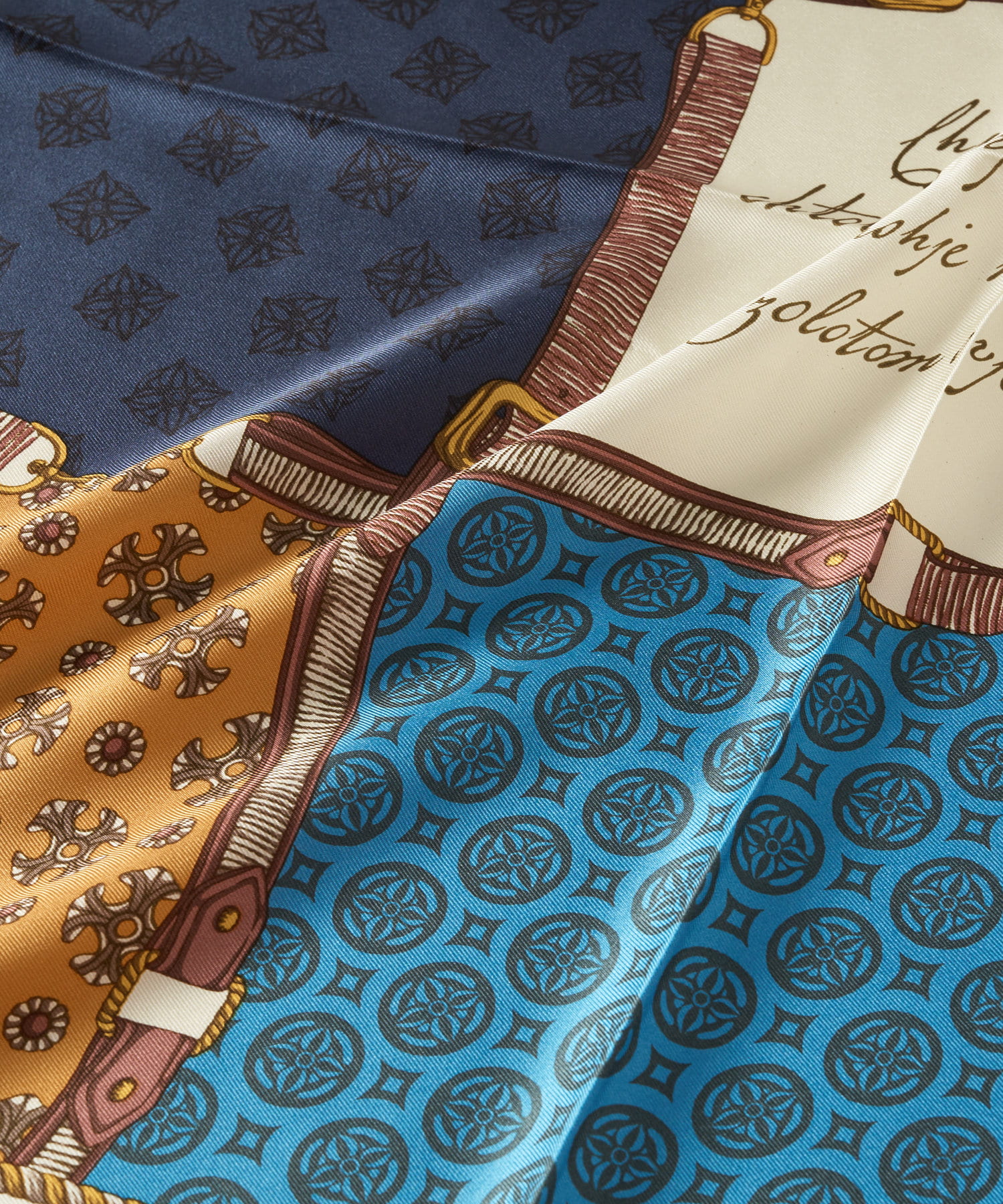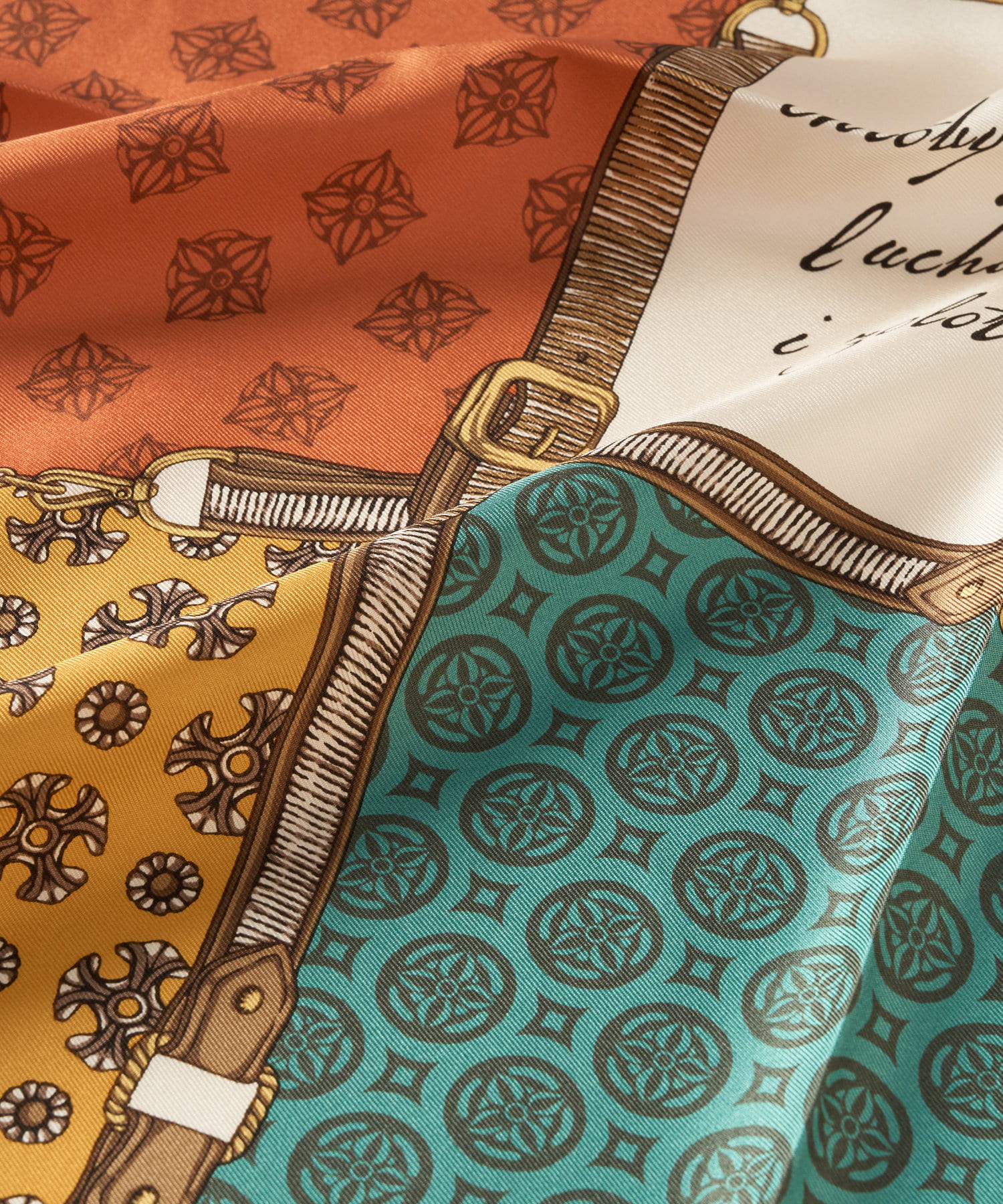 ヴィンテージスカーフからインスピレーションを得てつくられるスカーフやストールは、全て熟練の職人により一版ずつ手作業で丁寧に染め上げる手捺染(ハンドプリント)で作られています。
