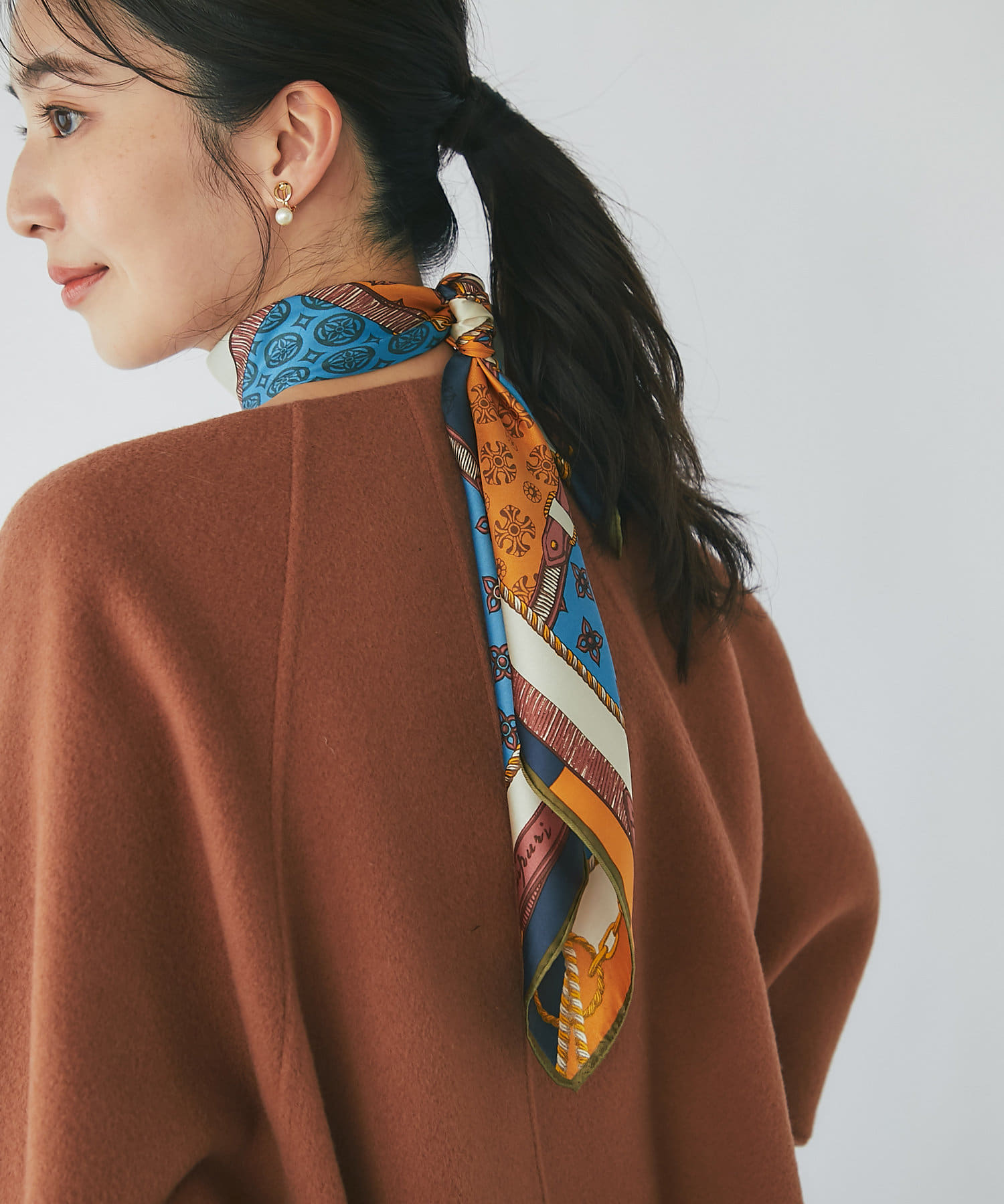 バッグのチャーム代わりや、ヘアアクセサリーとしても、アレンジ次第で使い方が豊富なので、初めてスカーフをお使い頂く方にもオススメです。