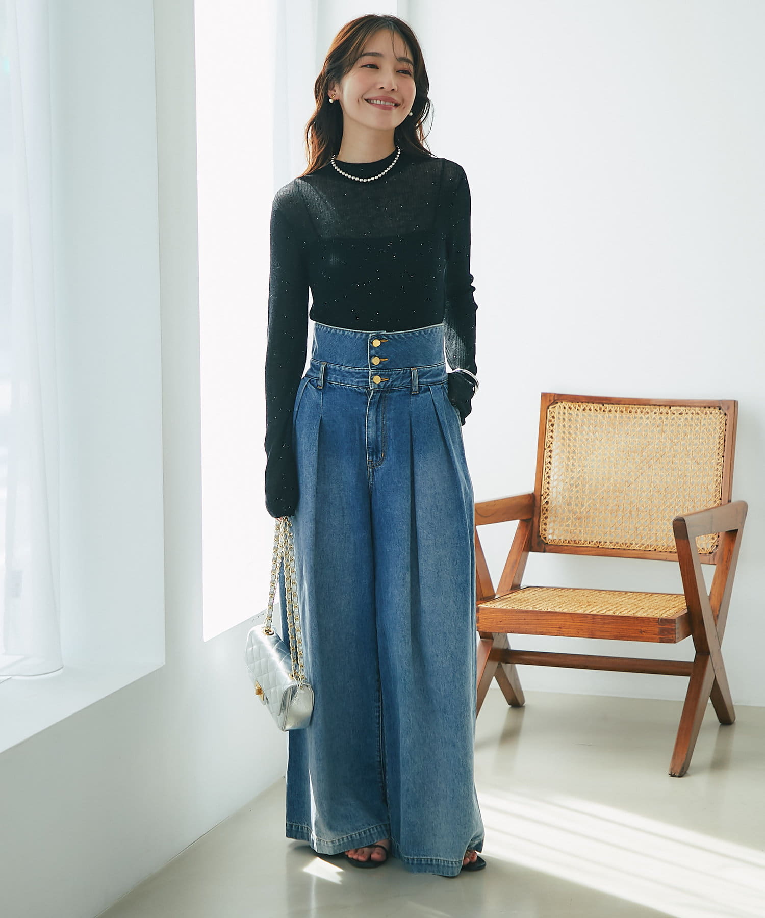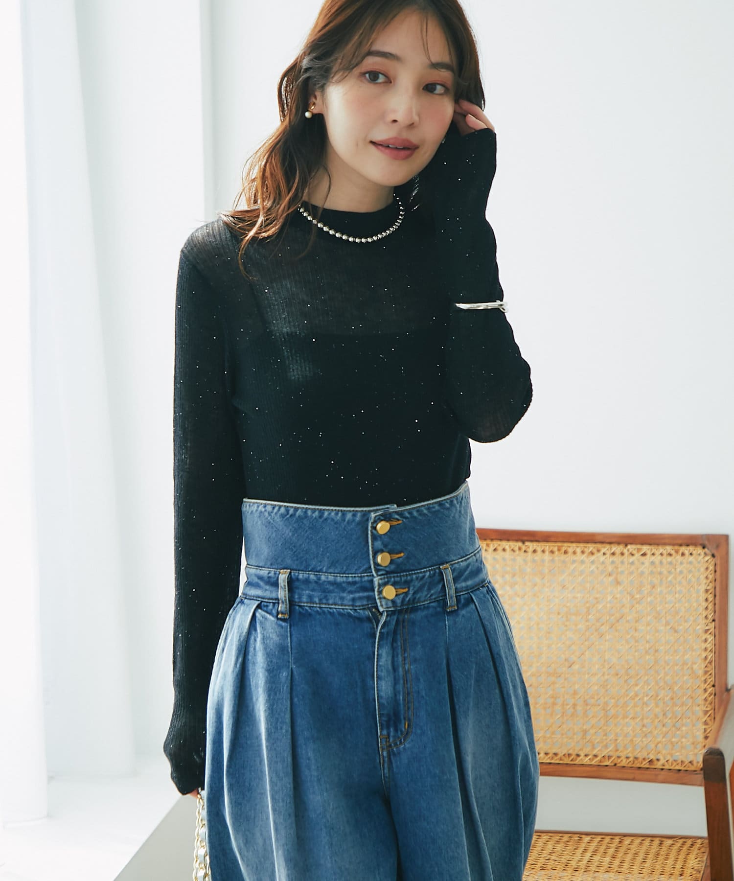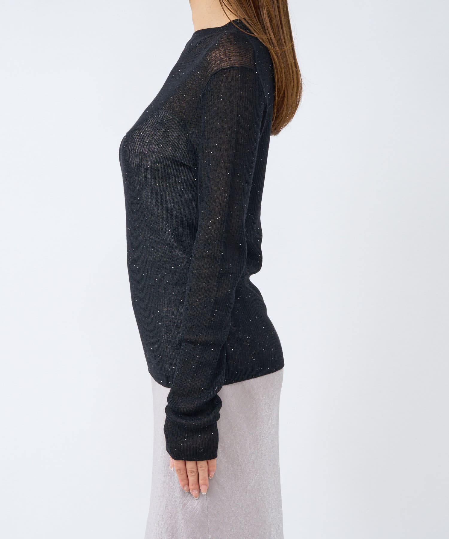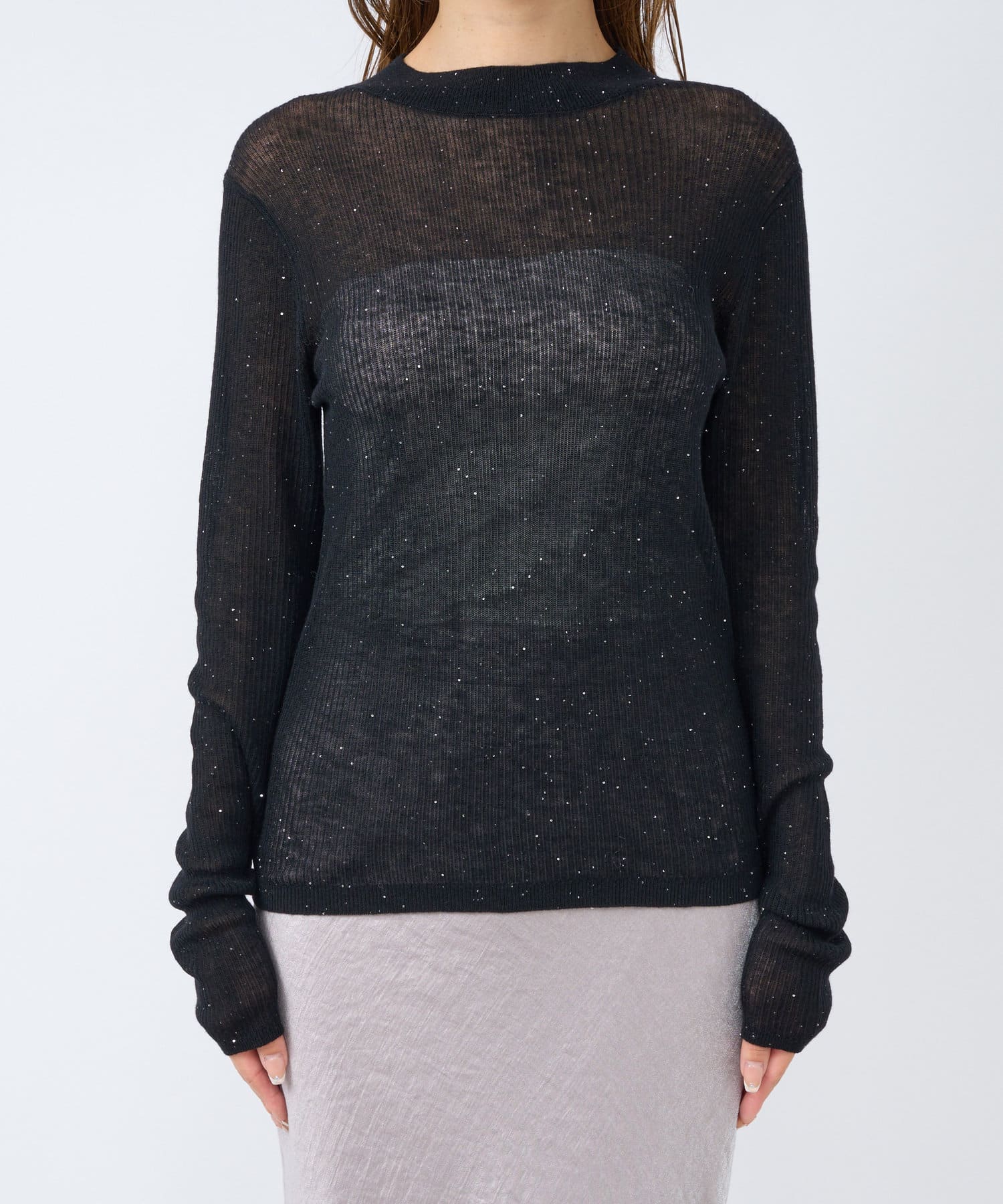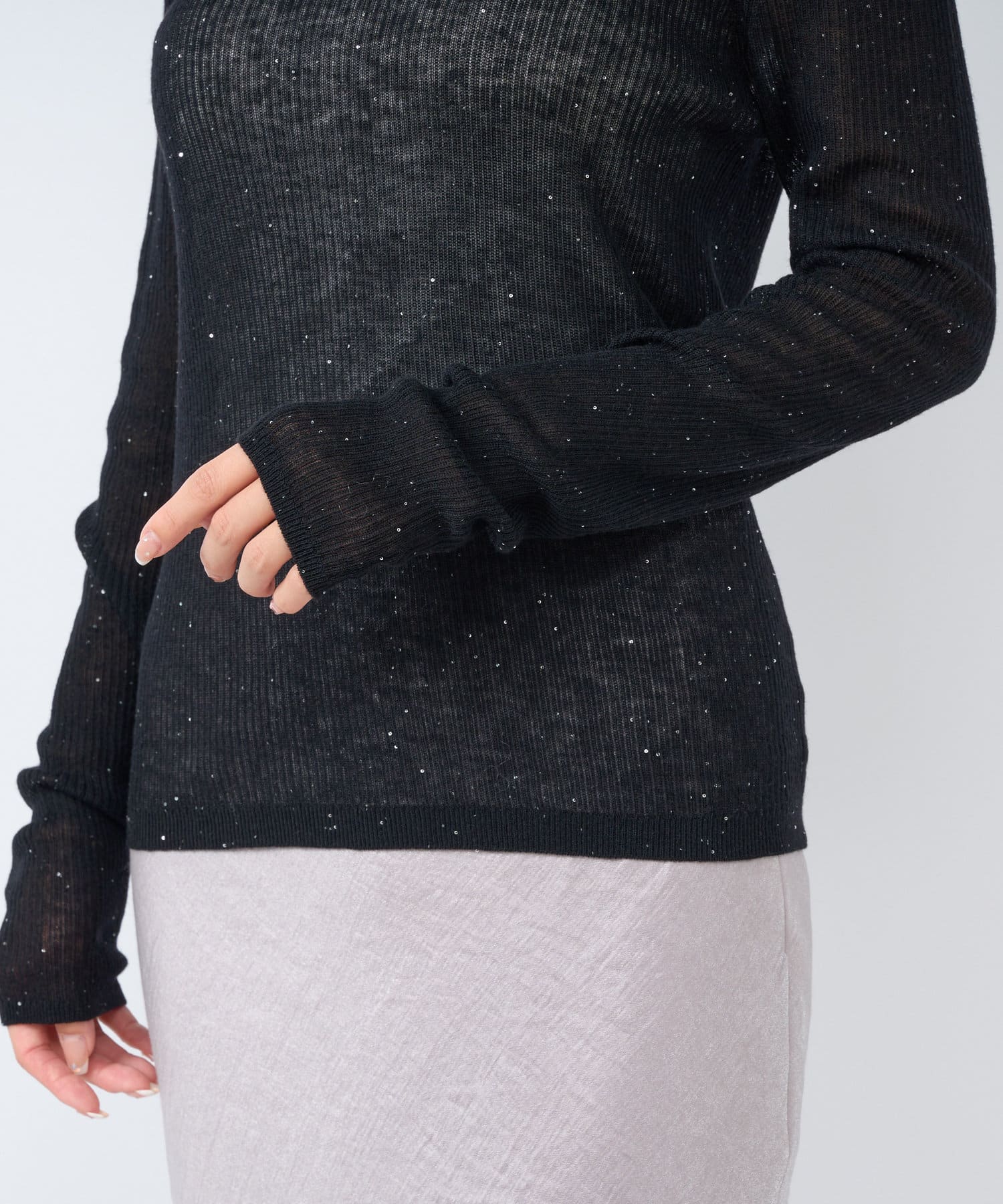 トレンドのシアー素材でさりげなく光る小さなスパンコールが品の良いニットプルオーバー。
