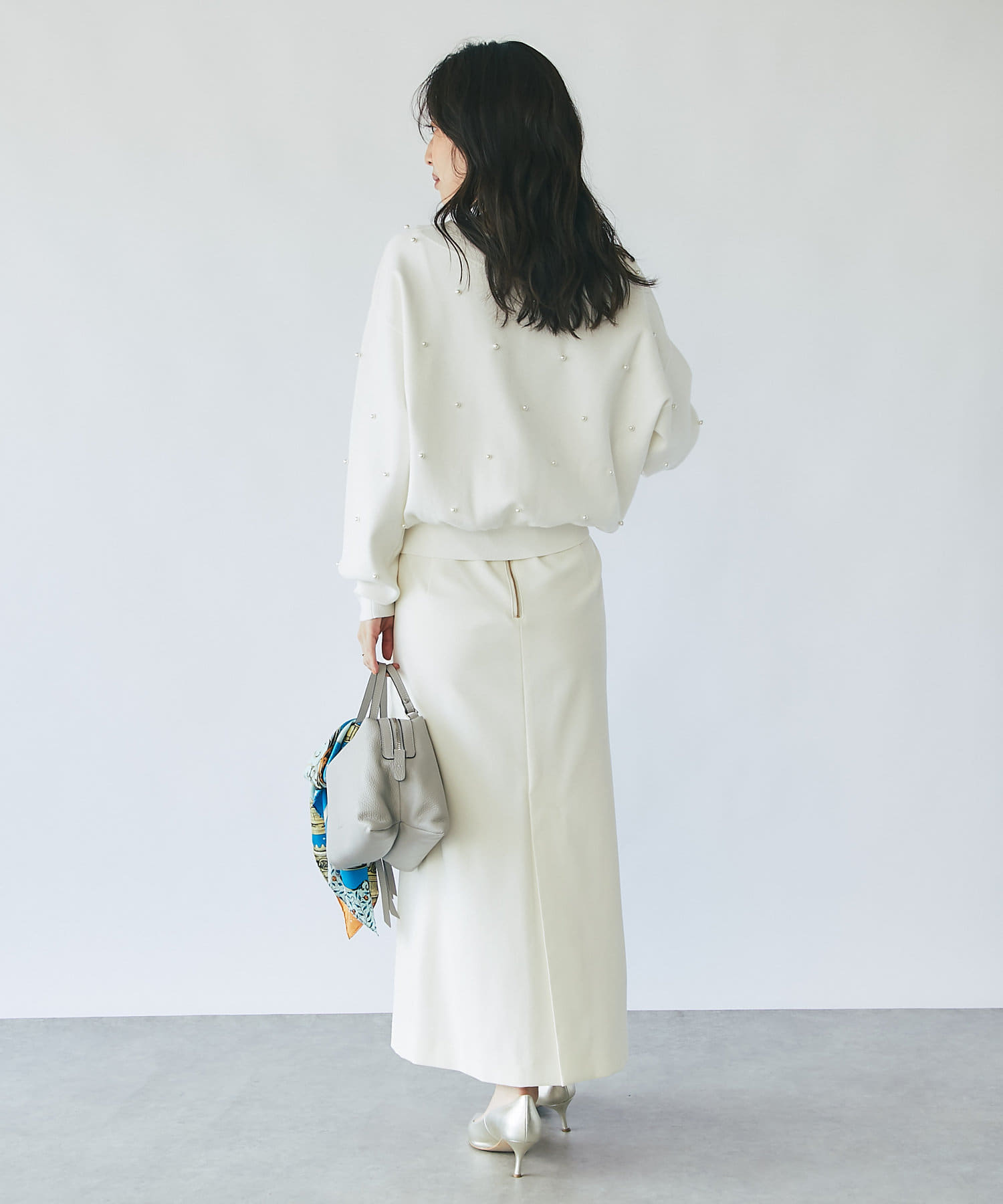 1つ1つパールを打ち込んでいて、上品かつ華やかなニットです。
