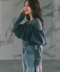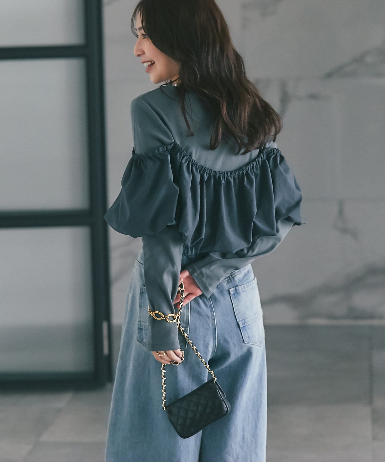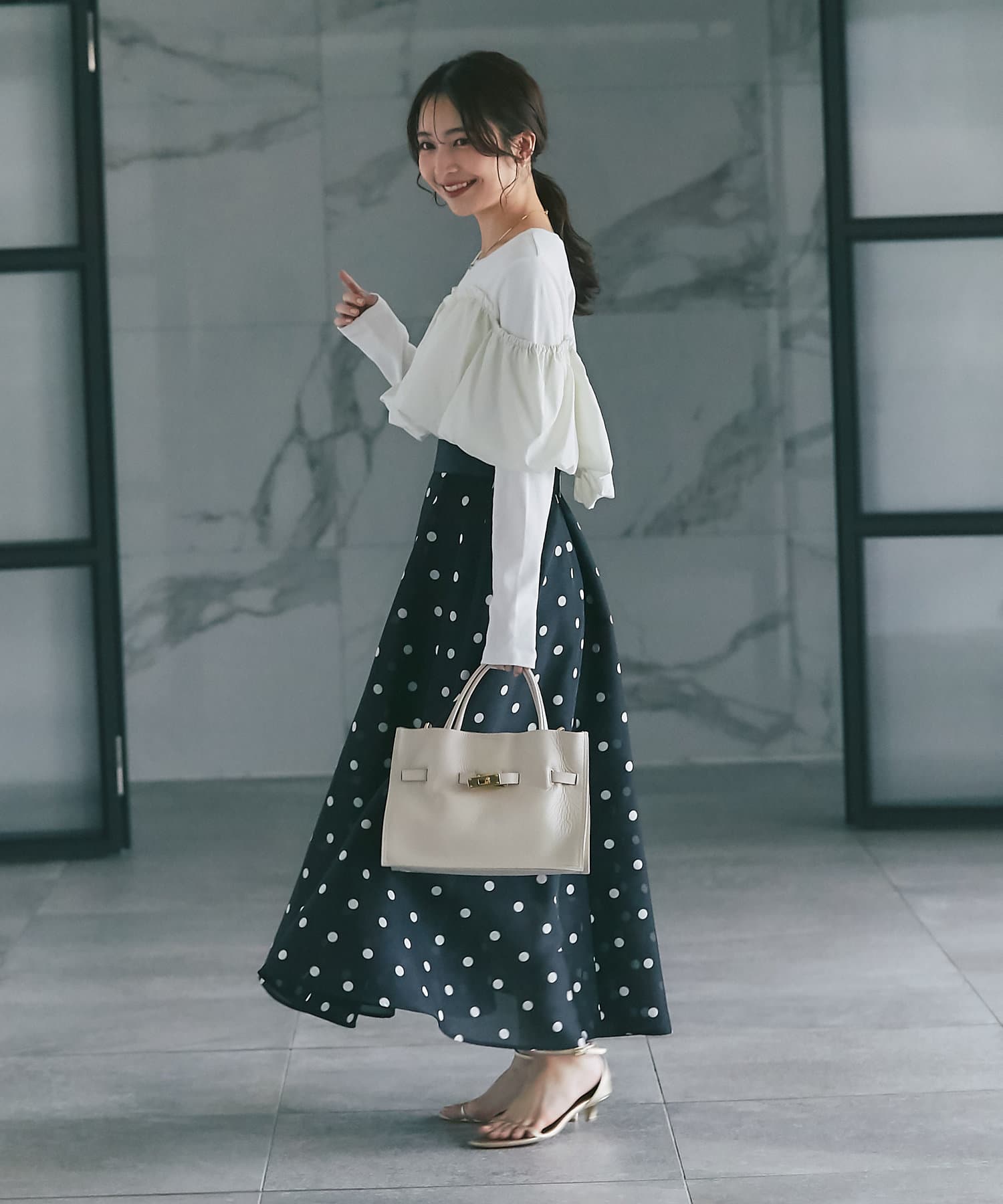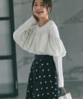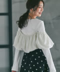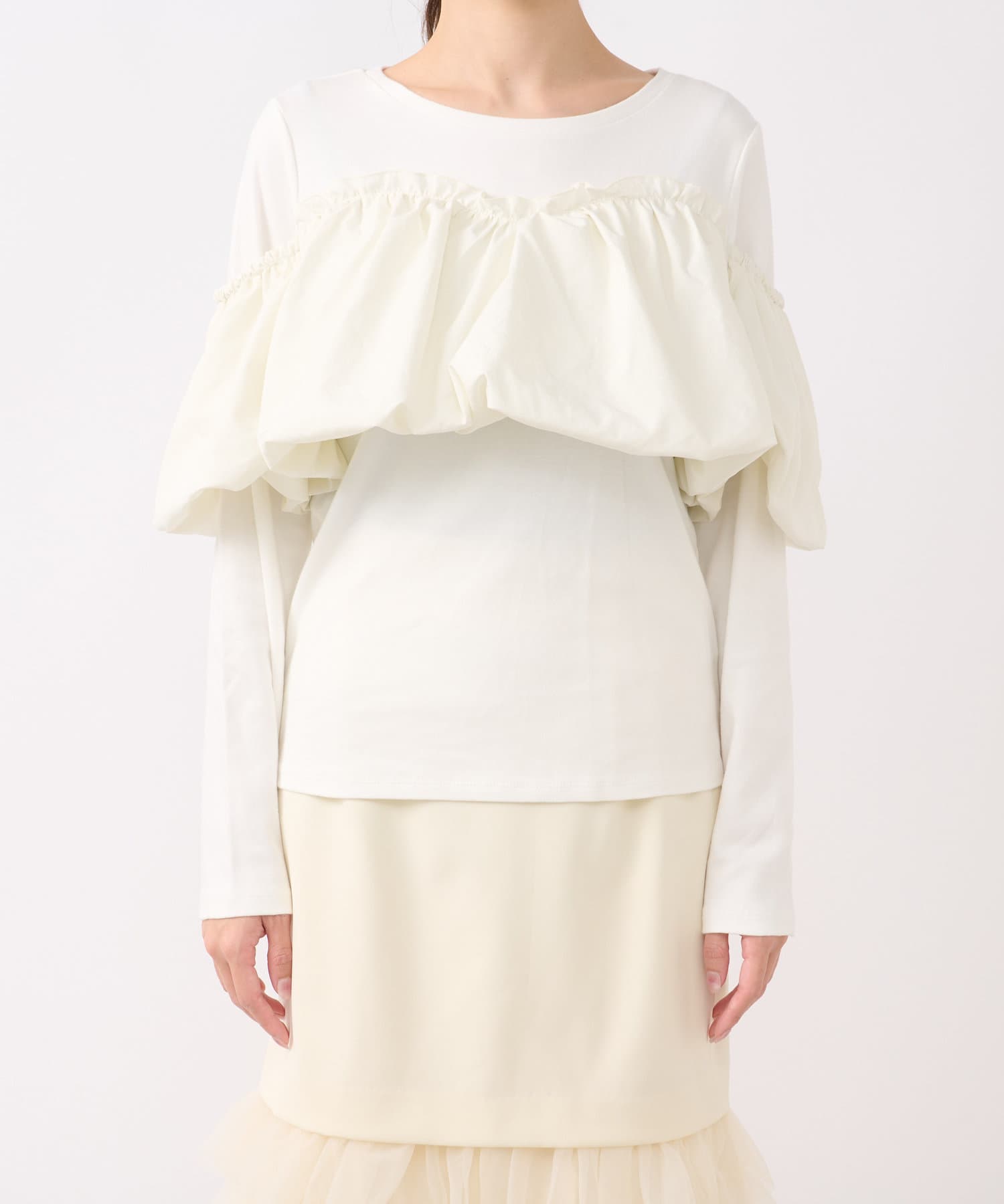 タフタのオフショルのようなバルーン切り替えが特徴的なデザインです。
