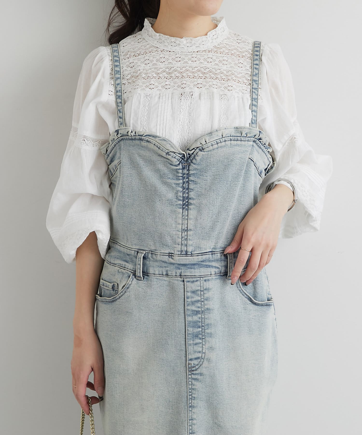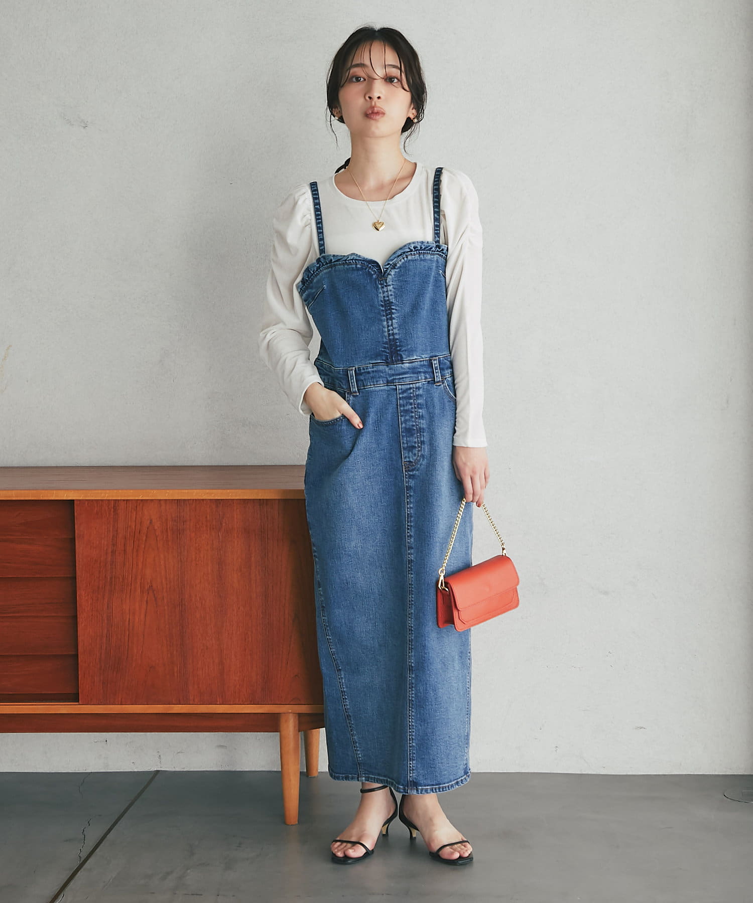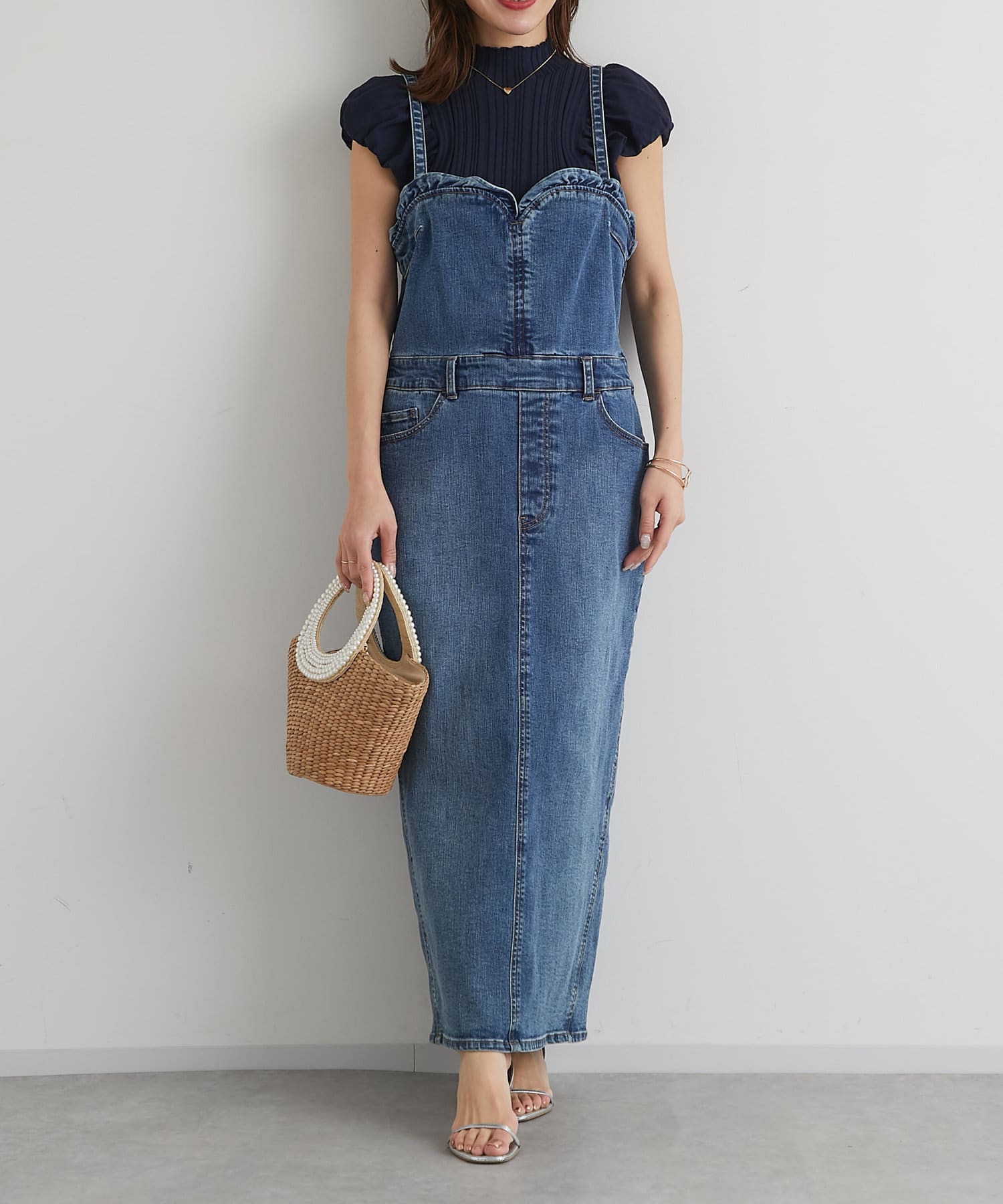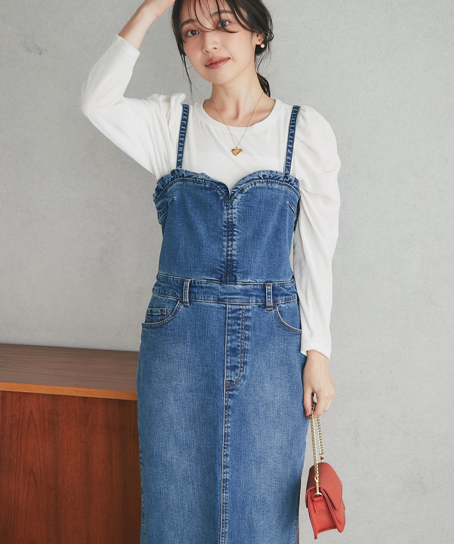 【人気アイテム復刻!・大人可愛い!】デニムビスチェワンピース