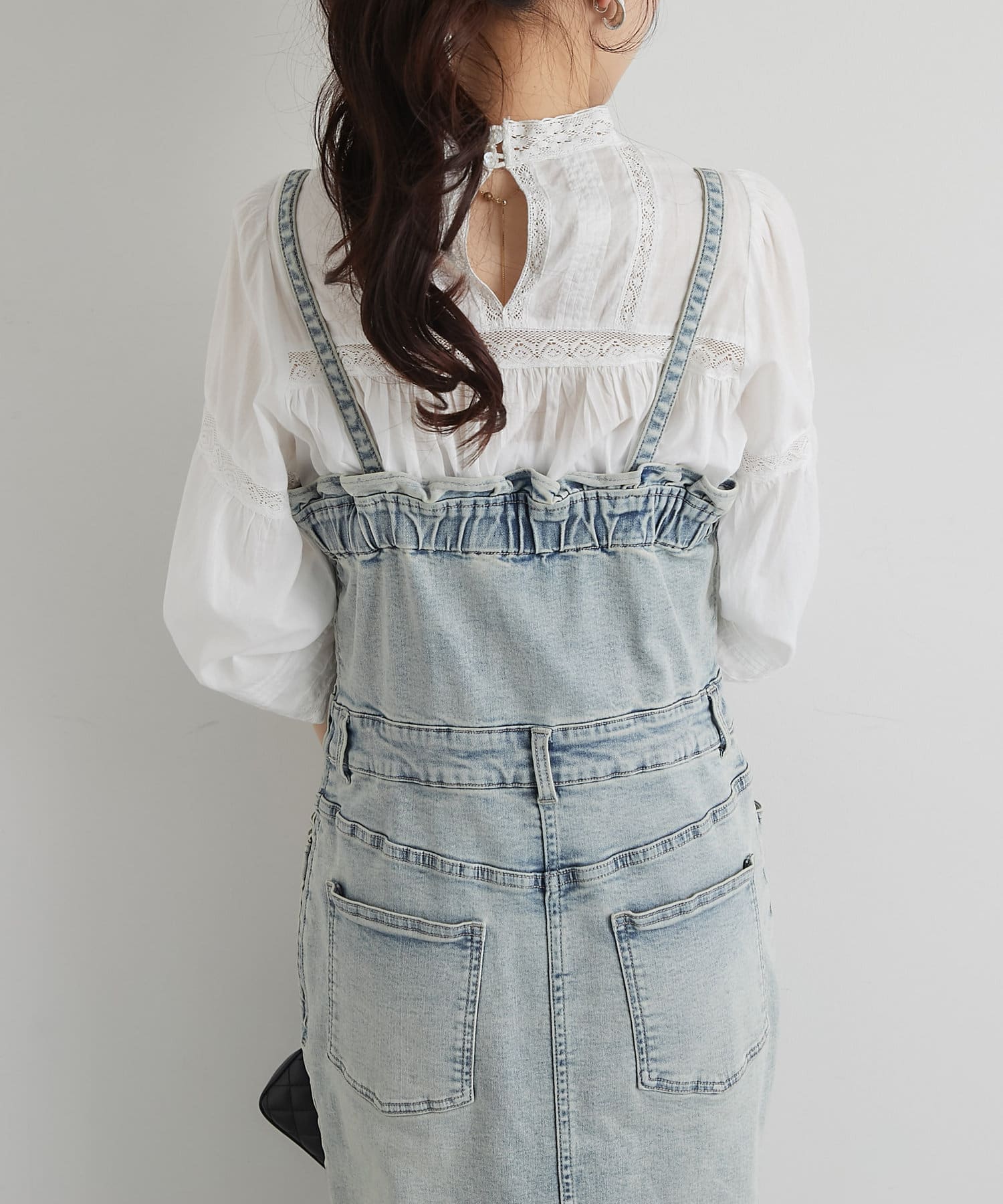 胸元のフリルがデザインポイントで女子力上がるディティールです。