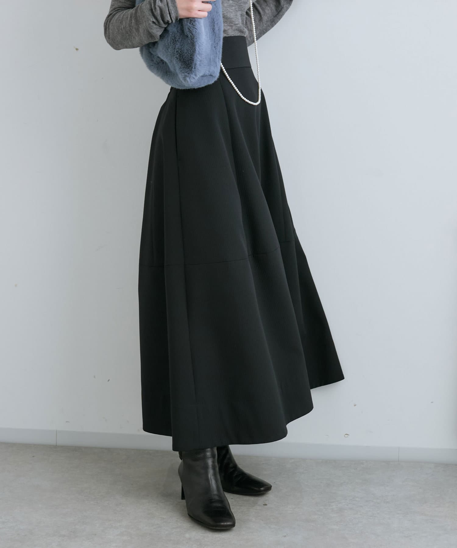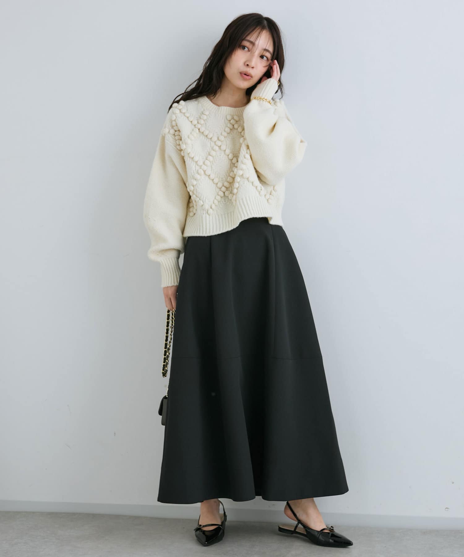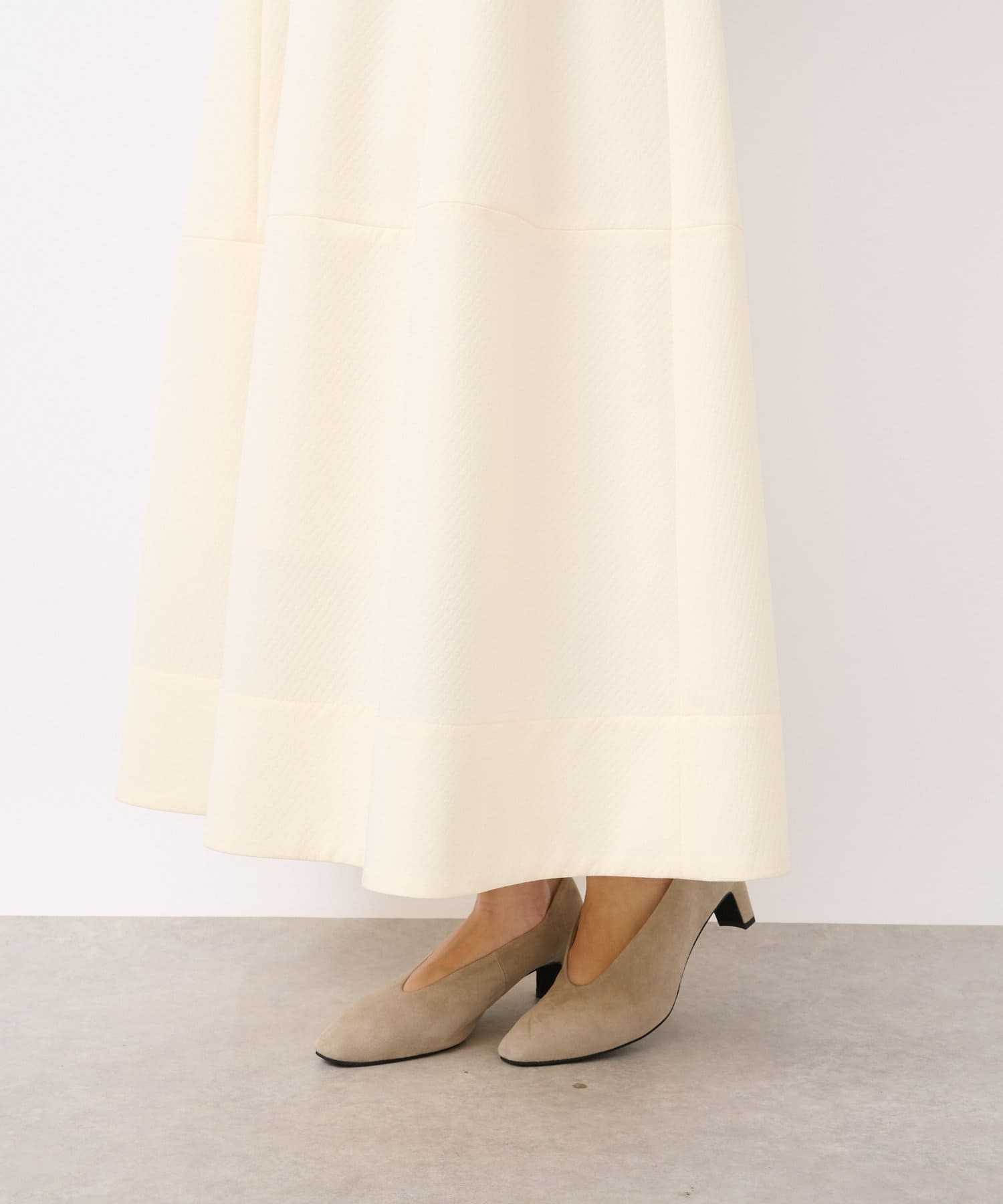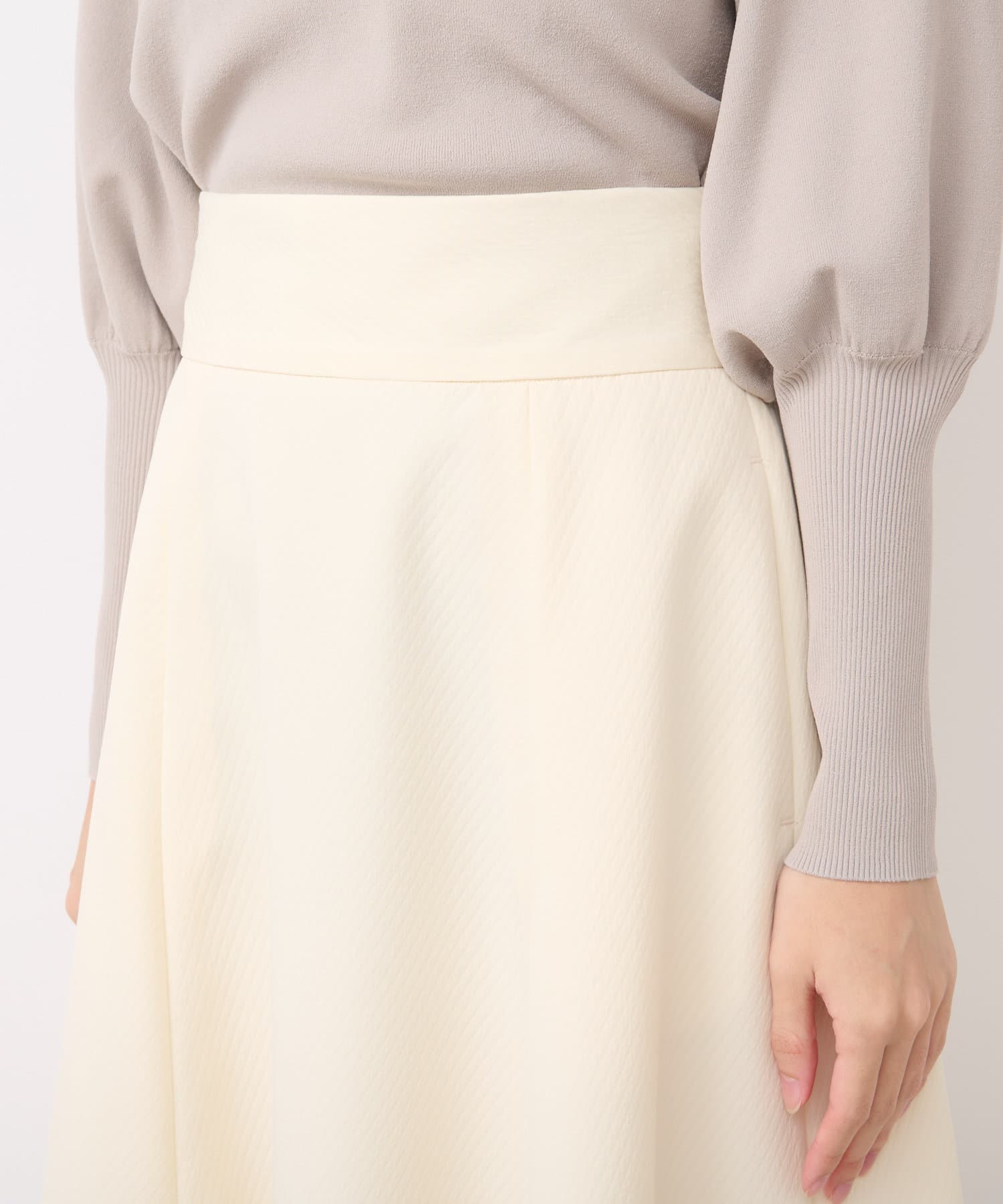 キルト風ジャガード素材を使用したおわん型フレアスカート。