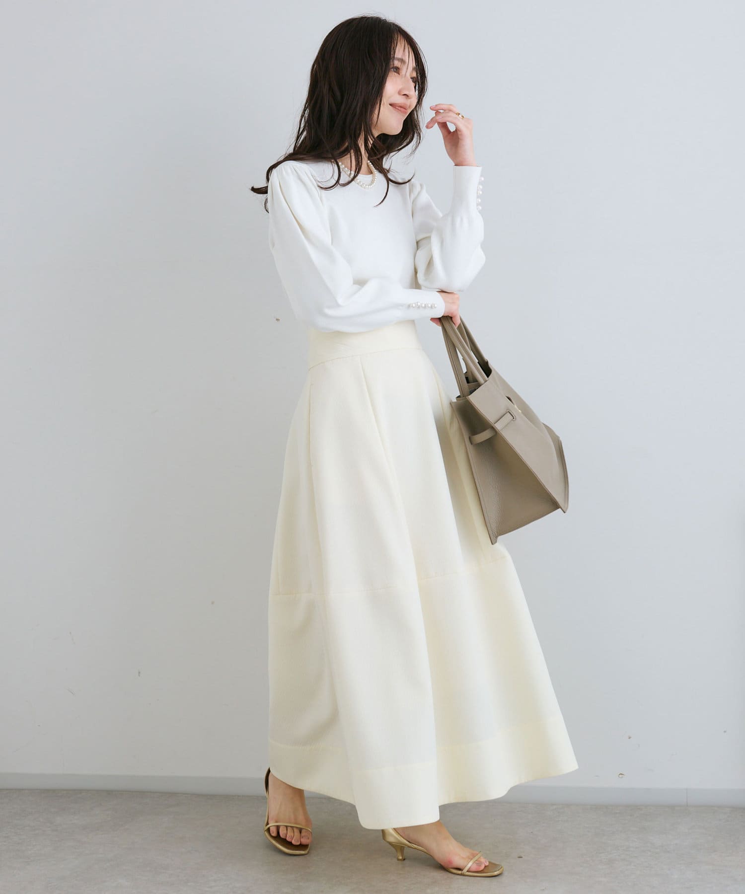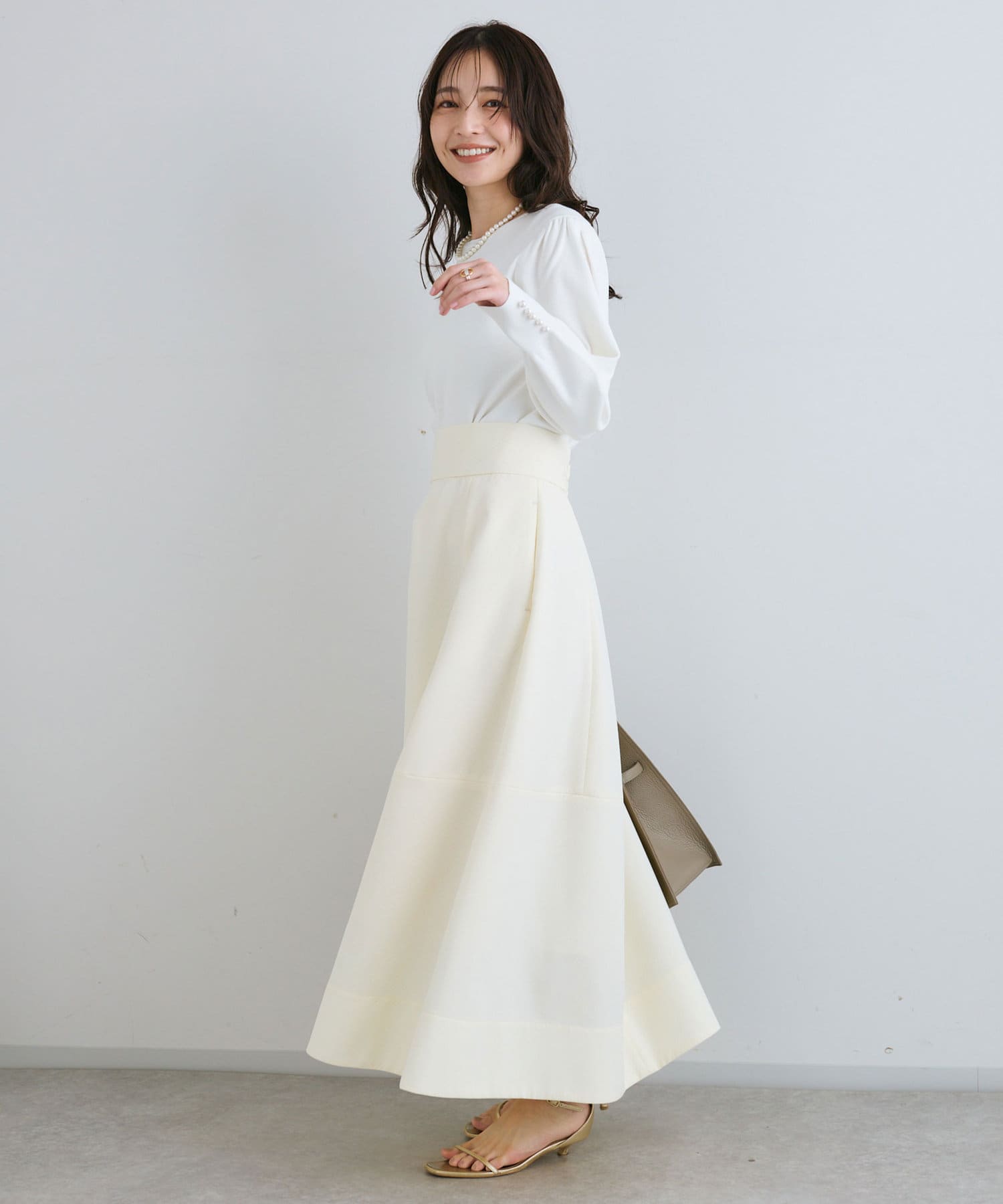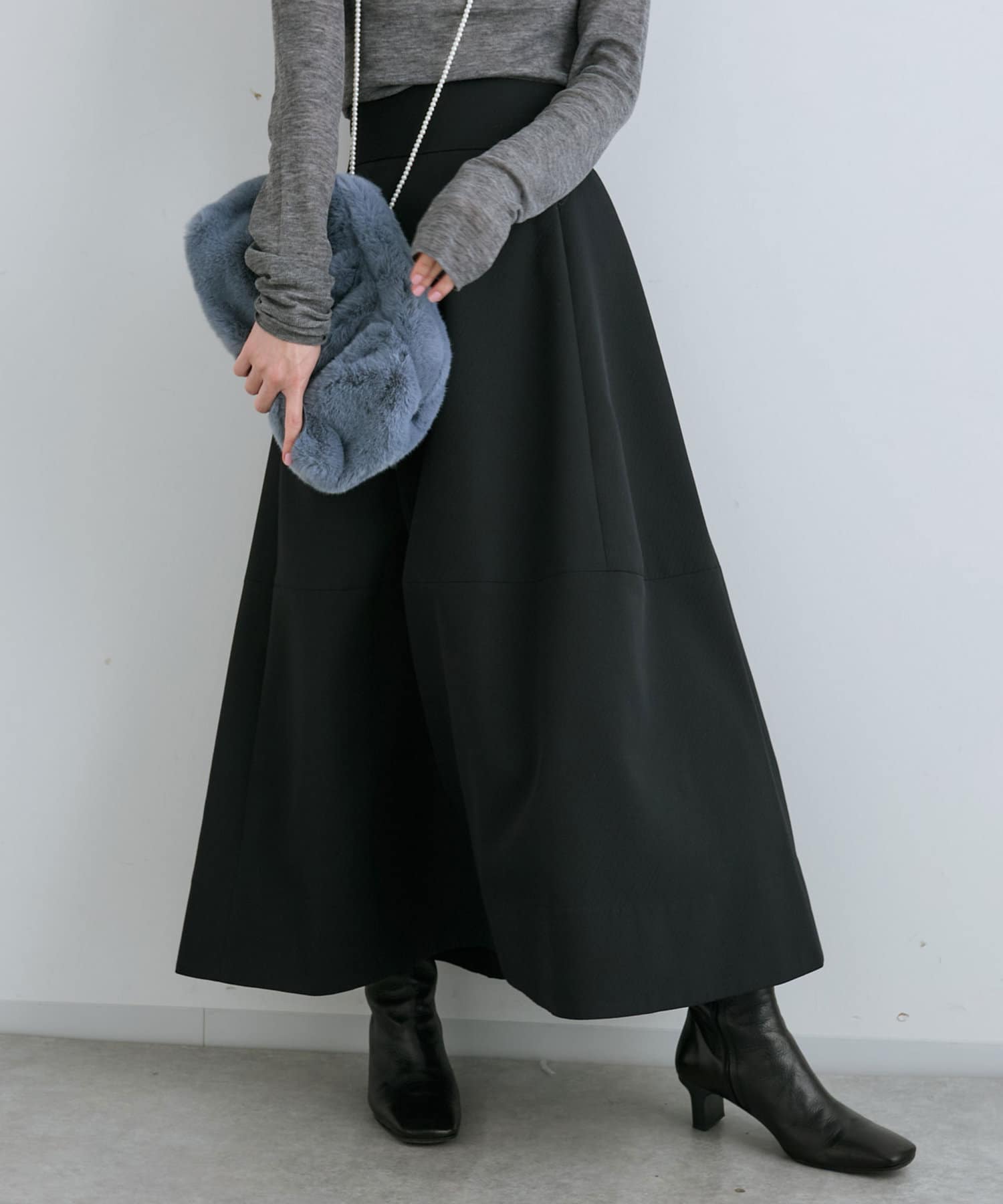 キルト風ジャガード素材を使用したおわん型フレアスカート。