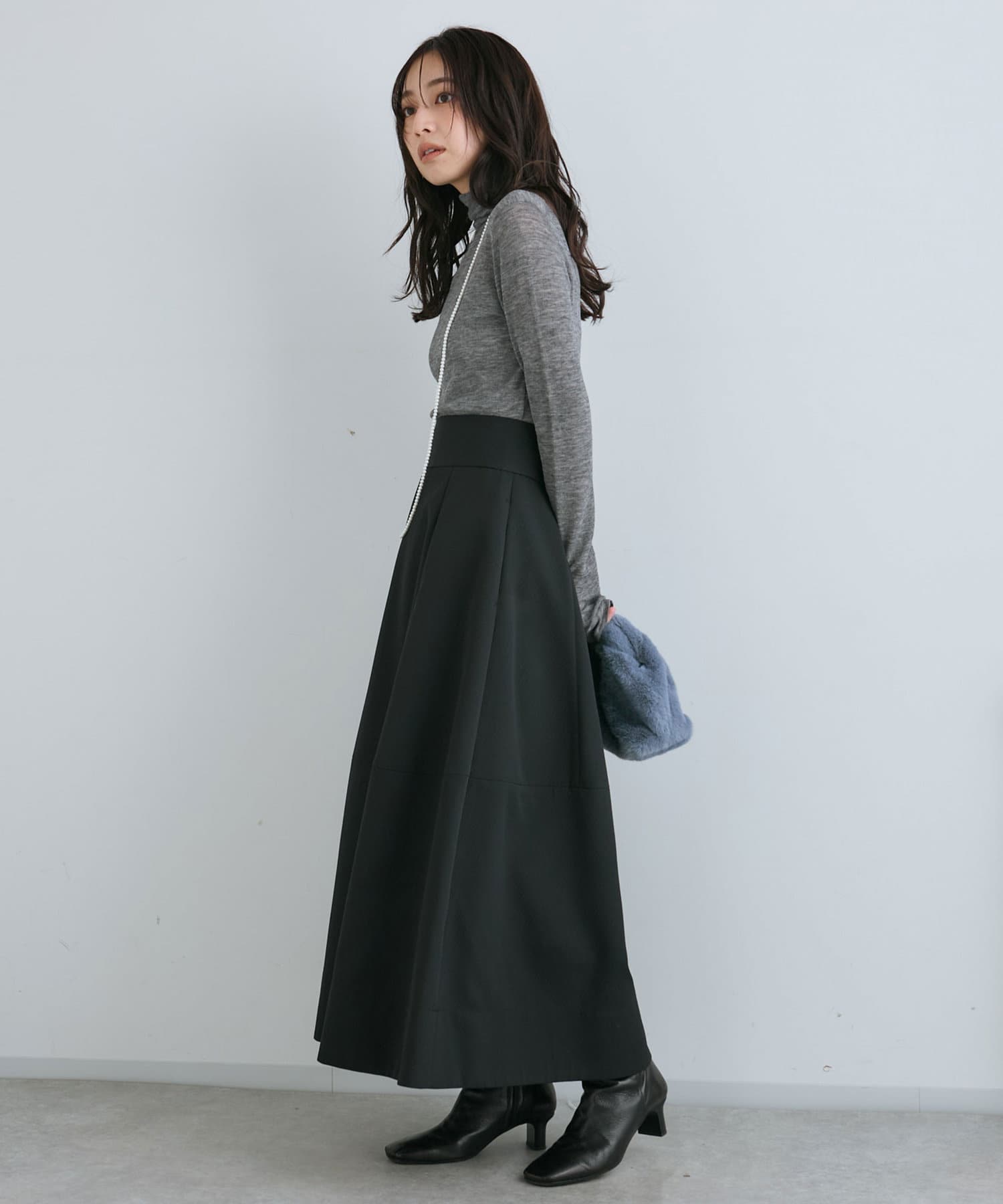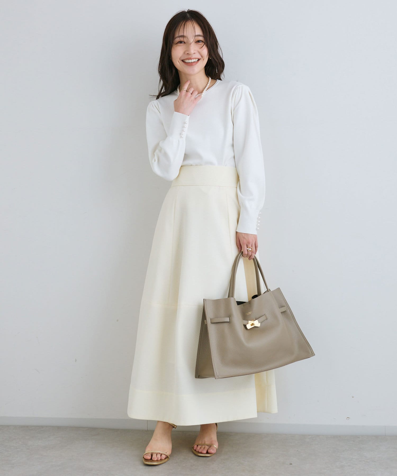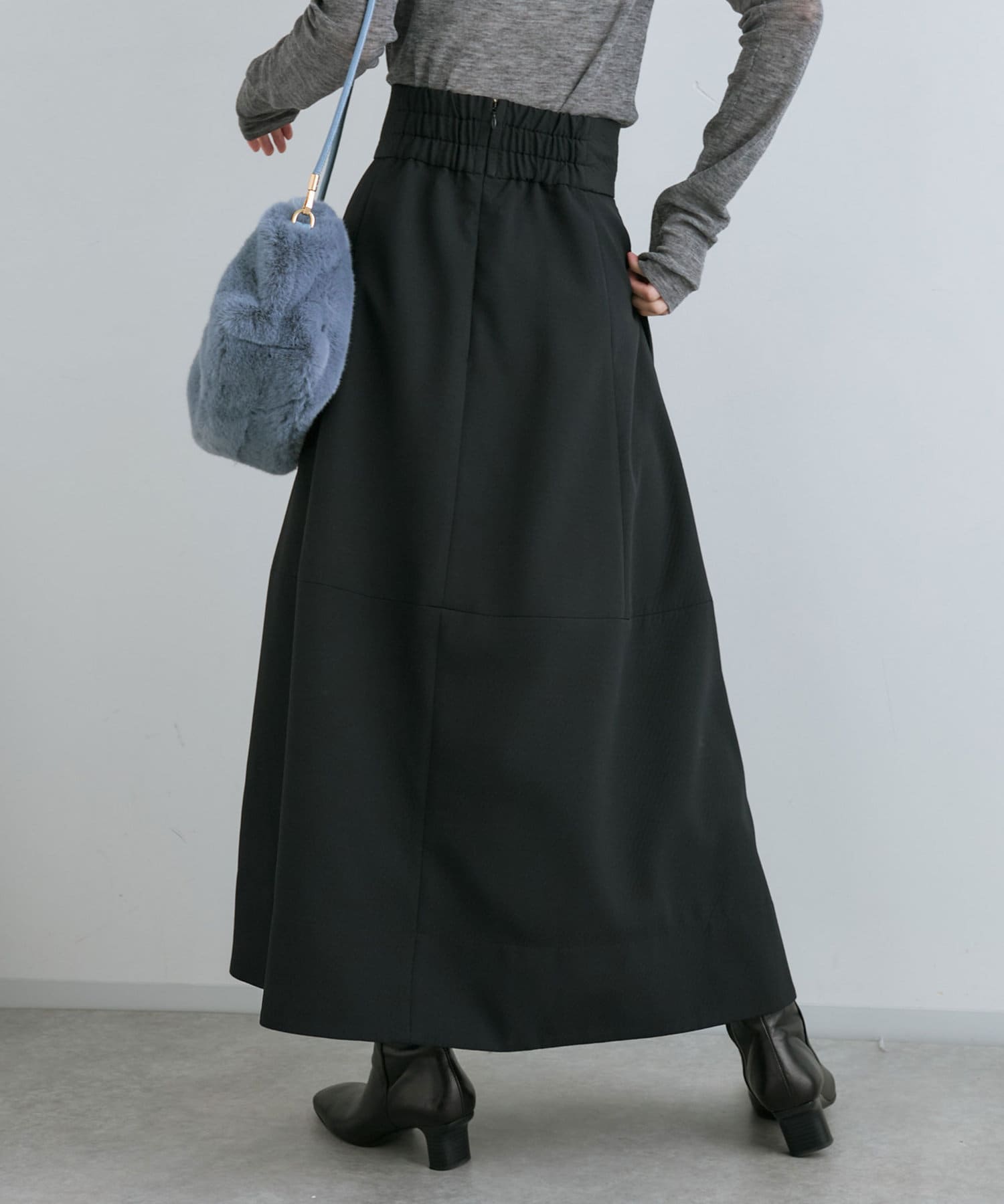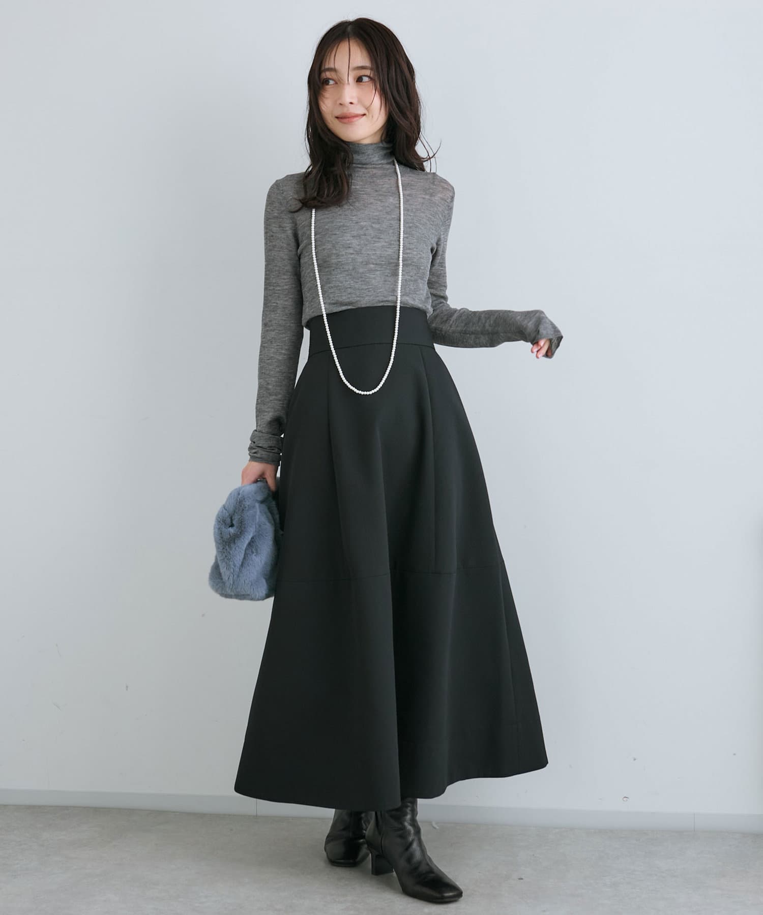 キルト風ジャガード素材を使用したおわん型フレアスカート。