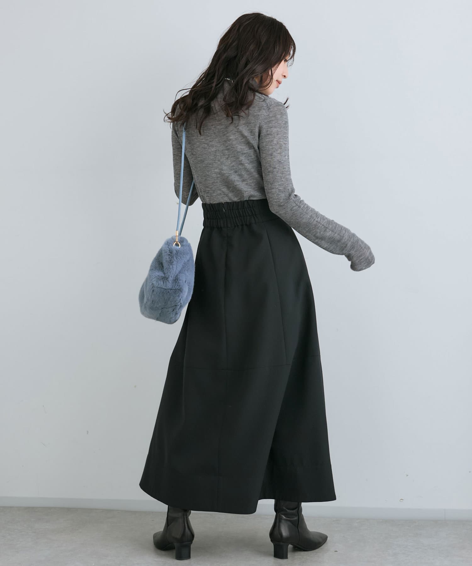 ハイウエストで足長効果もあり、後ろウエストはゴム仕様でらくな履き心地。