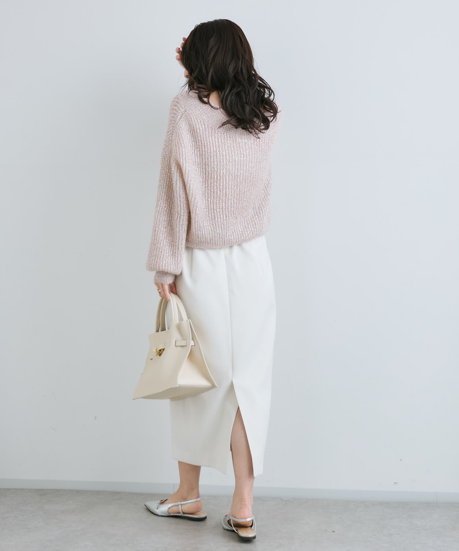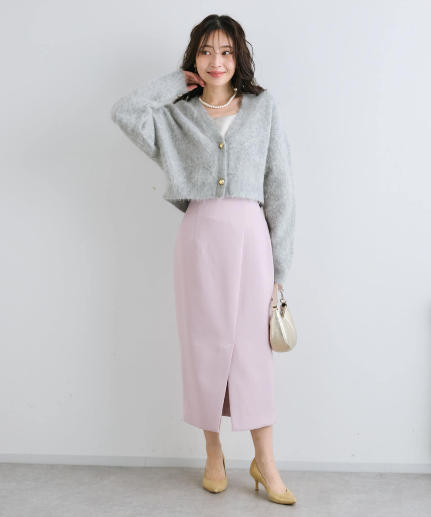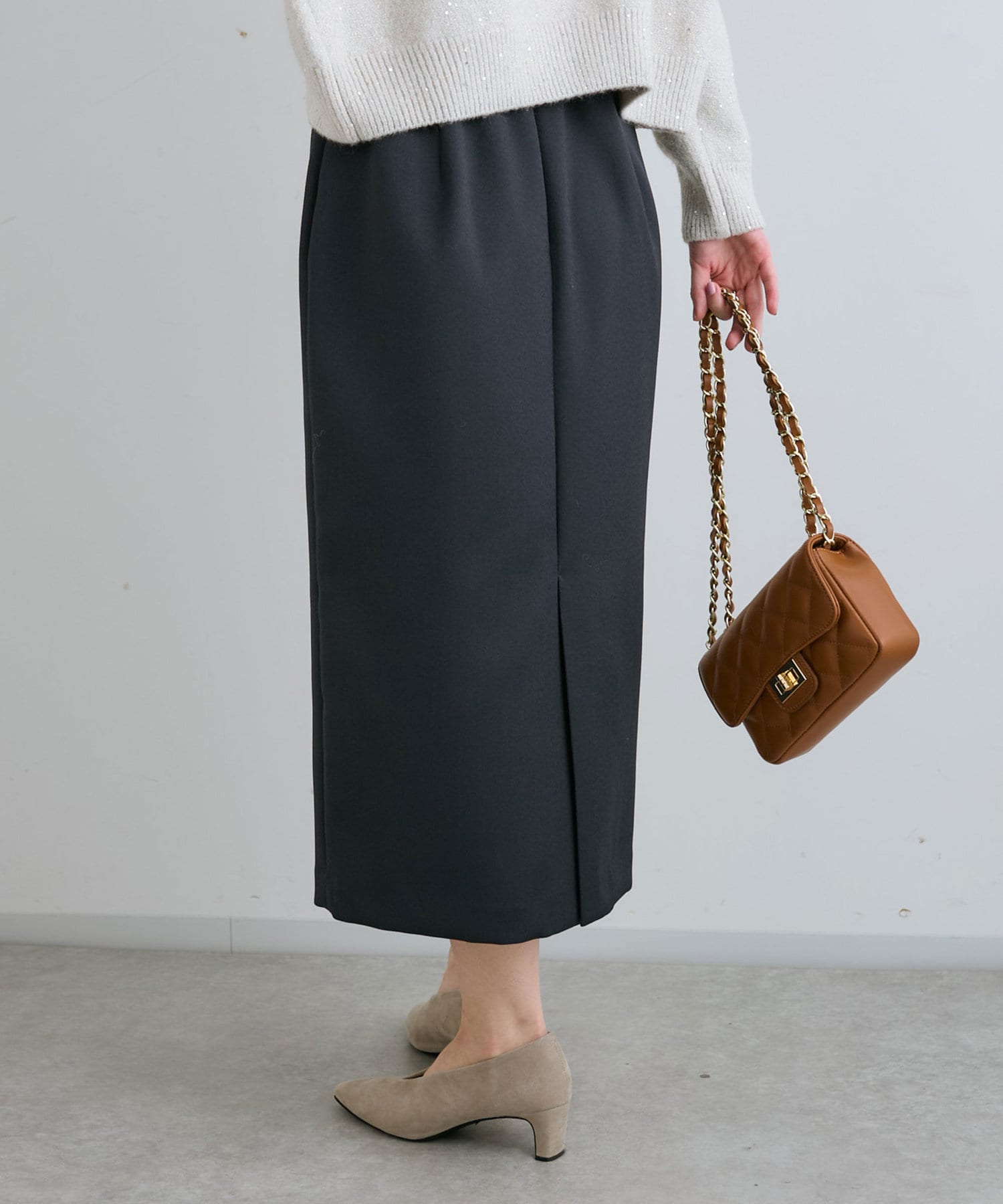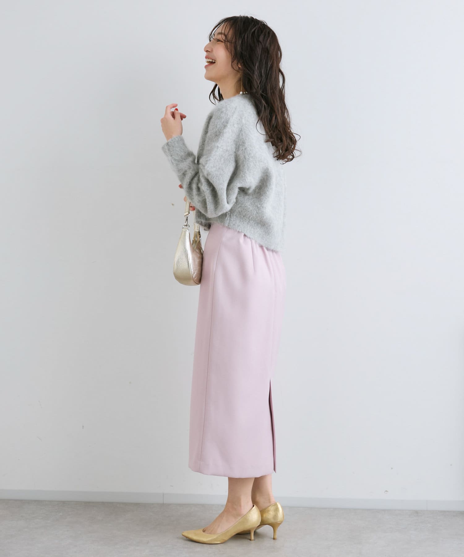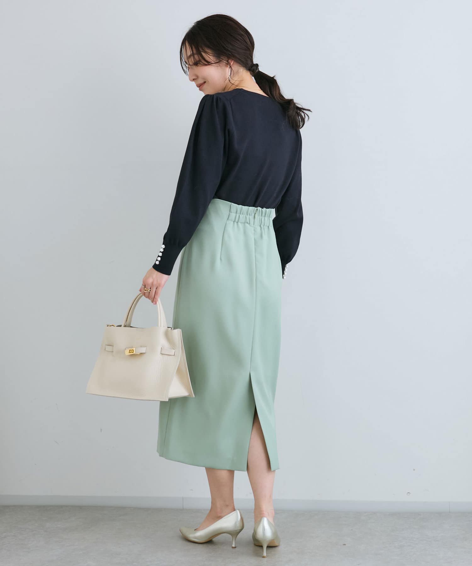 ウールのニット素材との合わせもすっきりとしたスタイリングに仕上げてくれます。