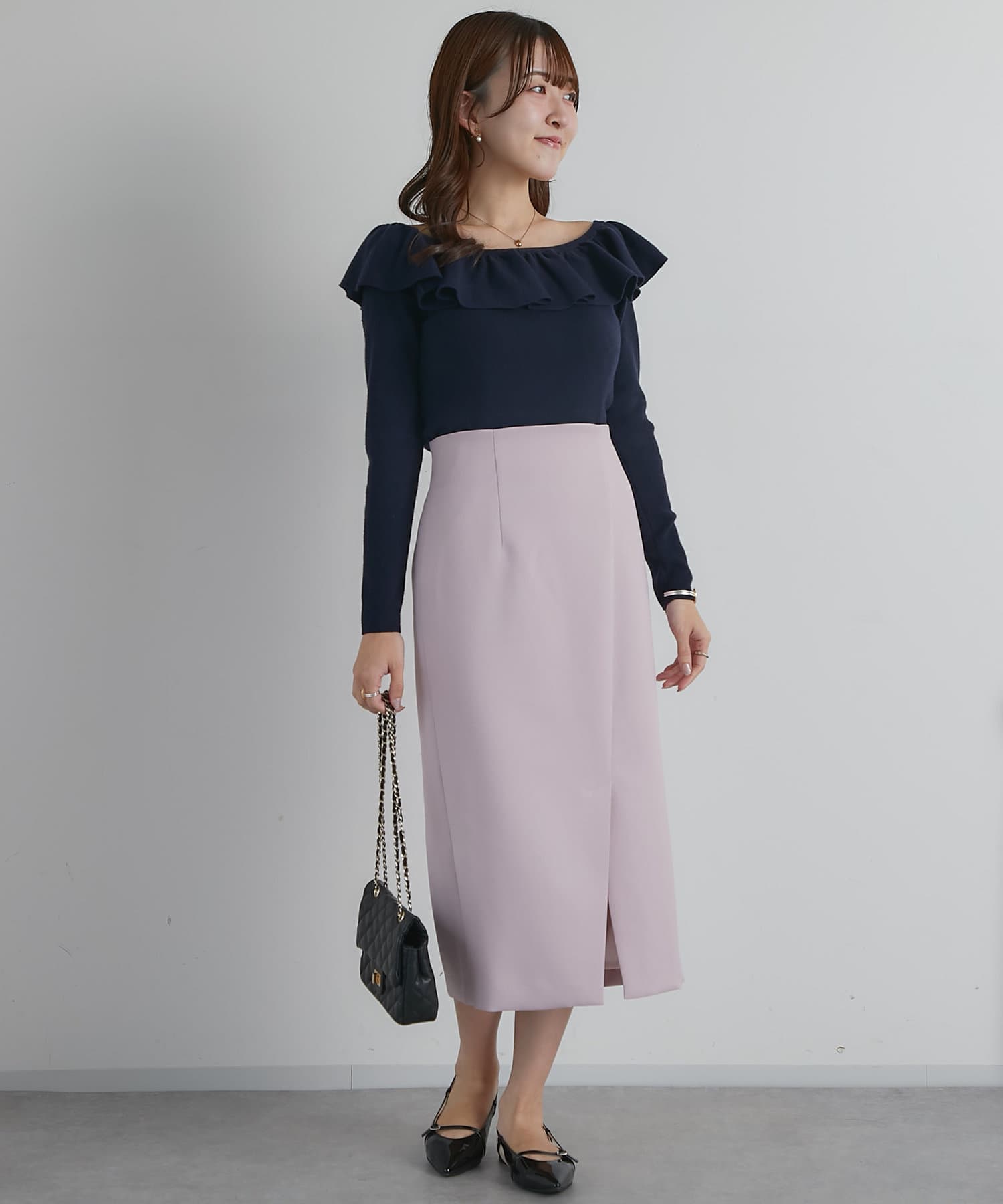 ブラウスでキレイめに合わせてオフィススタイルにもおすすめです。