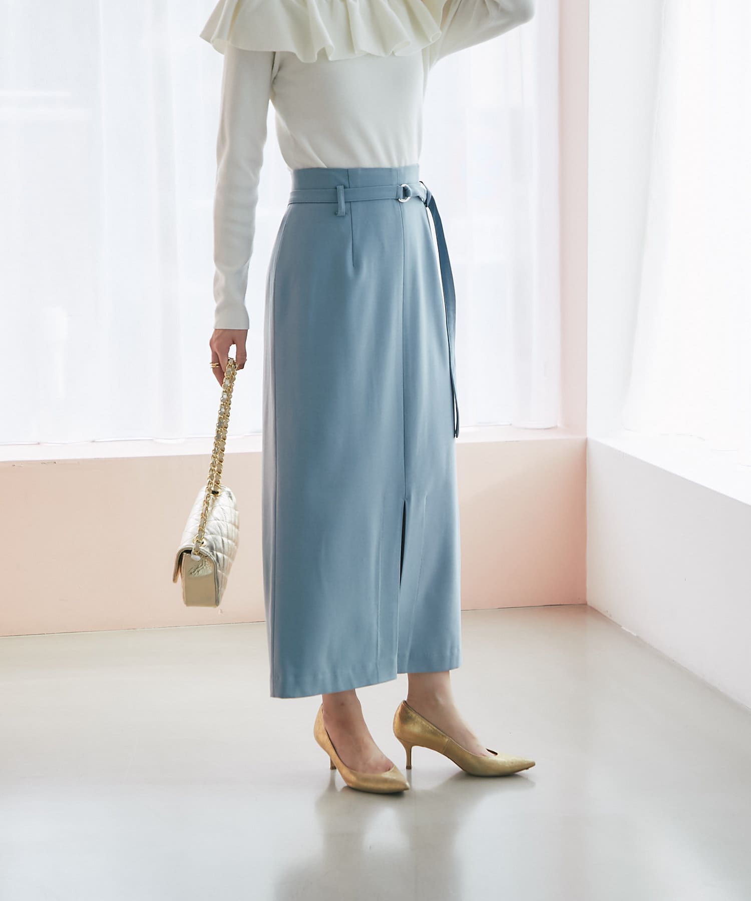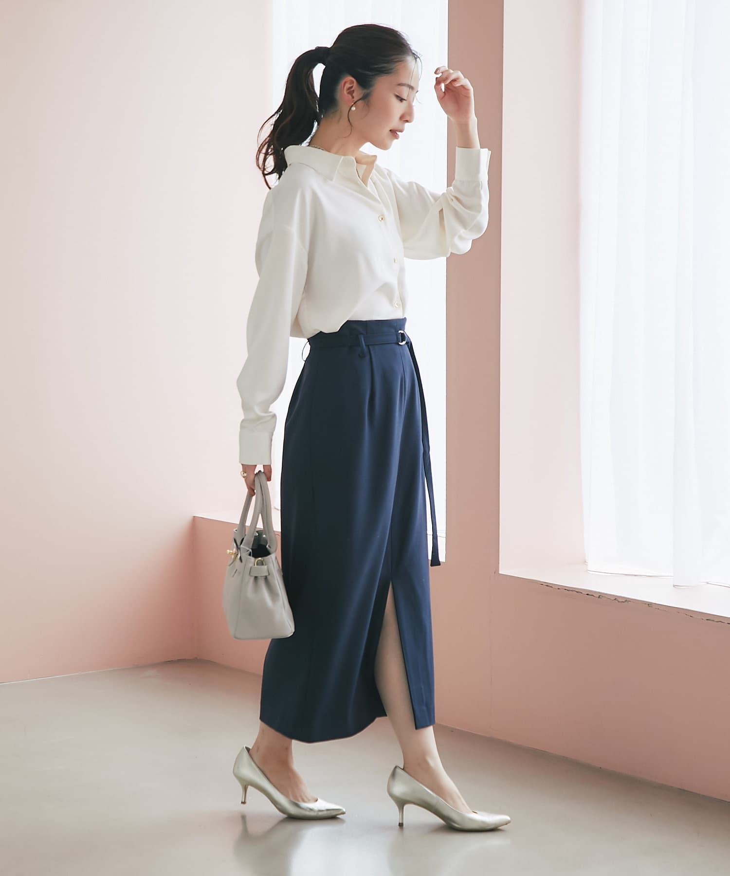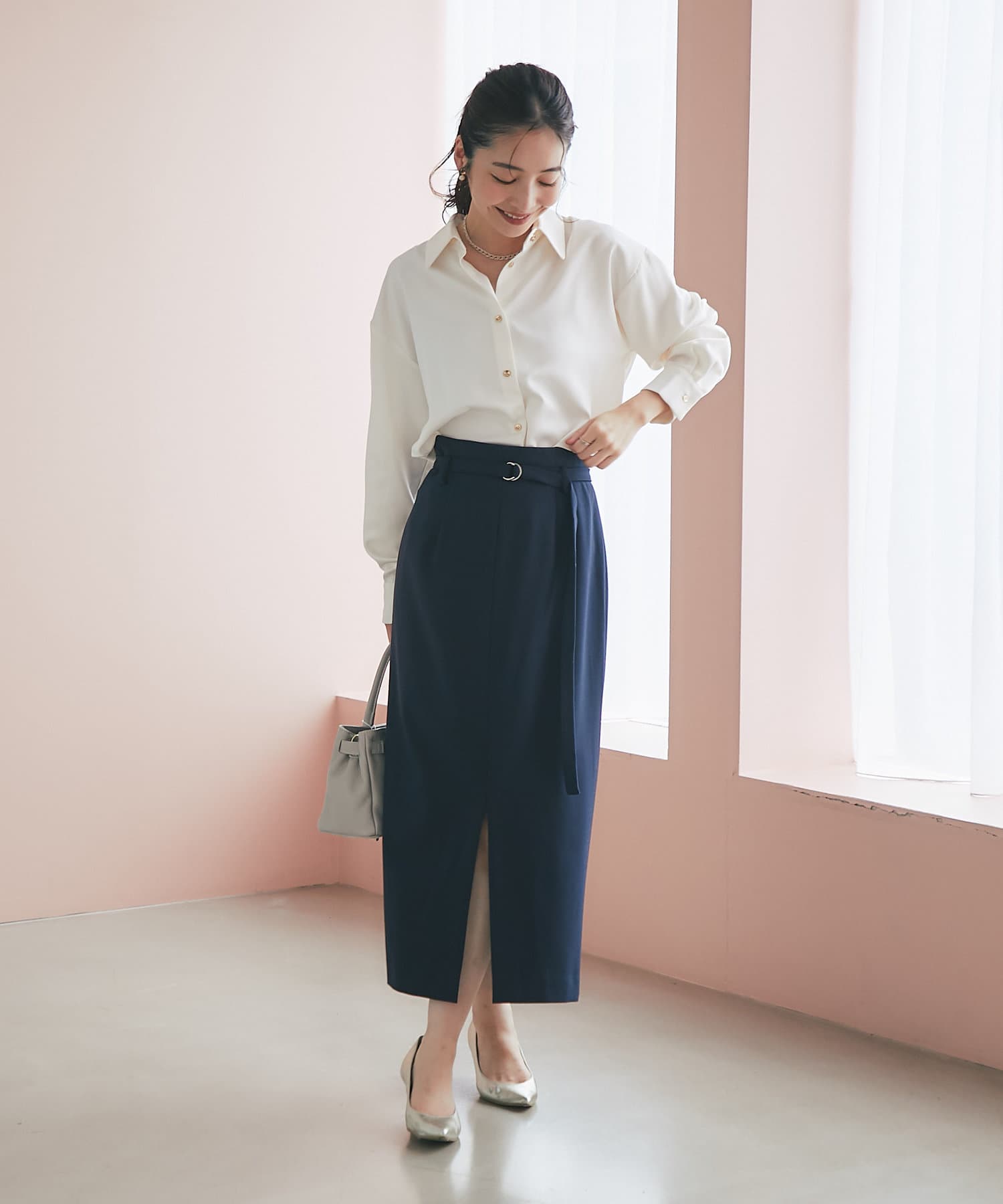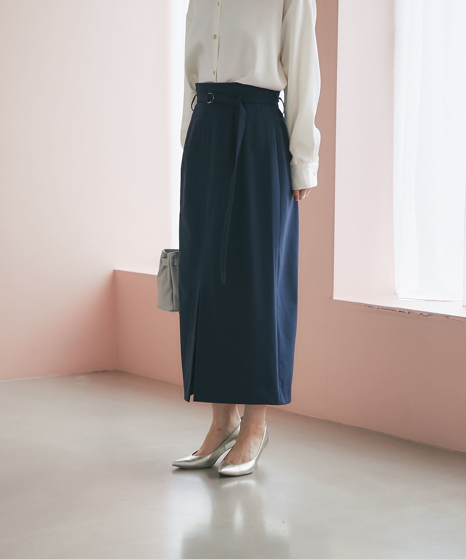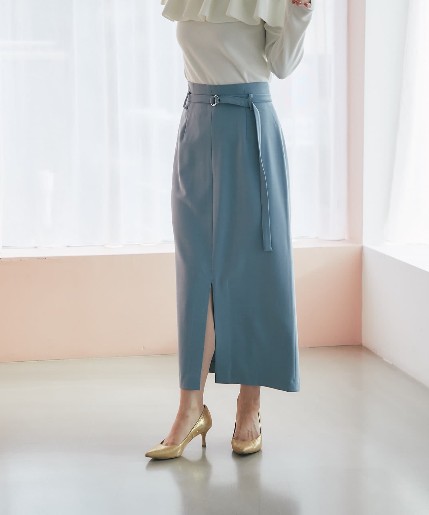 スタイリングのアクセントになるベルトデザインのタイトスカート