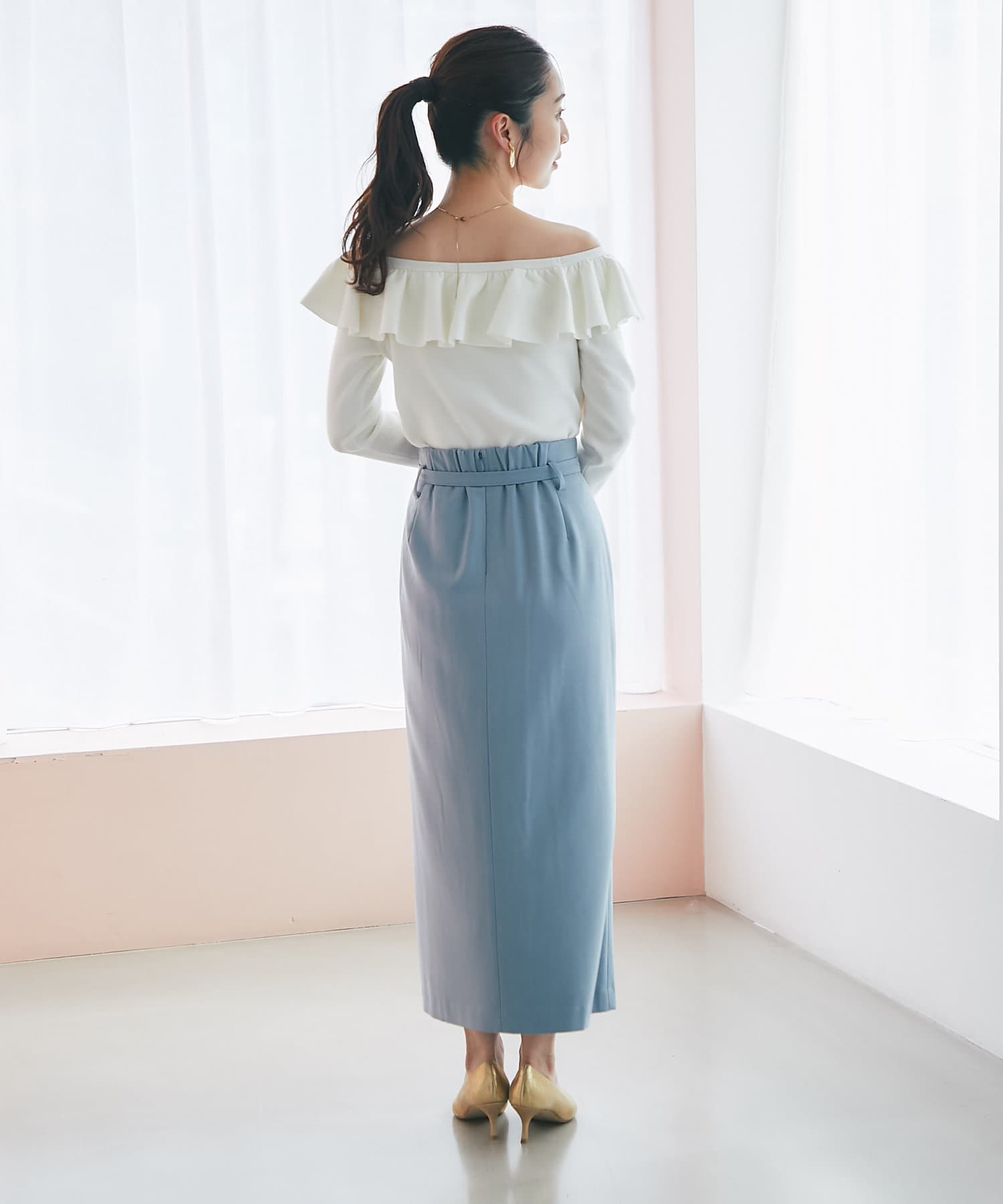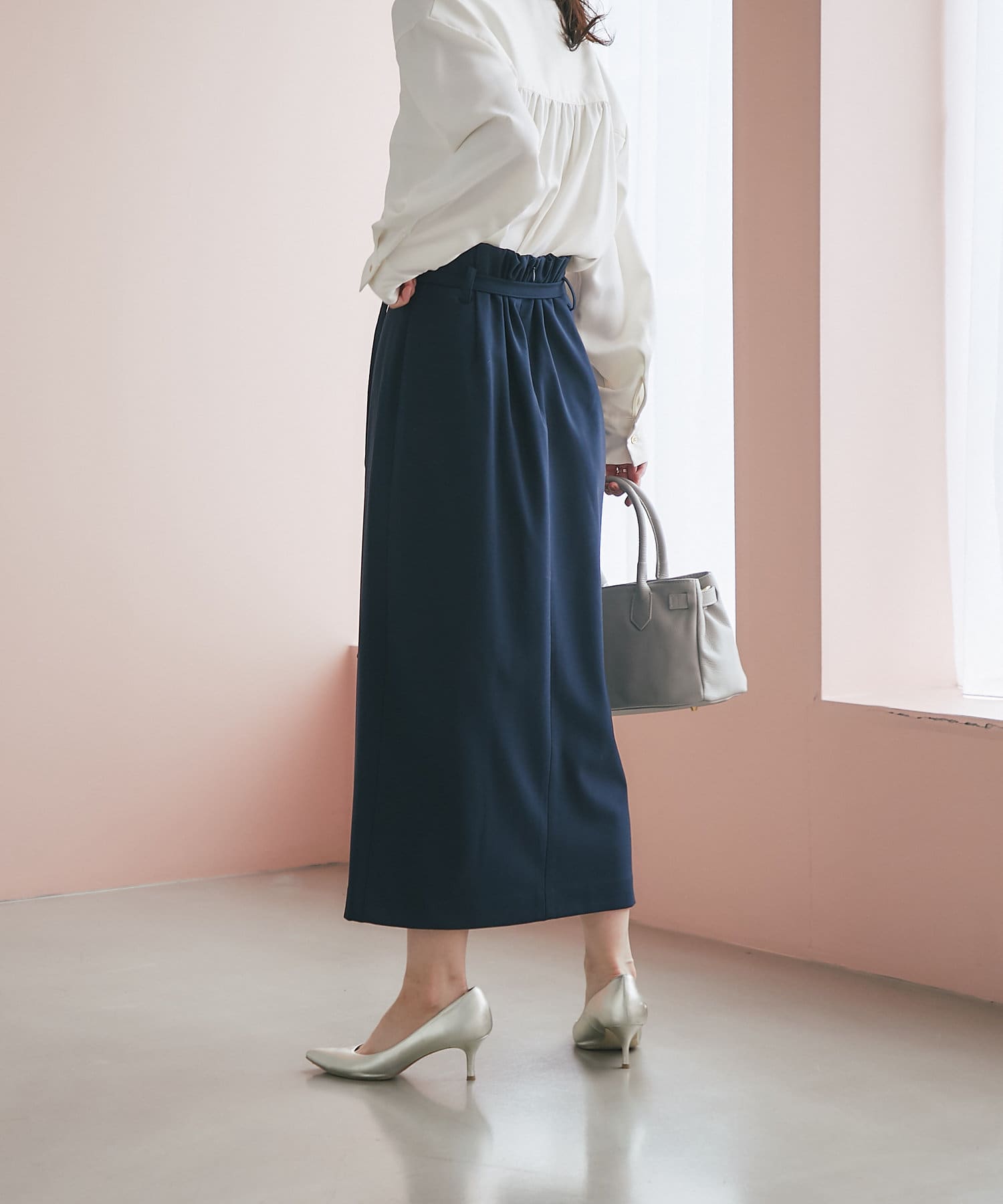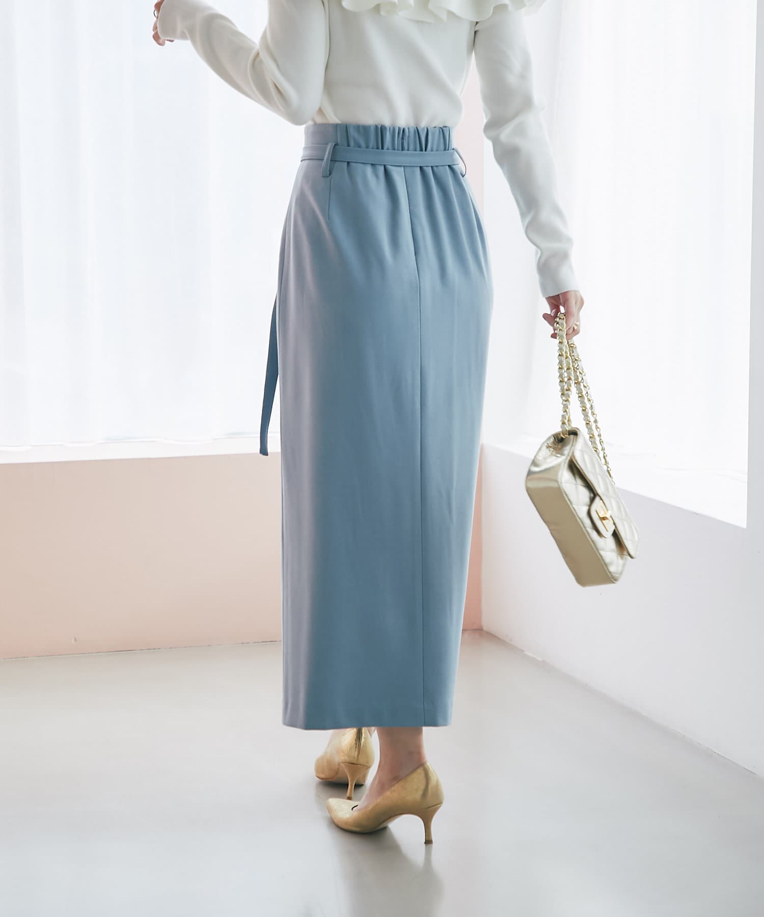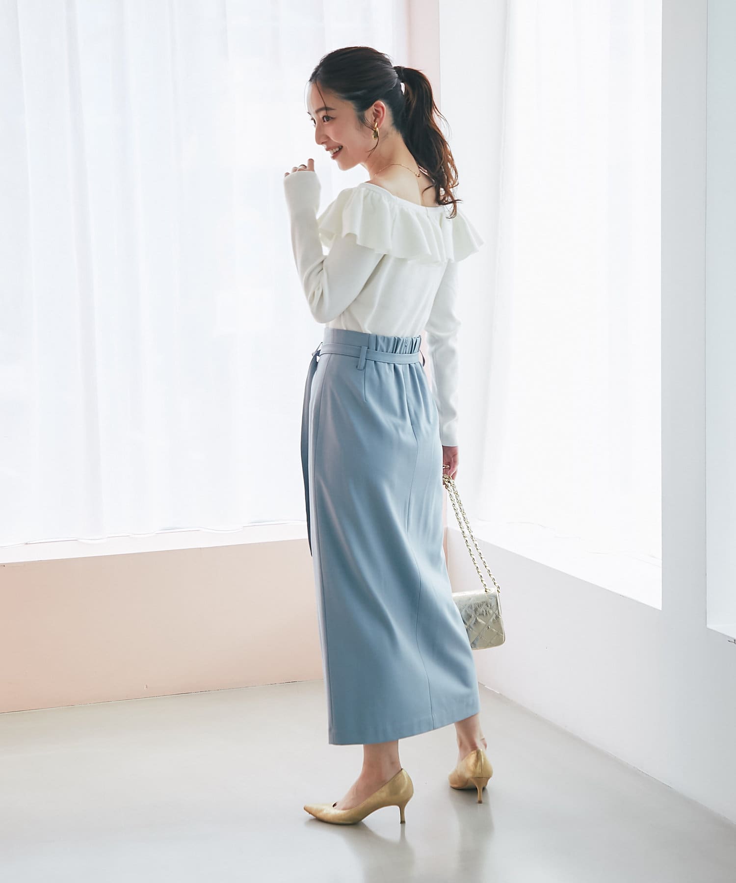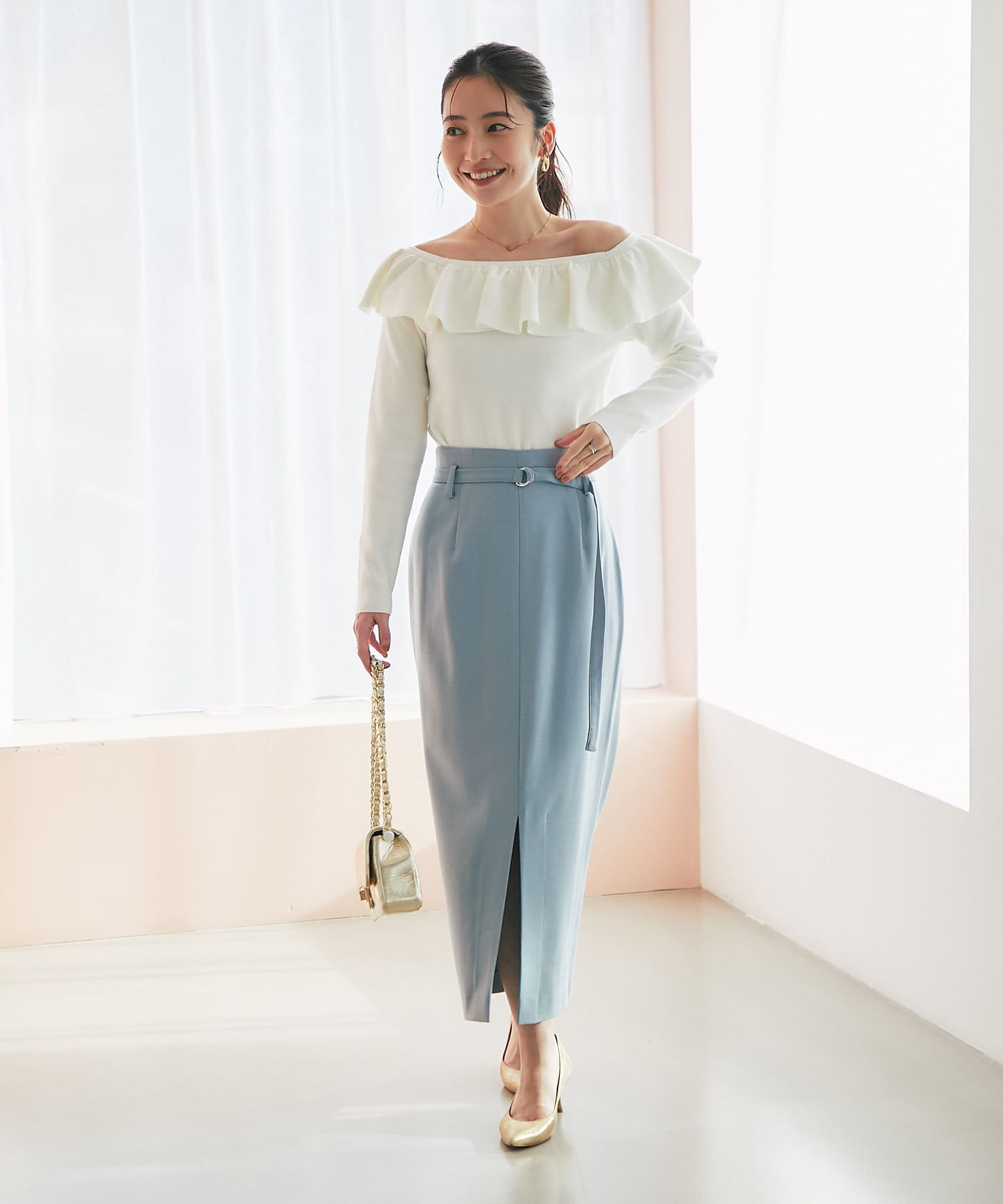スタイリングのアクセントになるベルトデザインのタイトスカート