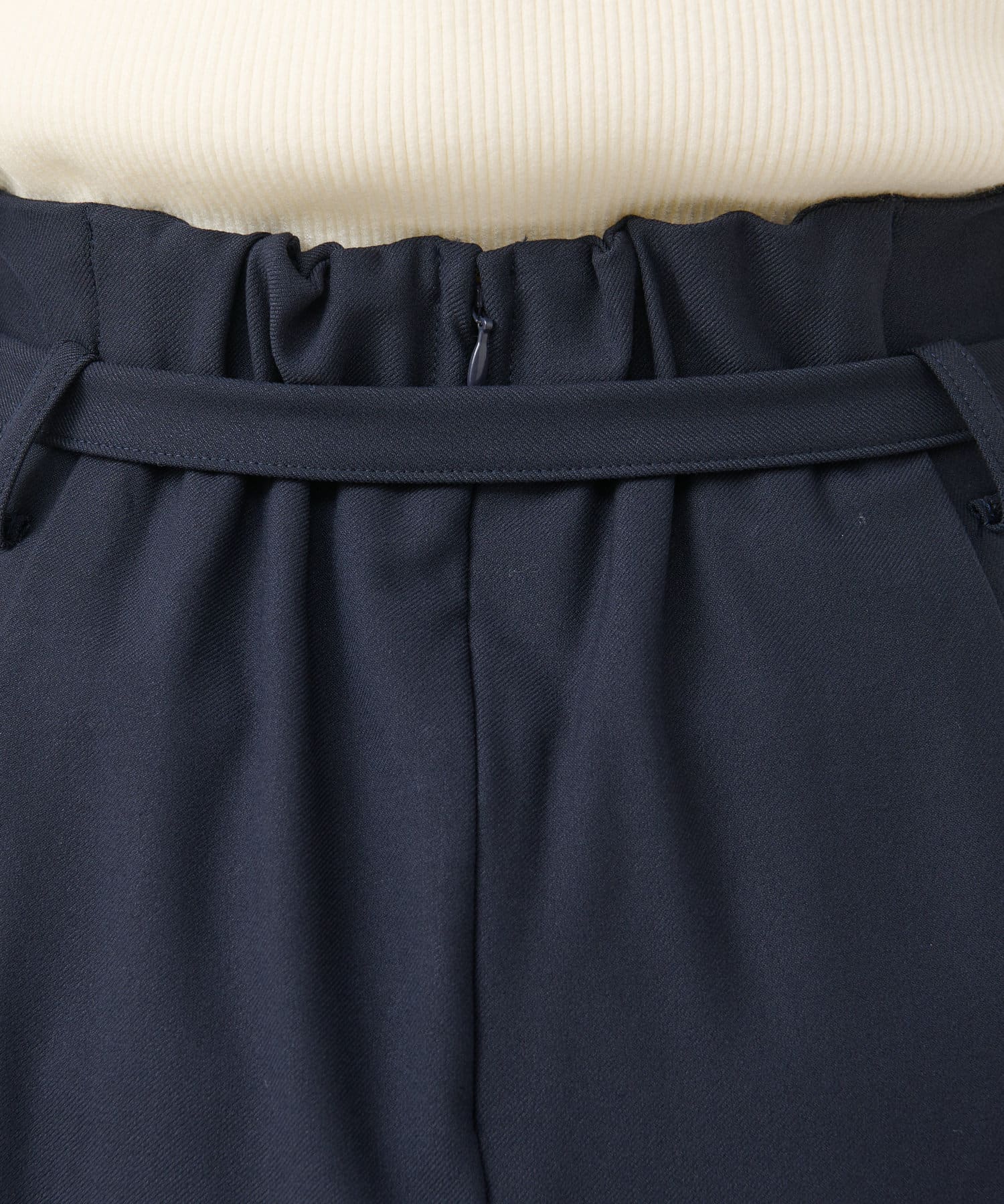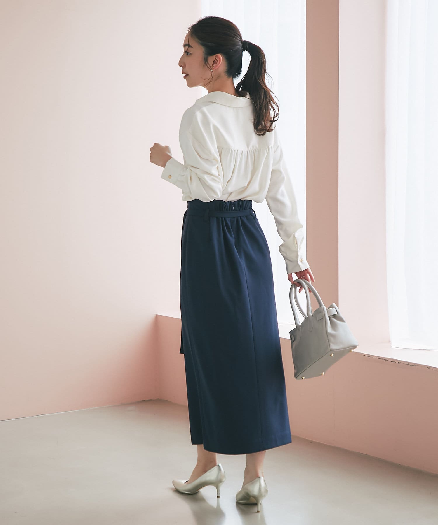 ポイントになる共布ベルト付きなのでトップスインですっきり見せコーデがおすすめです。