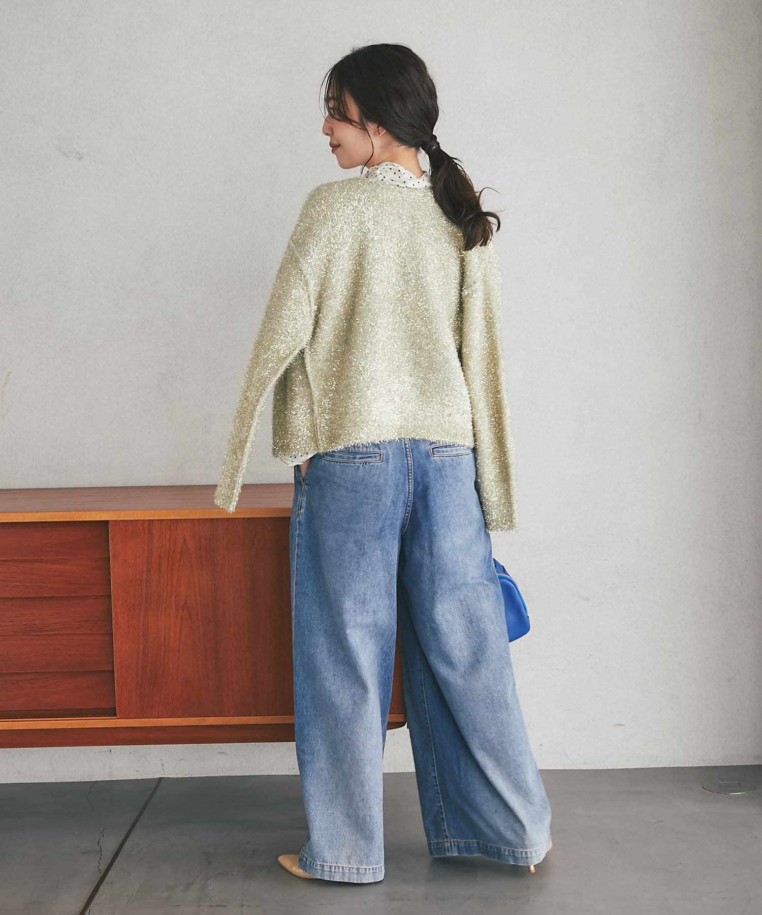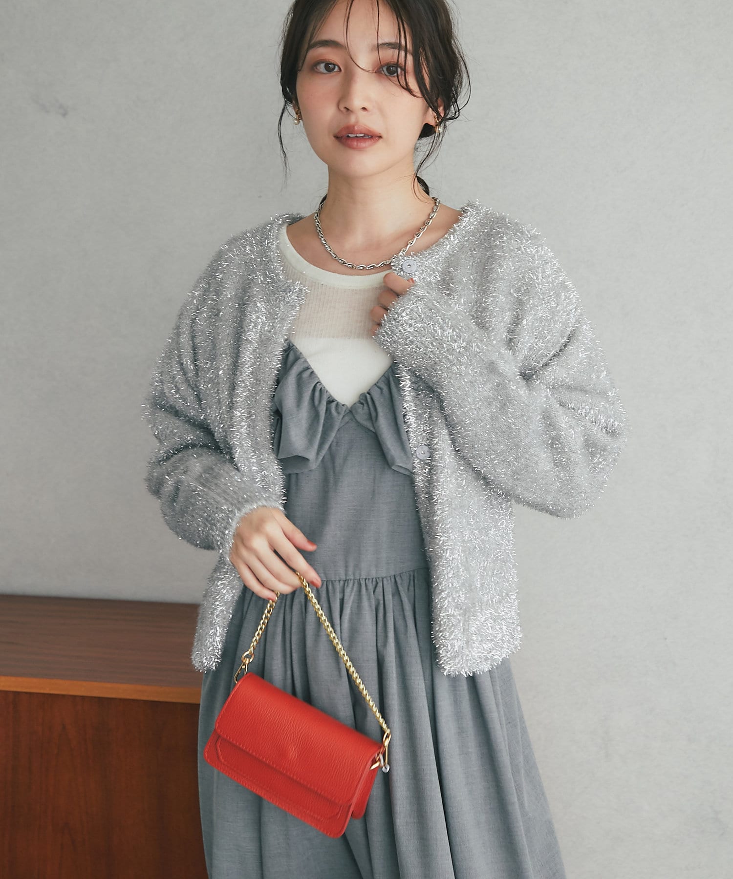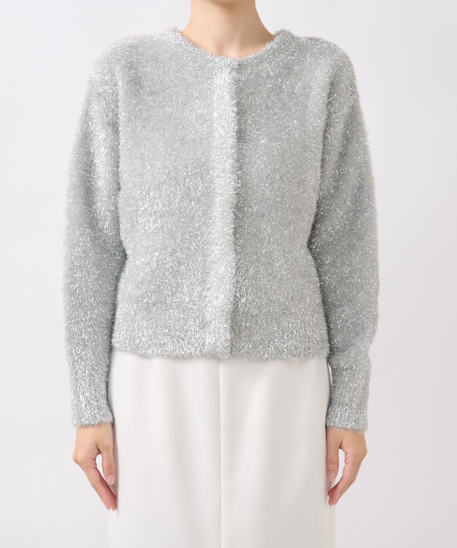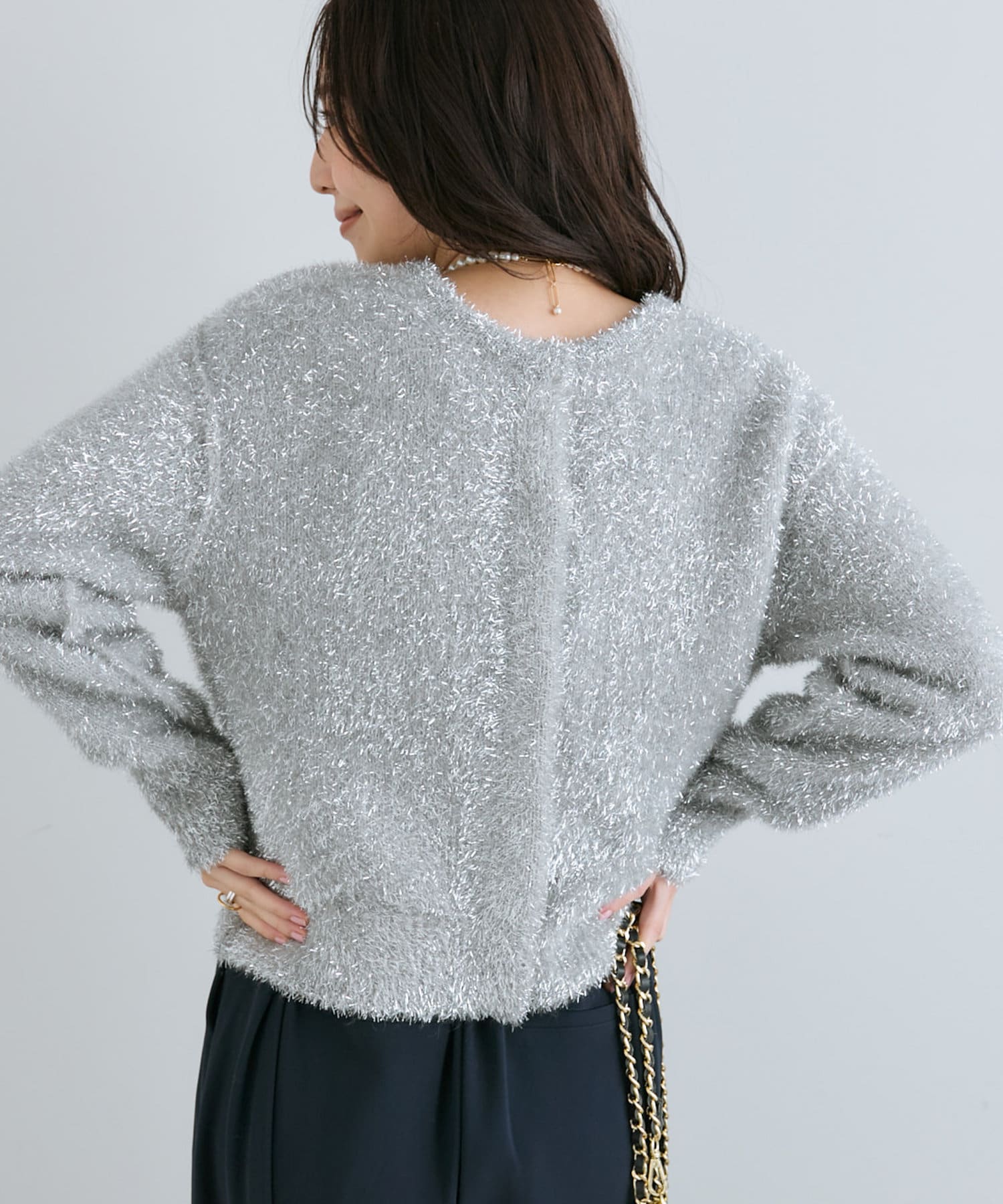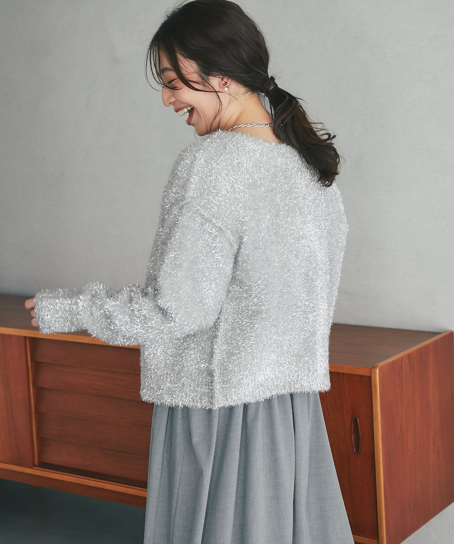 どの角度から見てもきらきら輝く、トレンドのラメニットカーディガン。