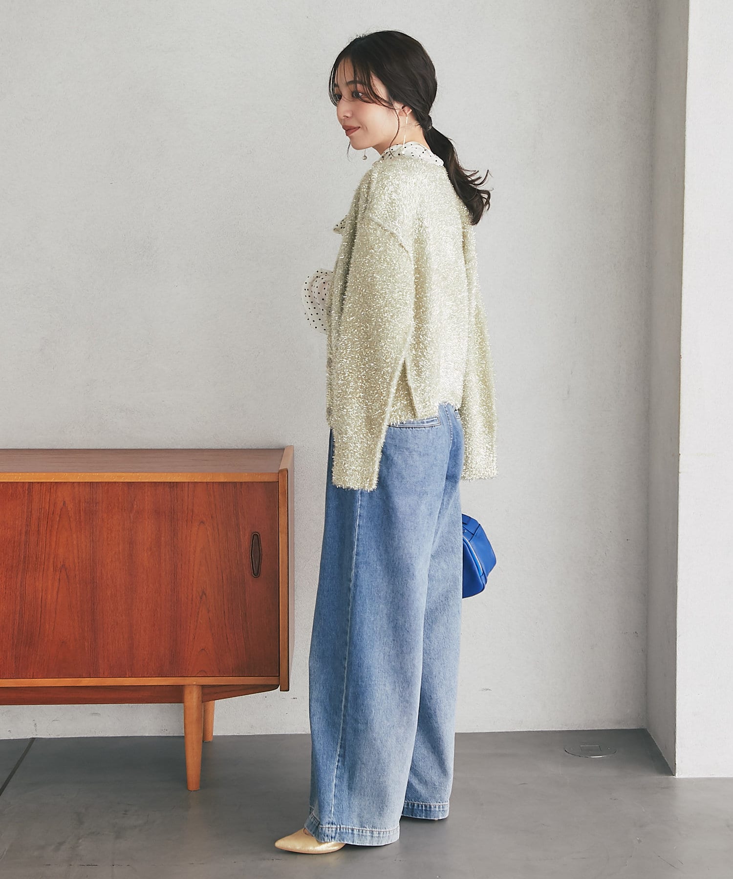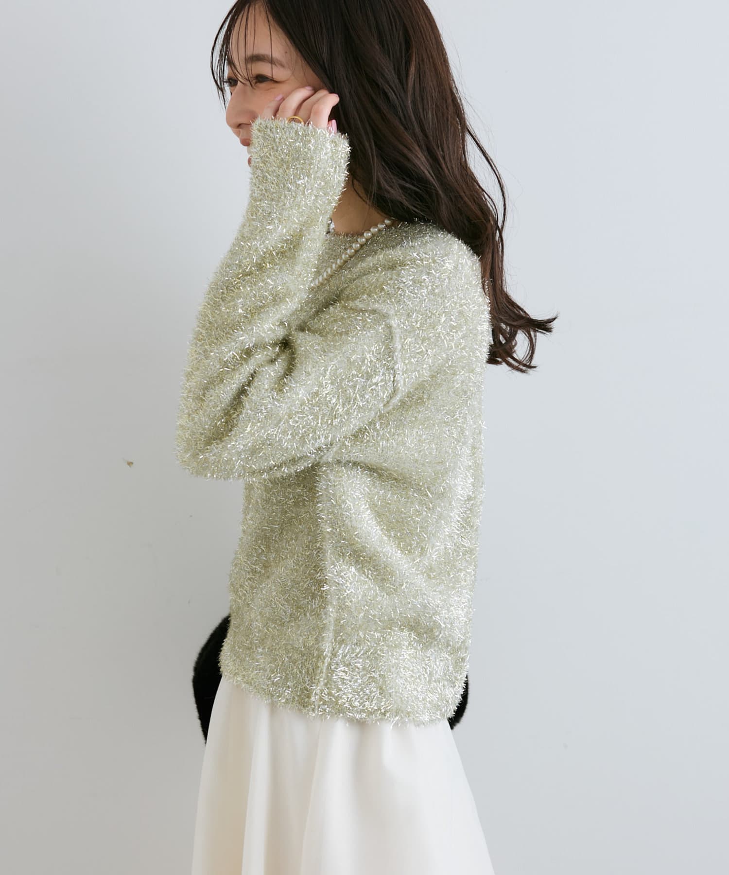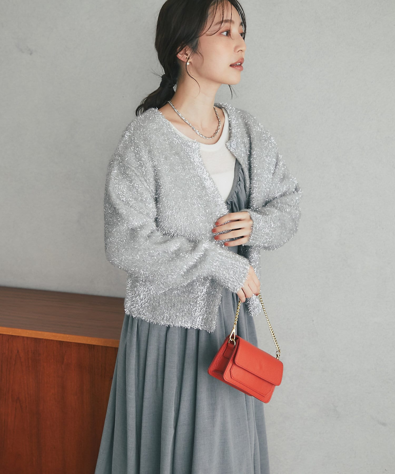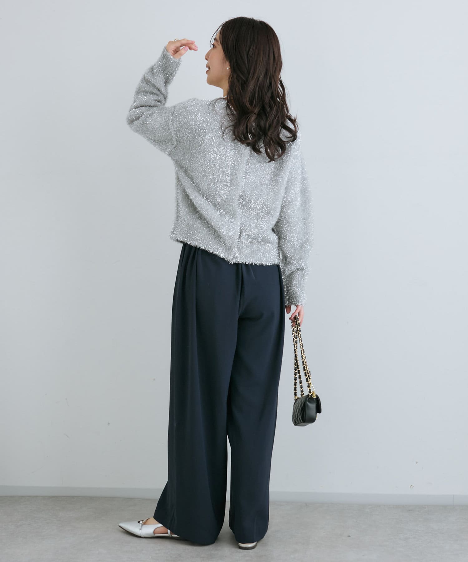 どの角度から見てもきらきら輝く、トレンドのラメニットカーディガン。