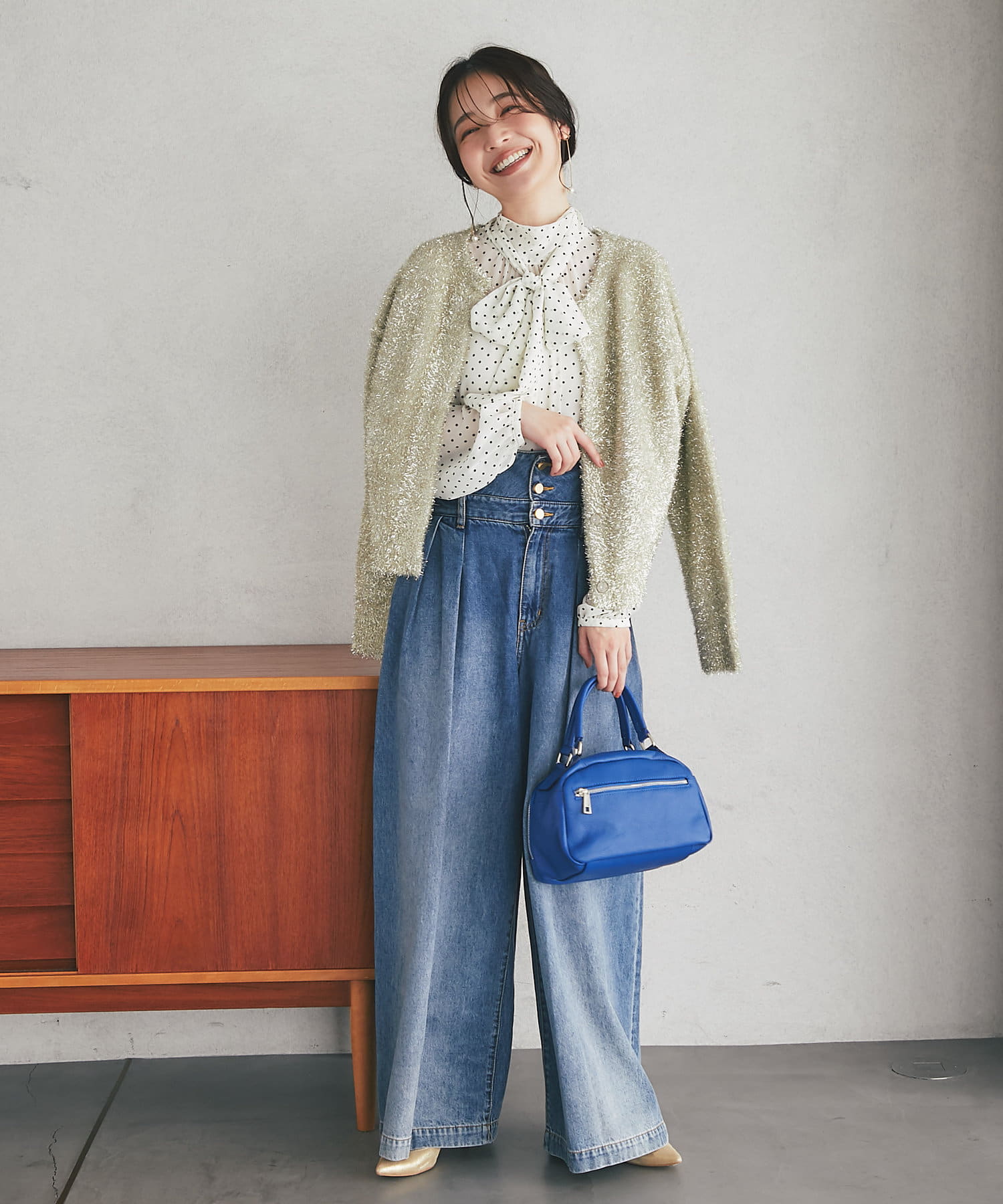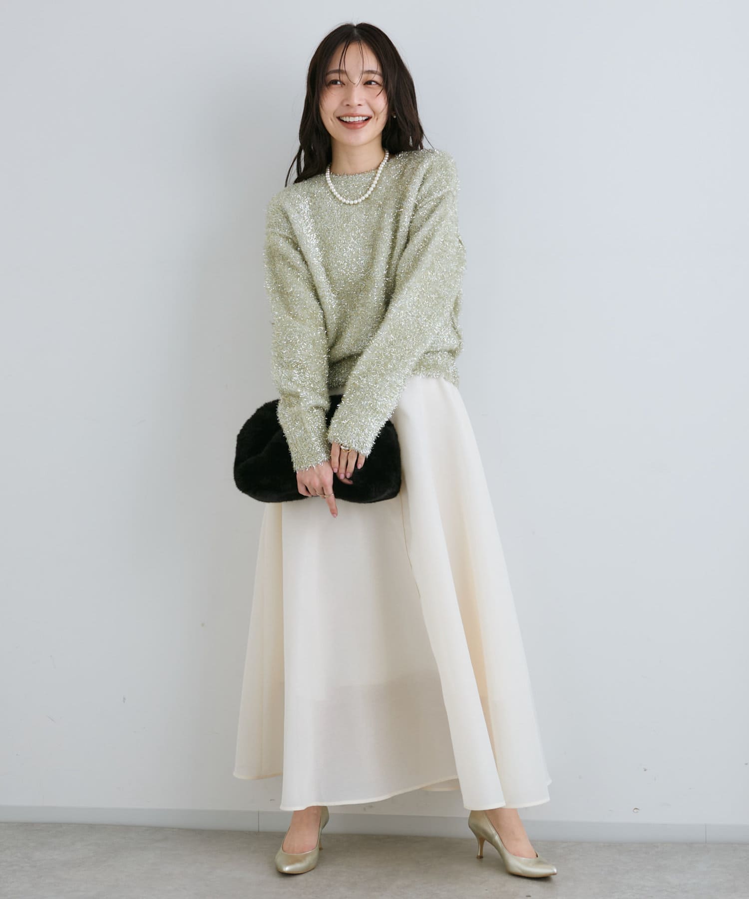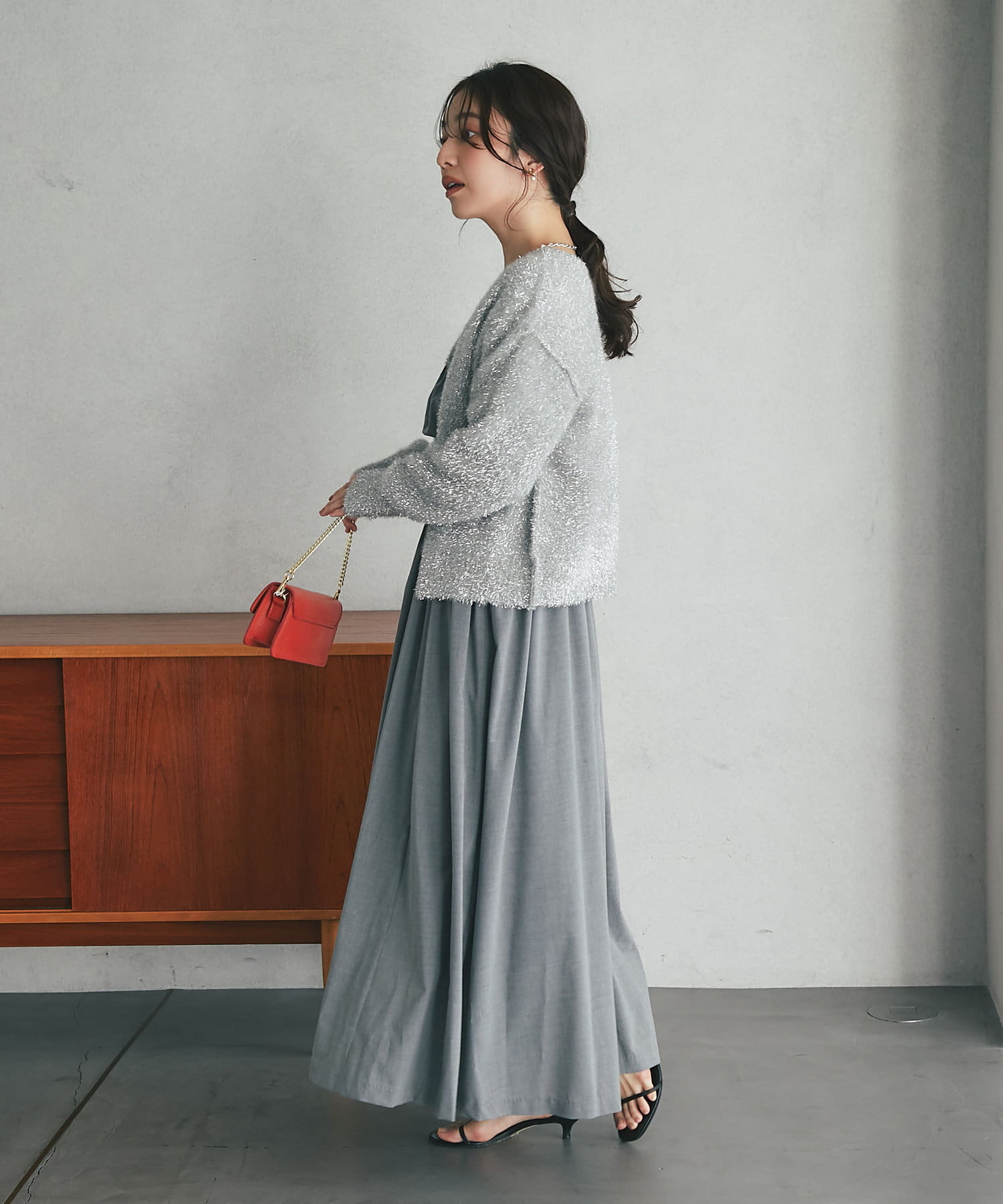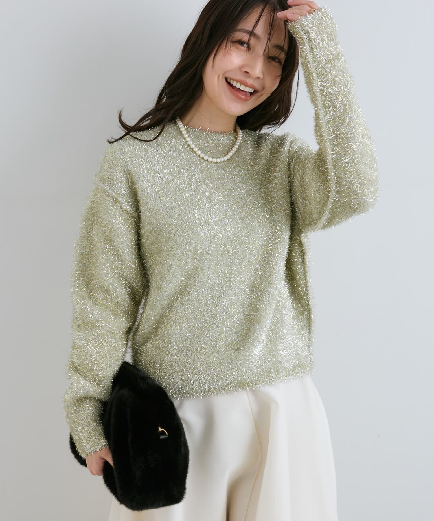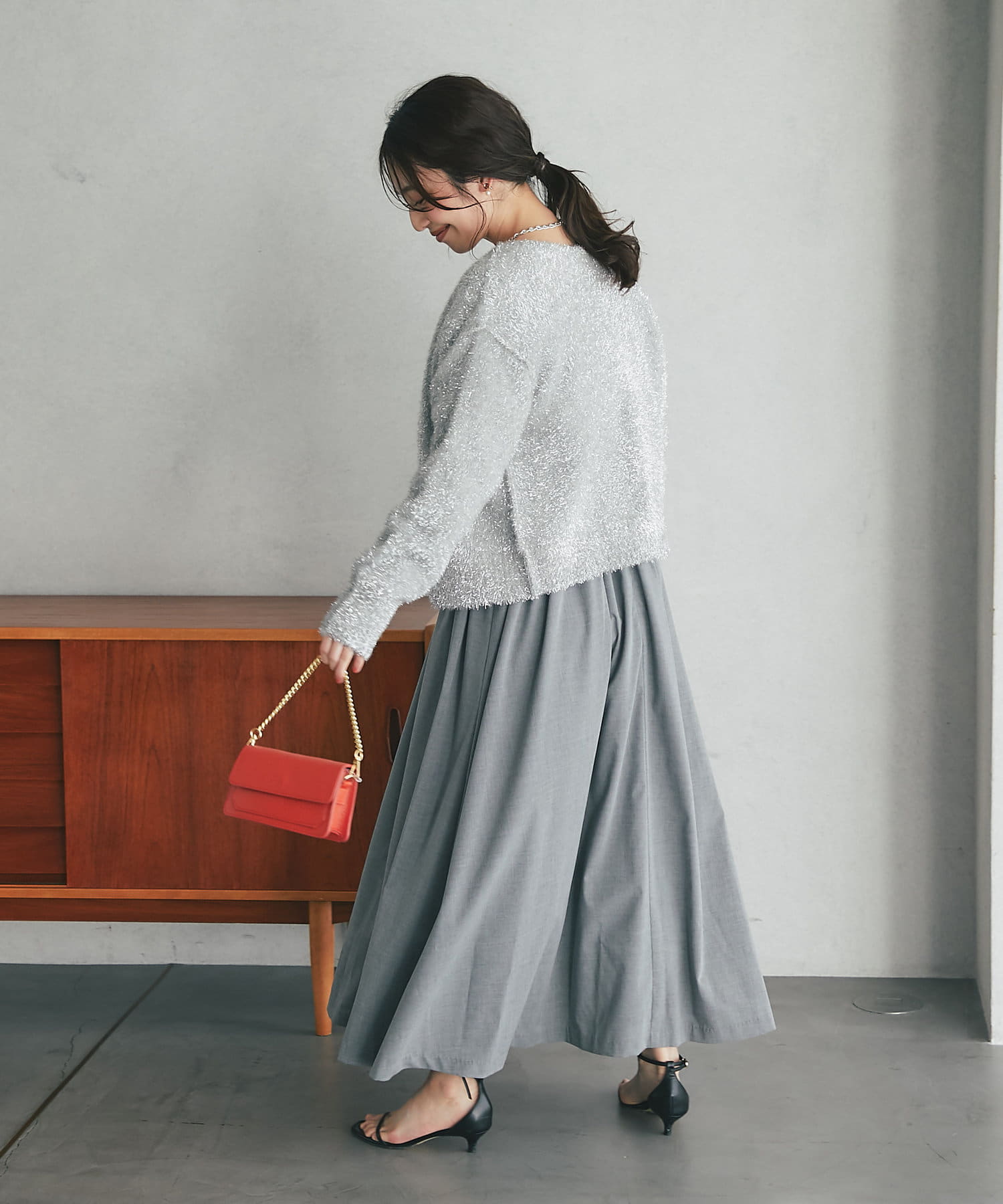 どの角度から見てもきらきら輝く、トレンドのラメニットカーディガン。