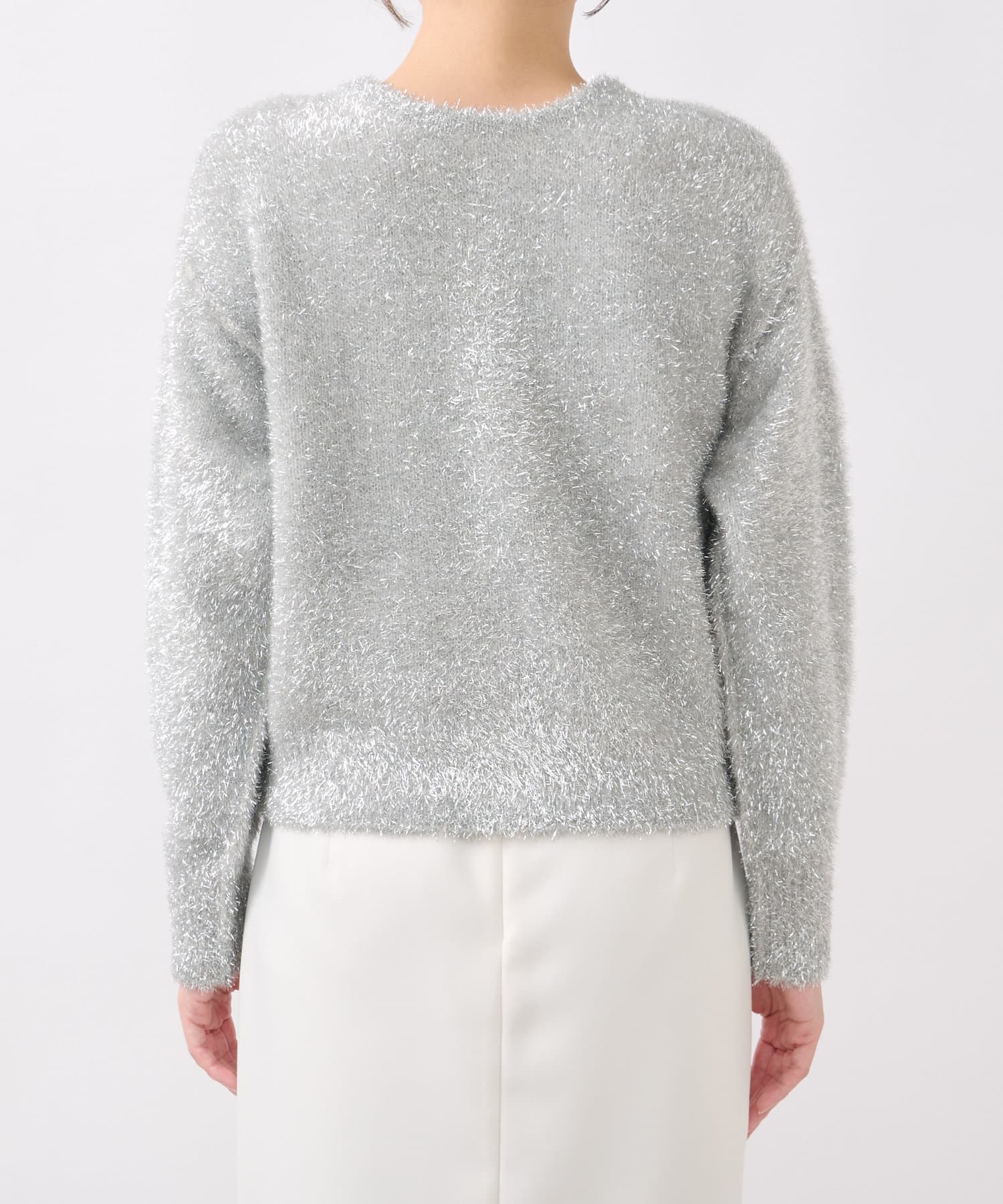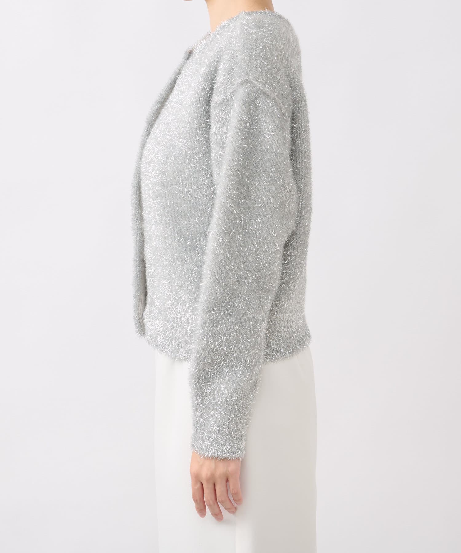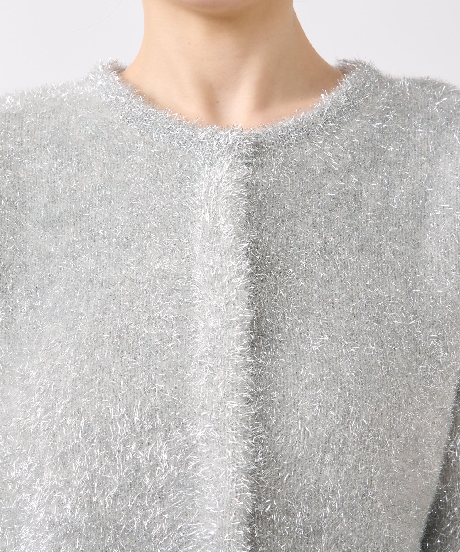 ラメヘアリーウールカシミヤ混前後2WAYカーディガン