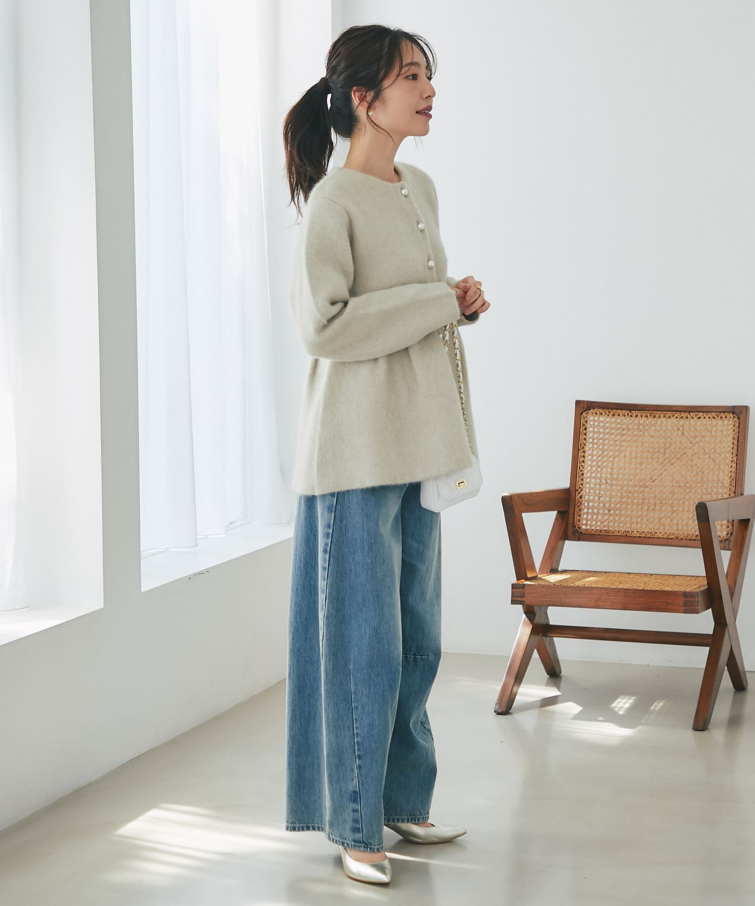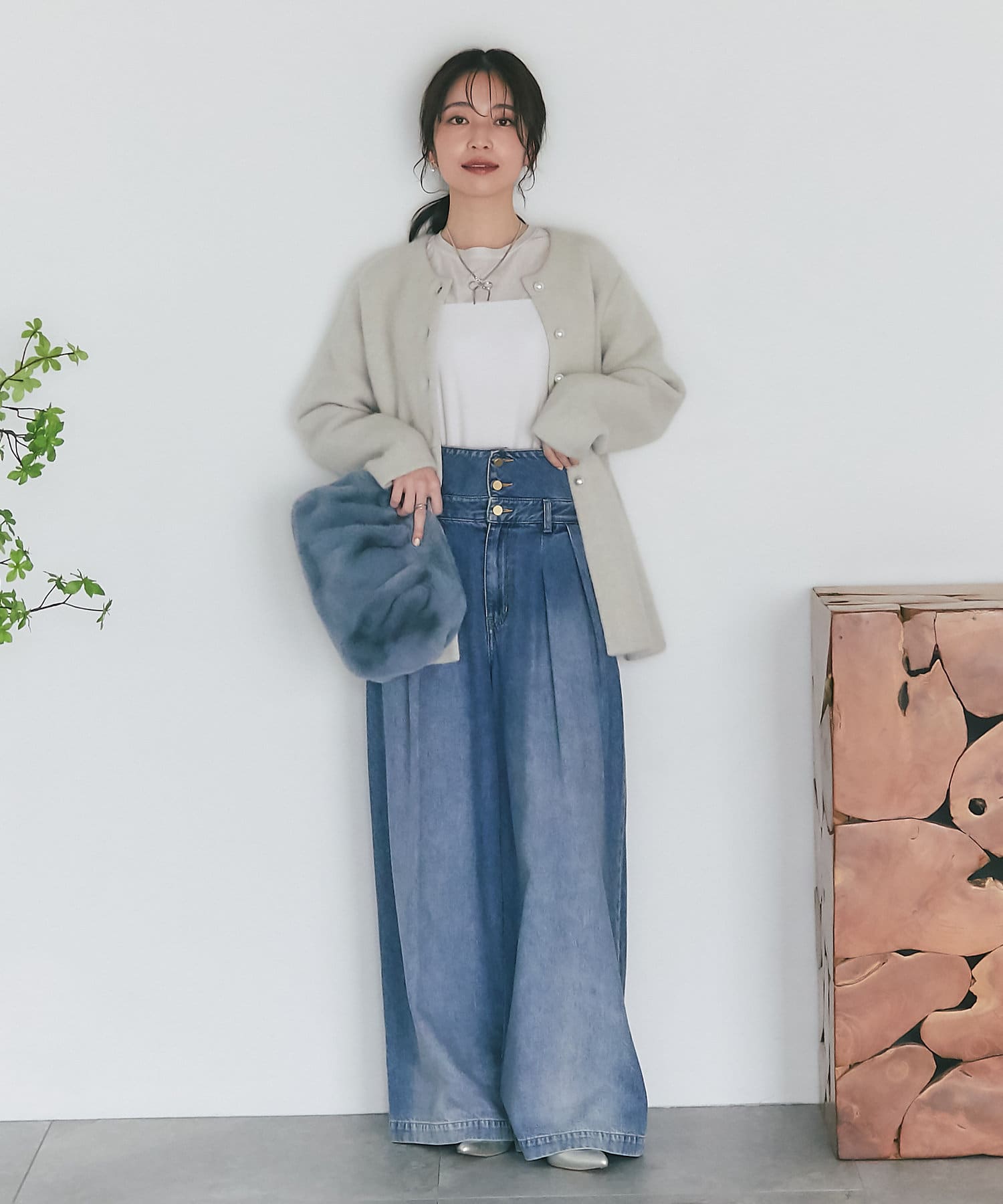 デニム合わせでカジュアルな着こなしも楽しめます。