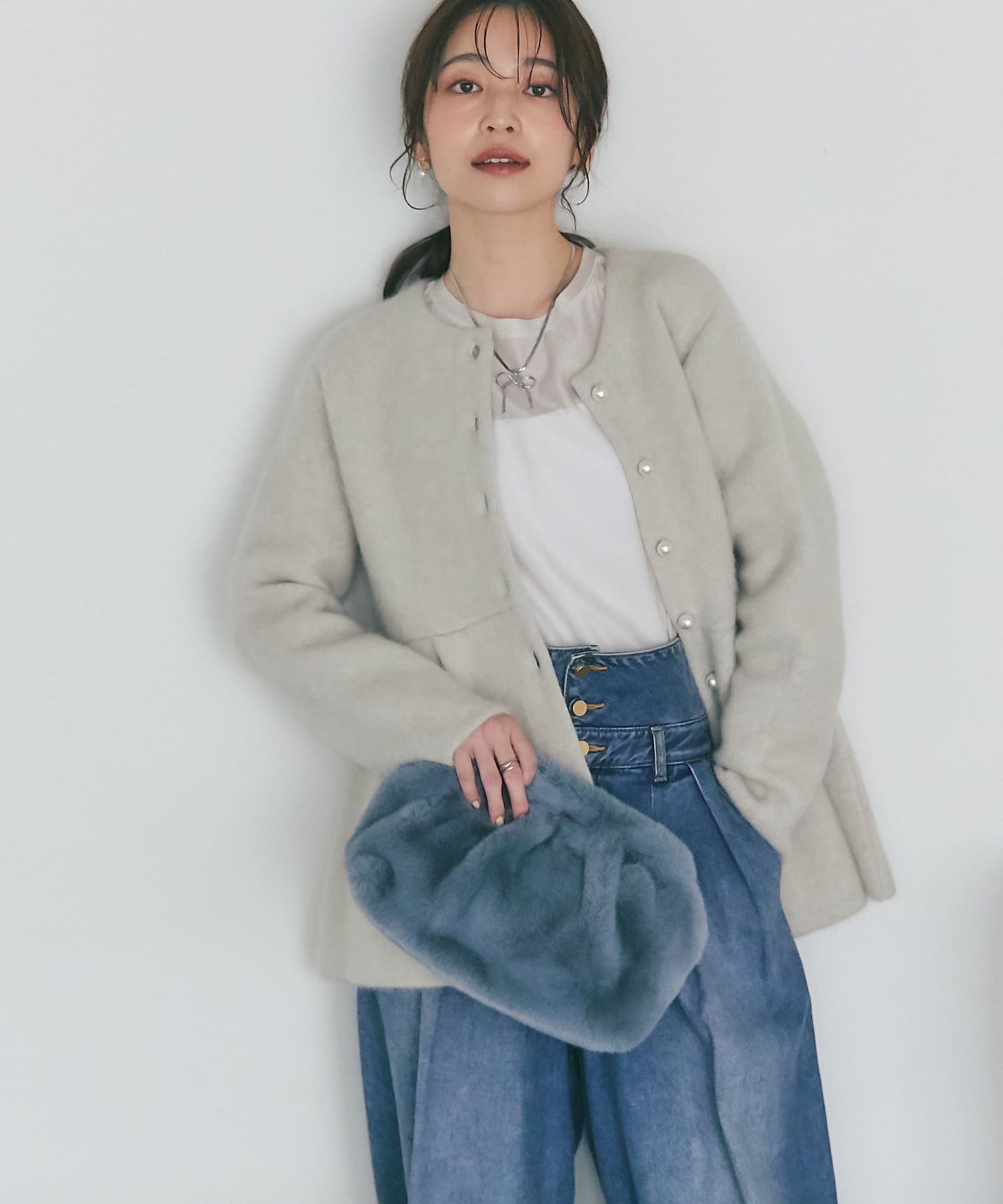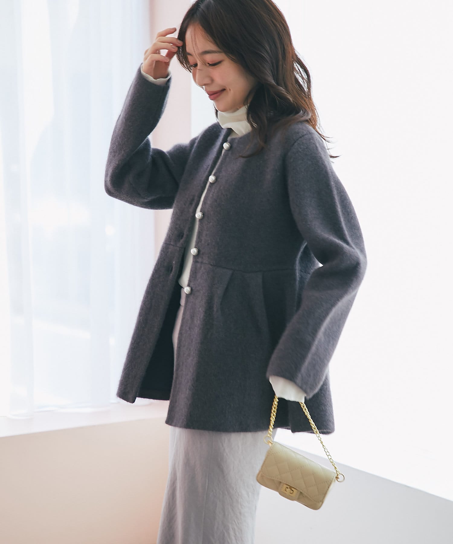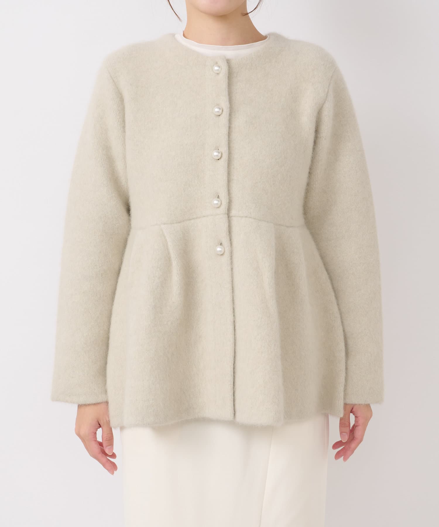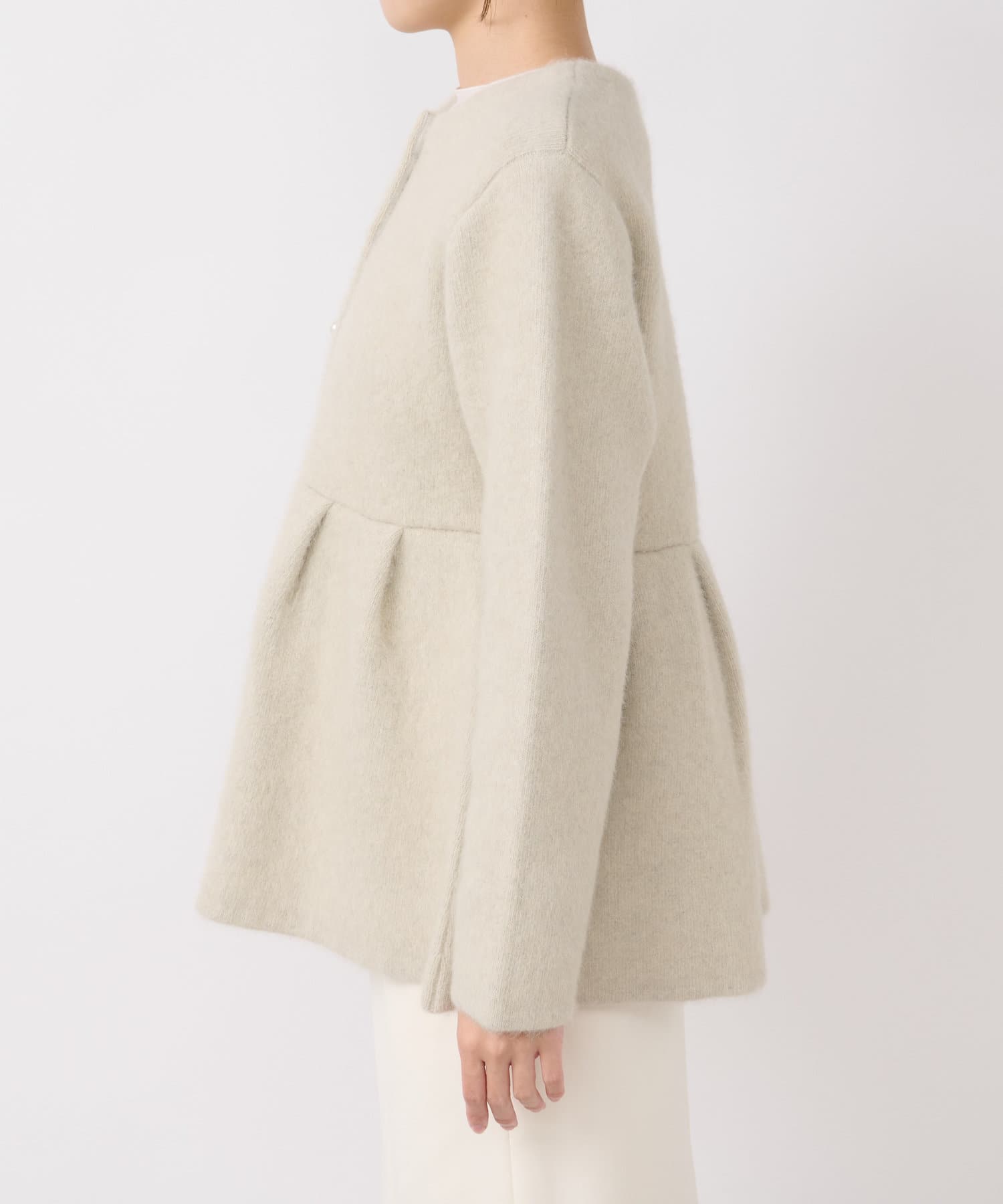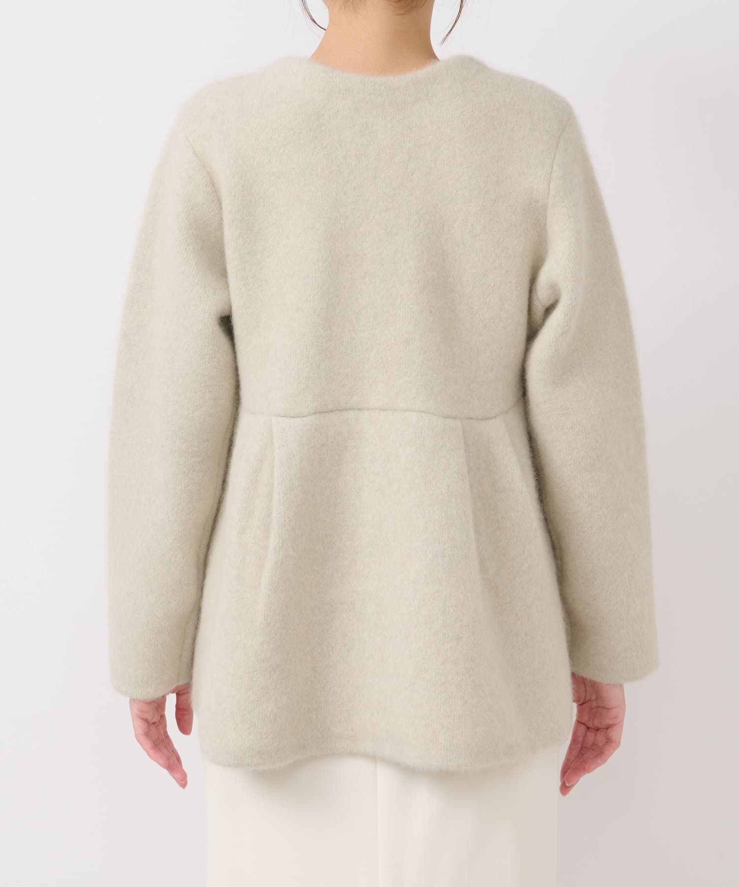 【ペプラムトレンド】ハイクオリティヘアリーウールニットペプラムジャケット