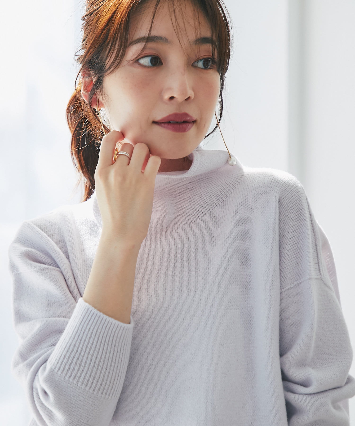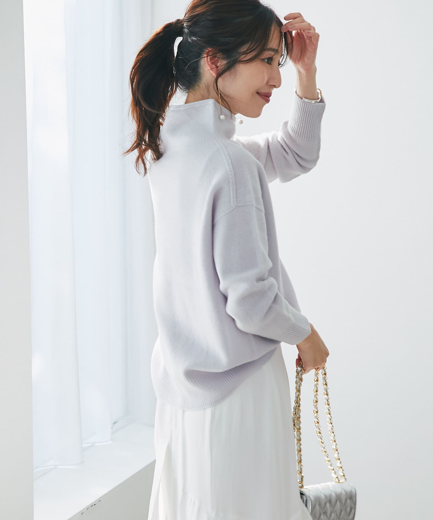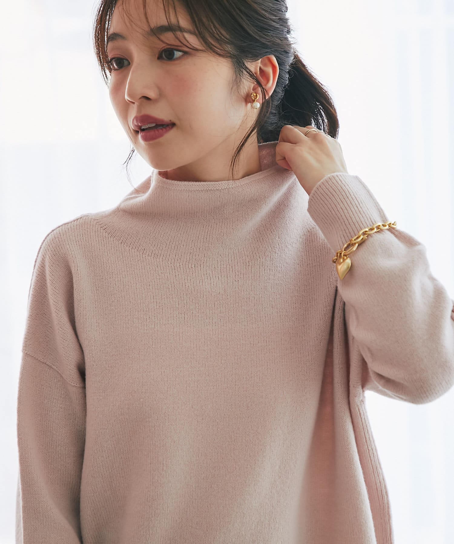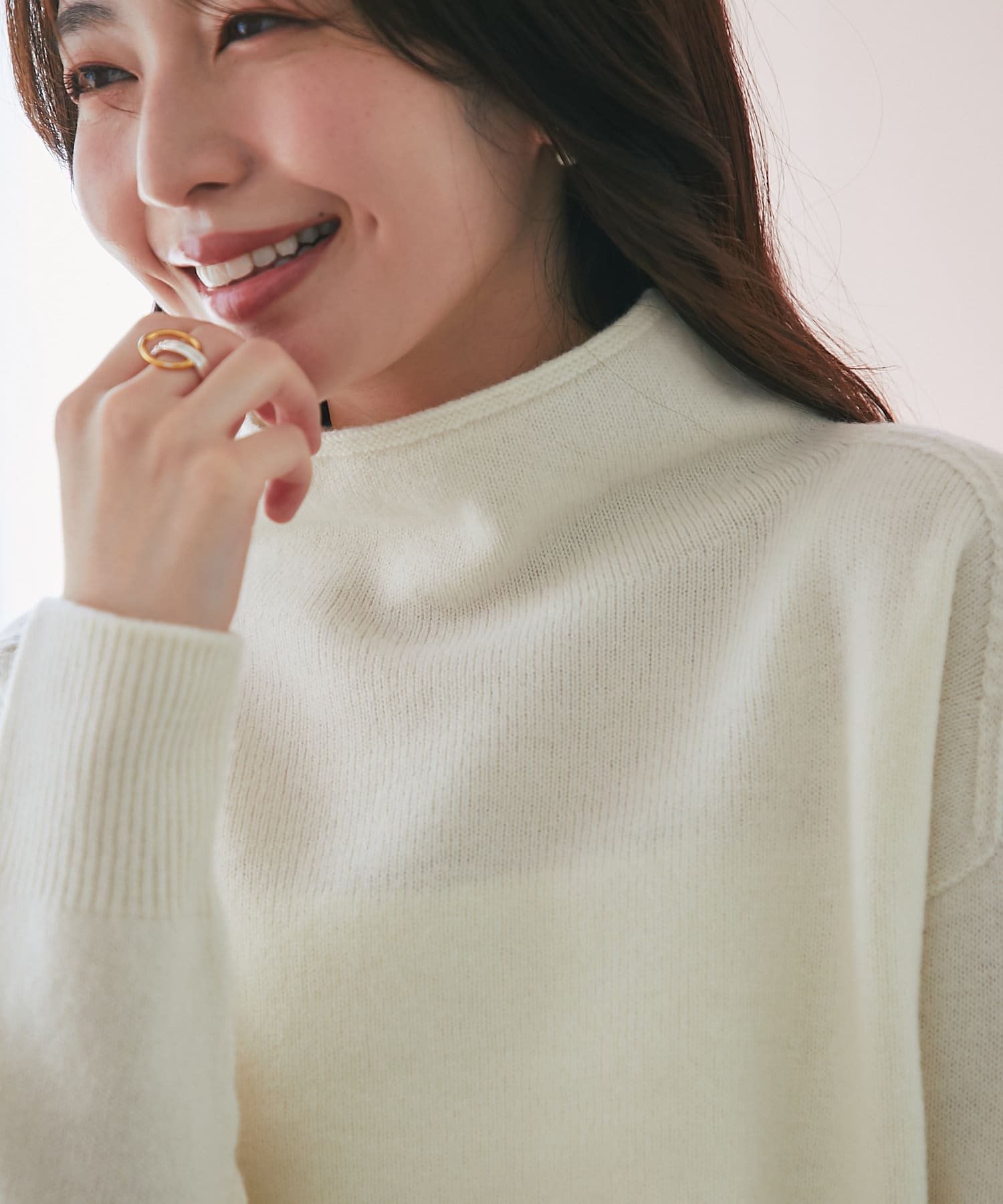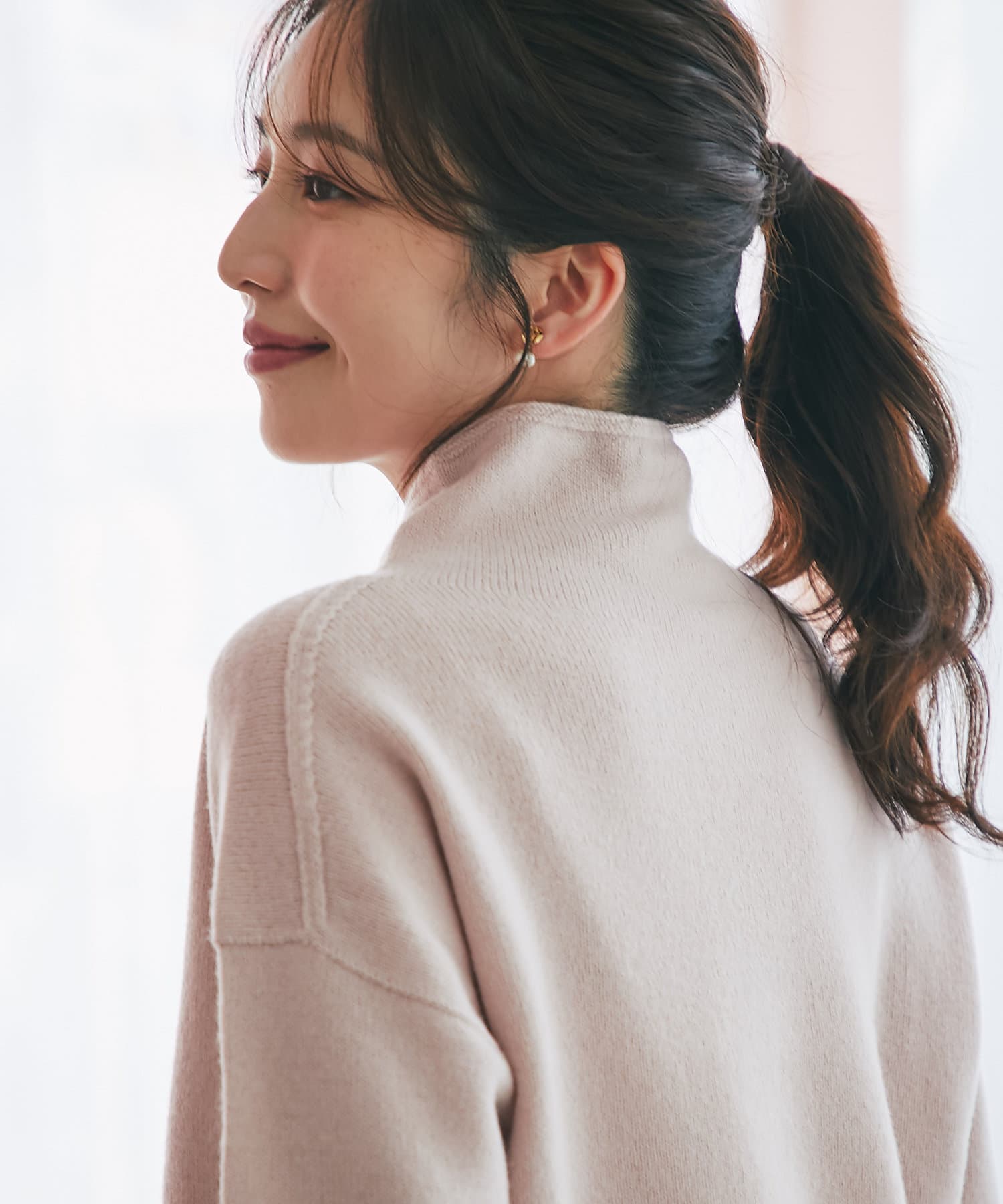 程よい開きのボトルネックが上品でメイクが擦れにくいニット