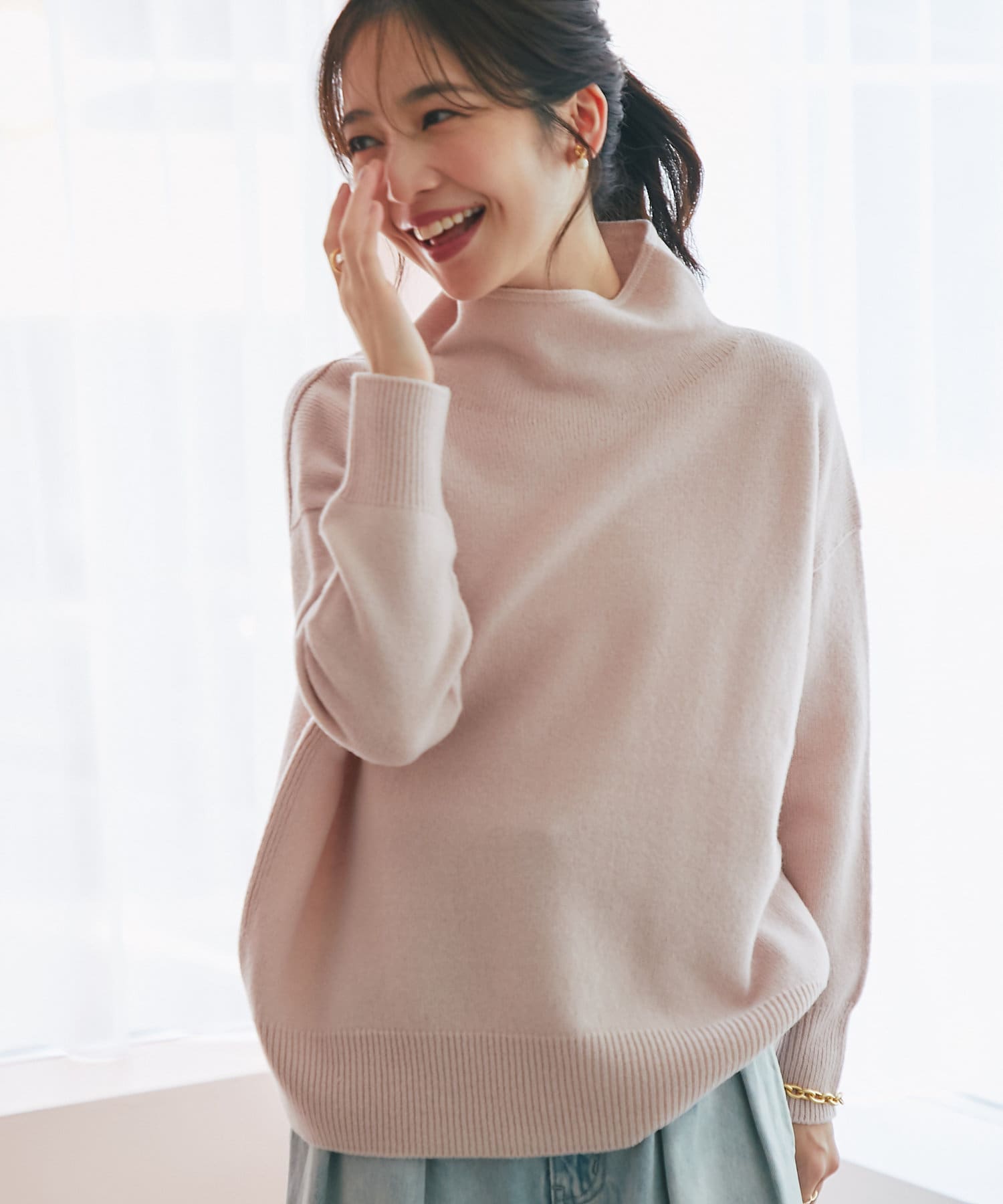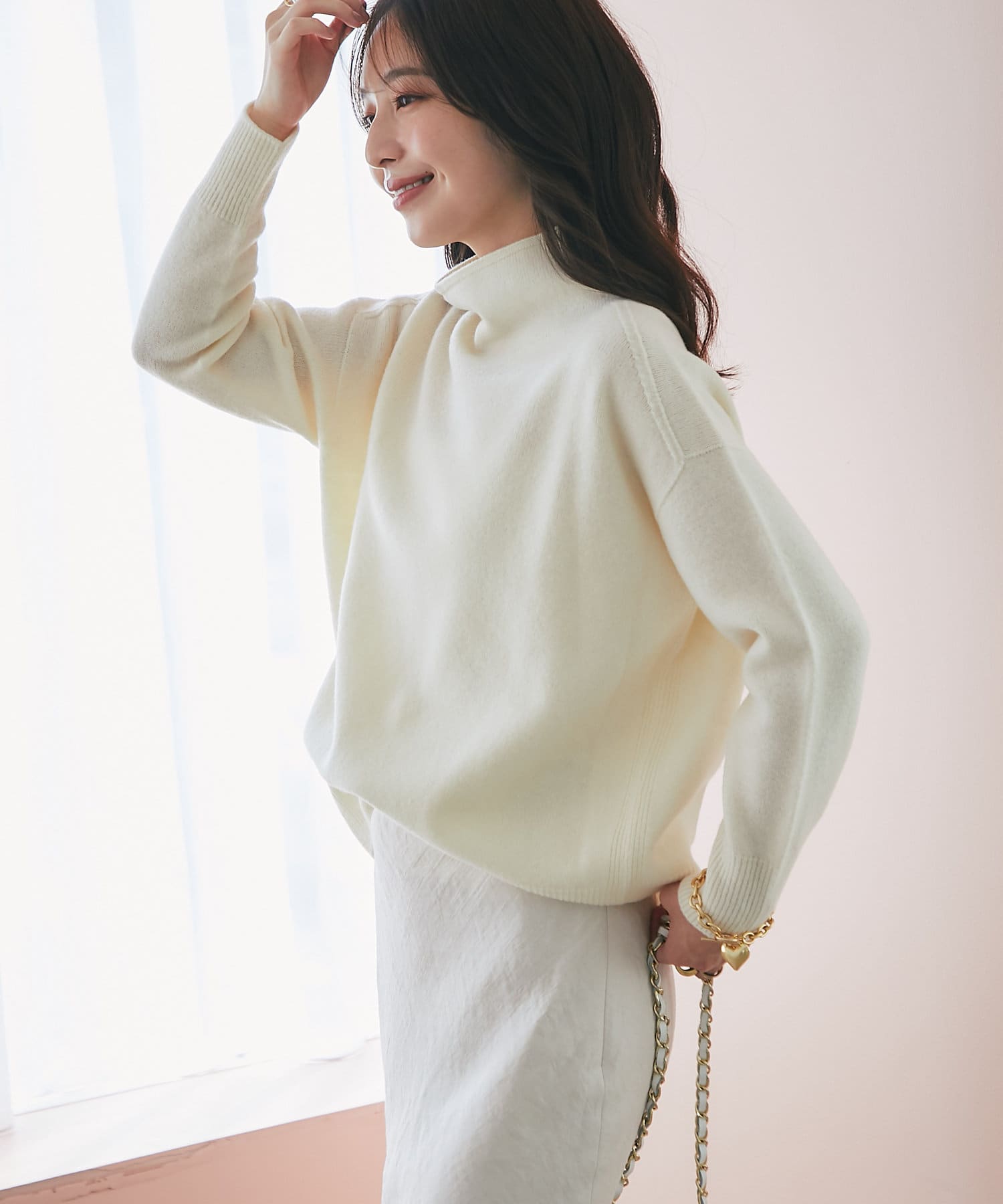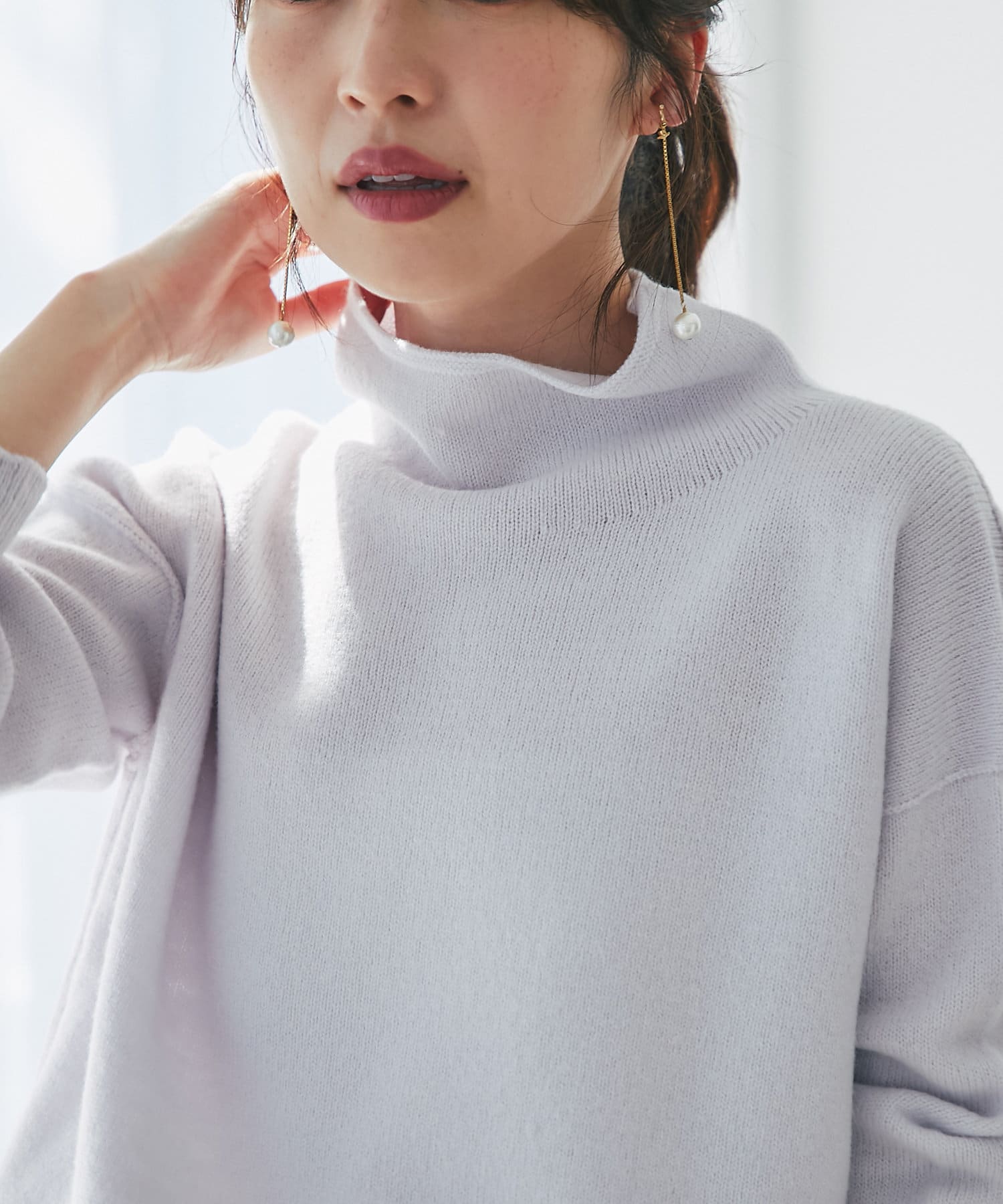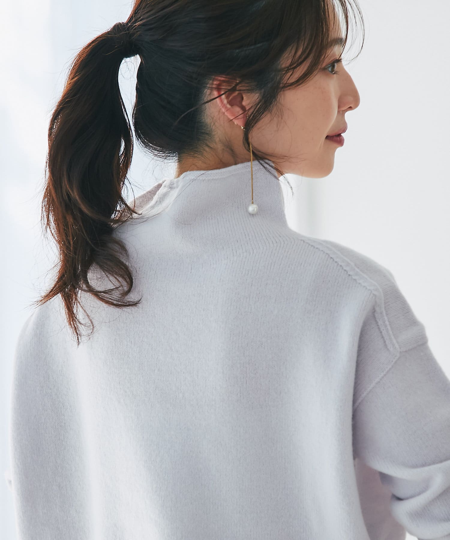 程よい開きのボトルネックが上品でメイクが擦れにくいニット