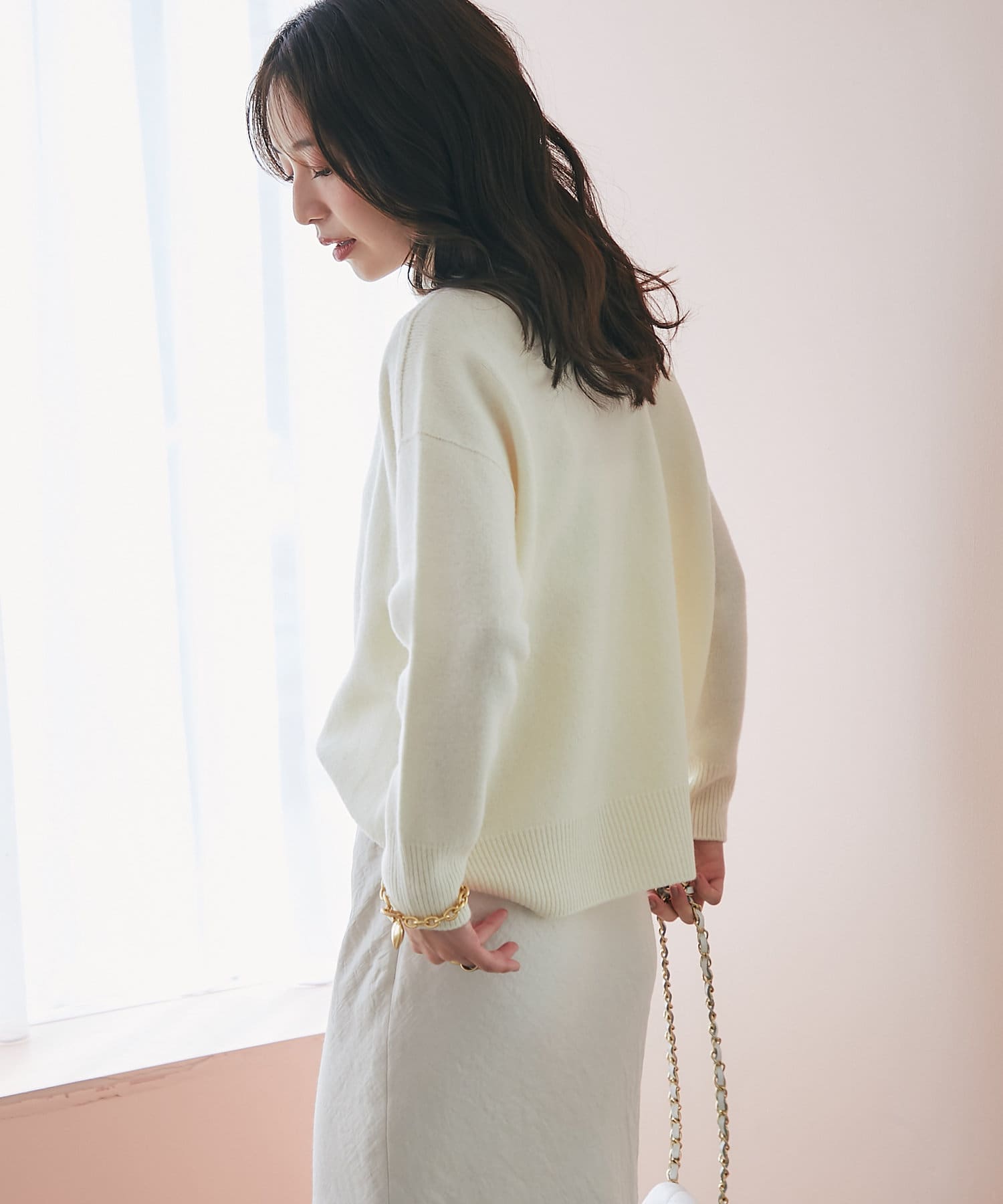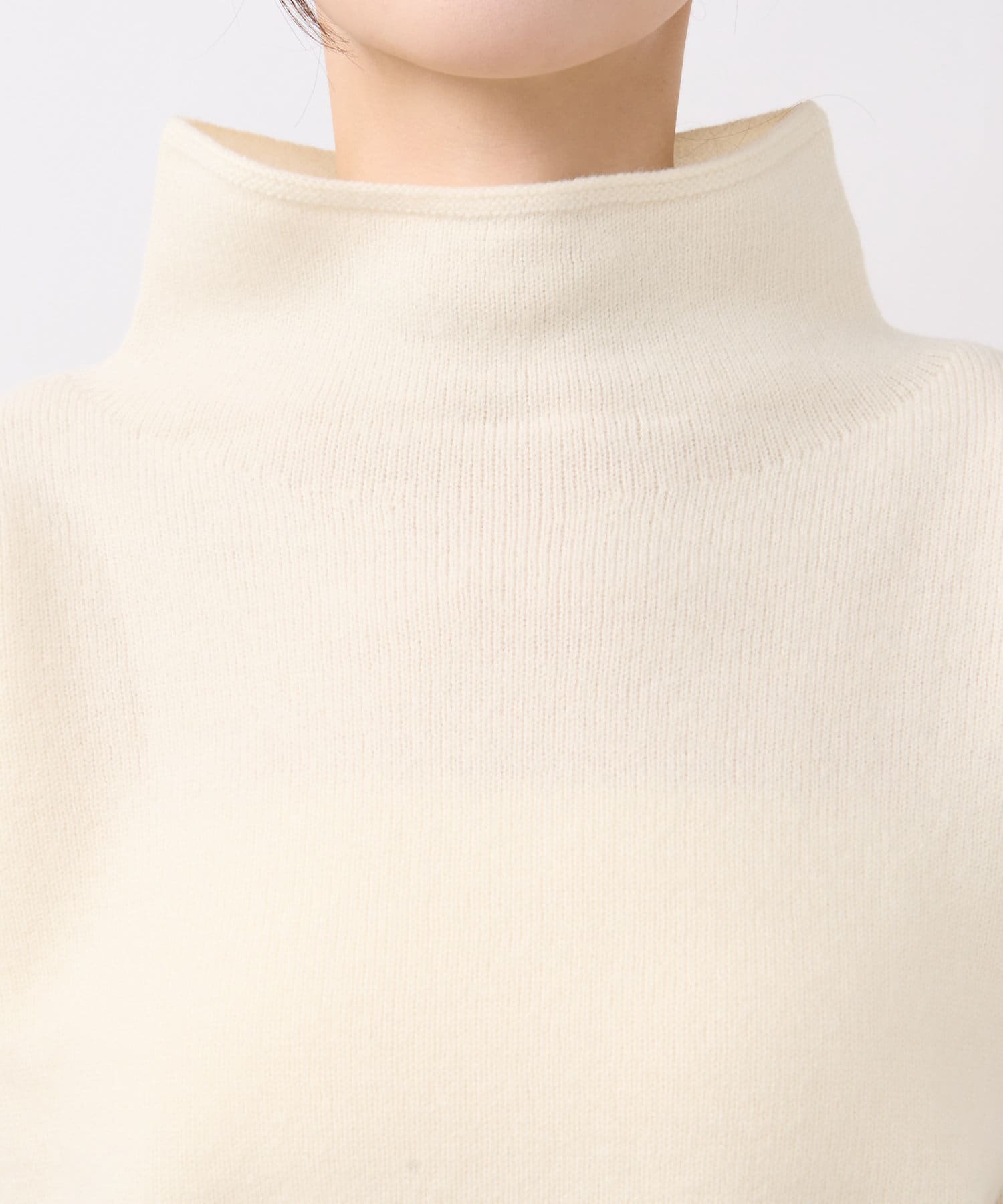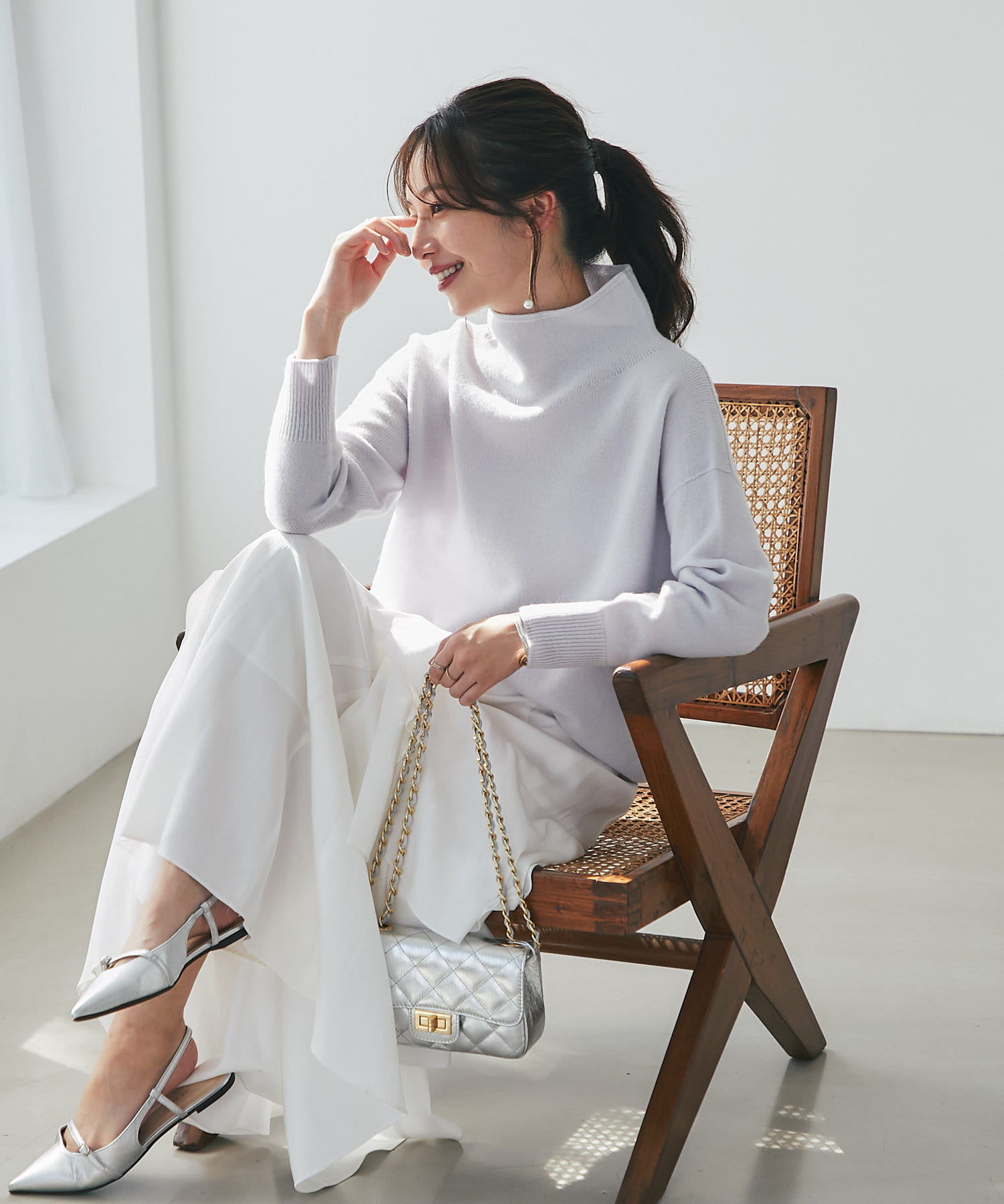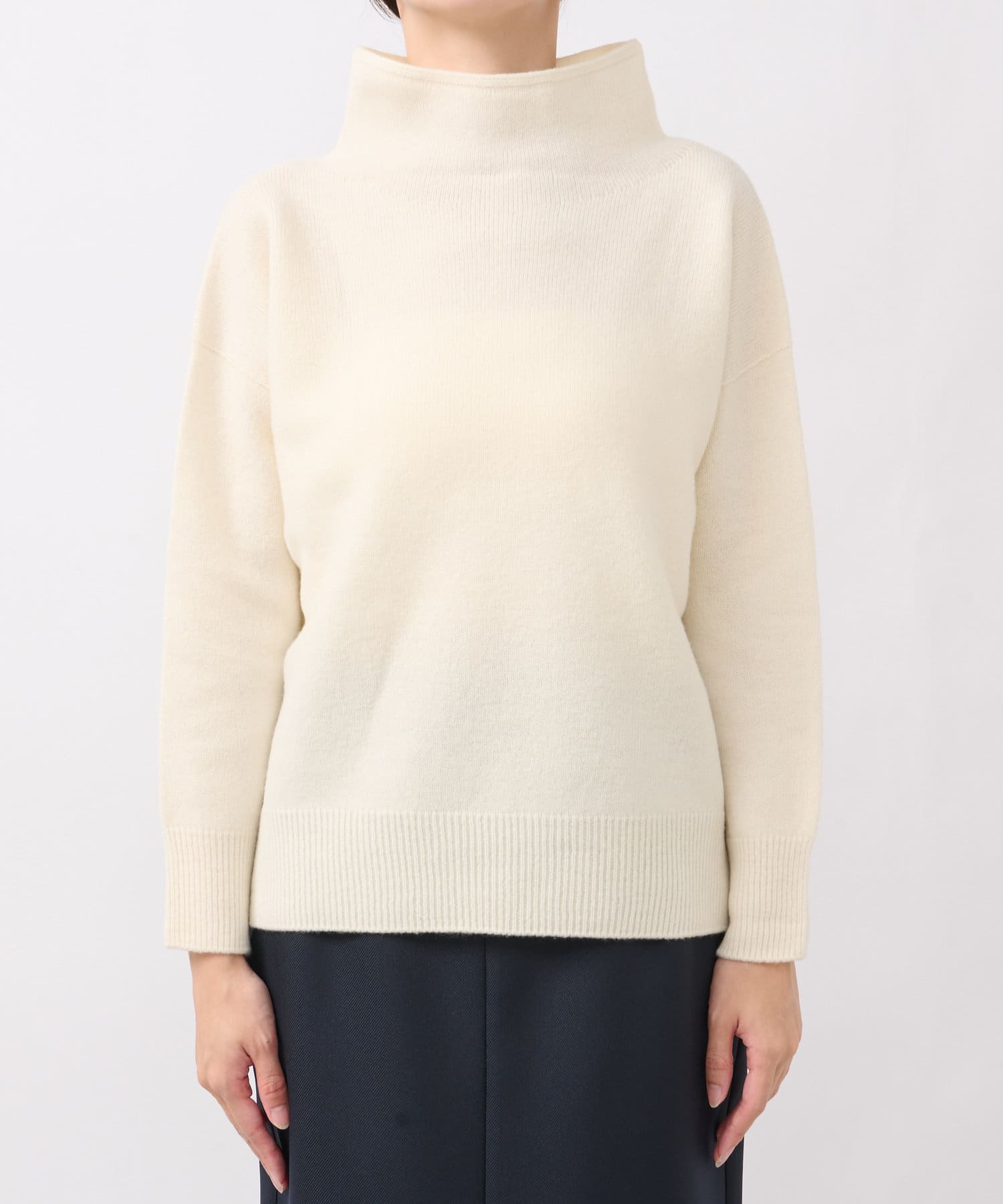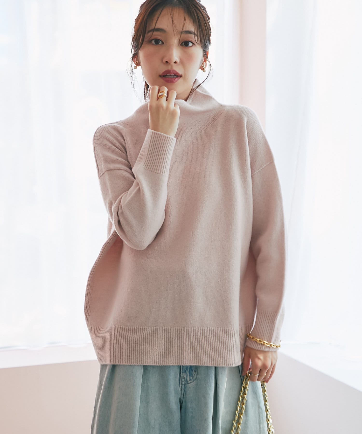 程よい開きのボトルネックが上品でメイクが擦れにくいニット