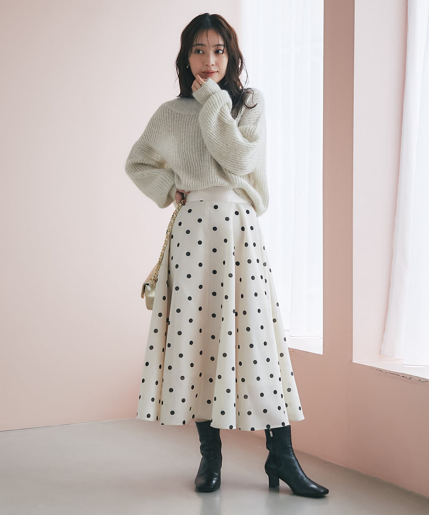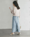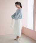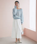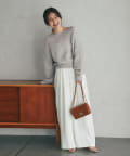 ゆるっとしたデザイン生かし、落ち感のあるスカートと合わせるのがおすすめ。