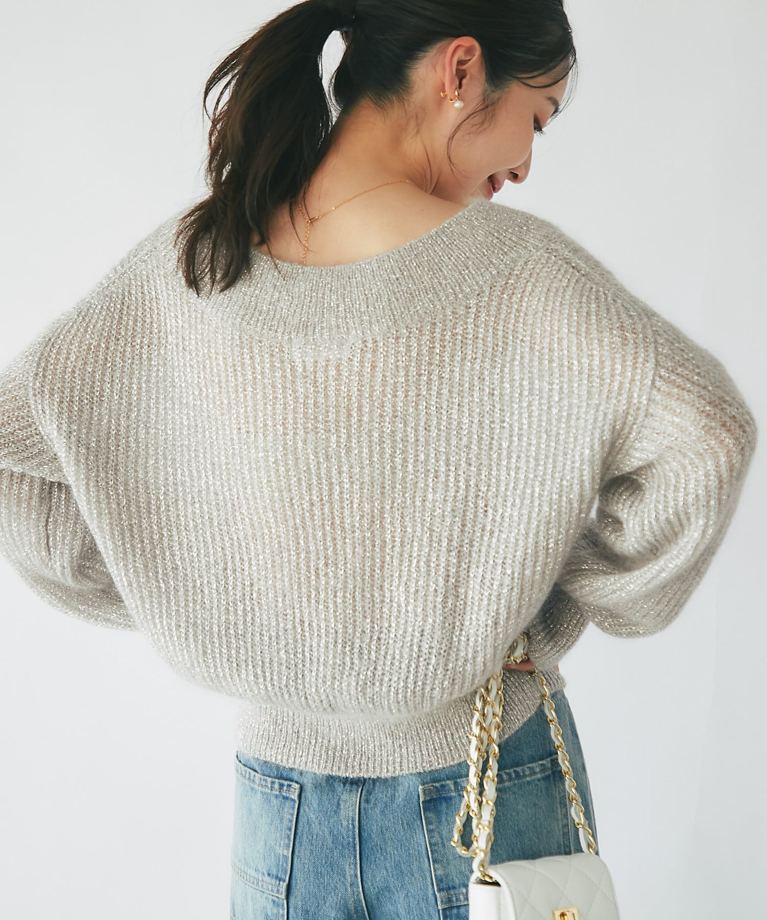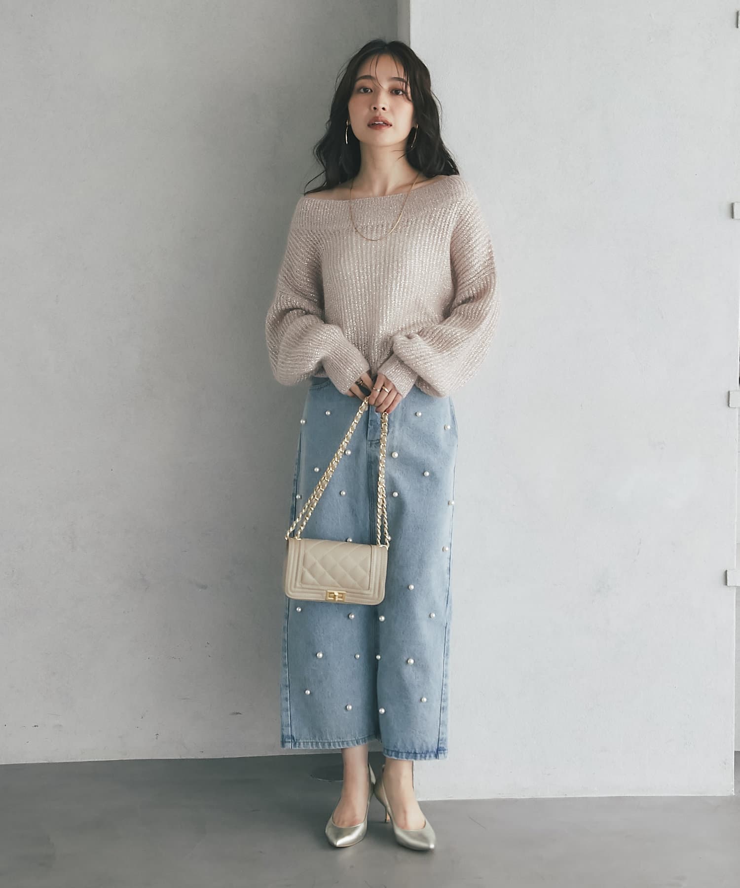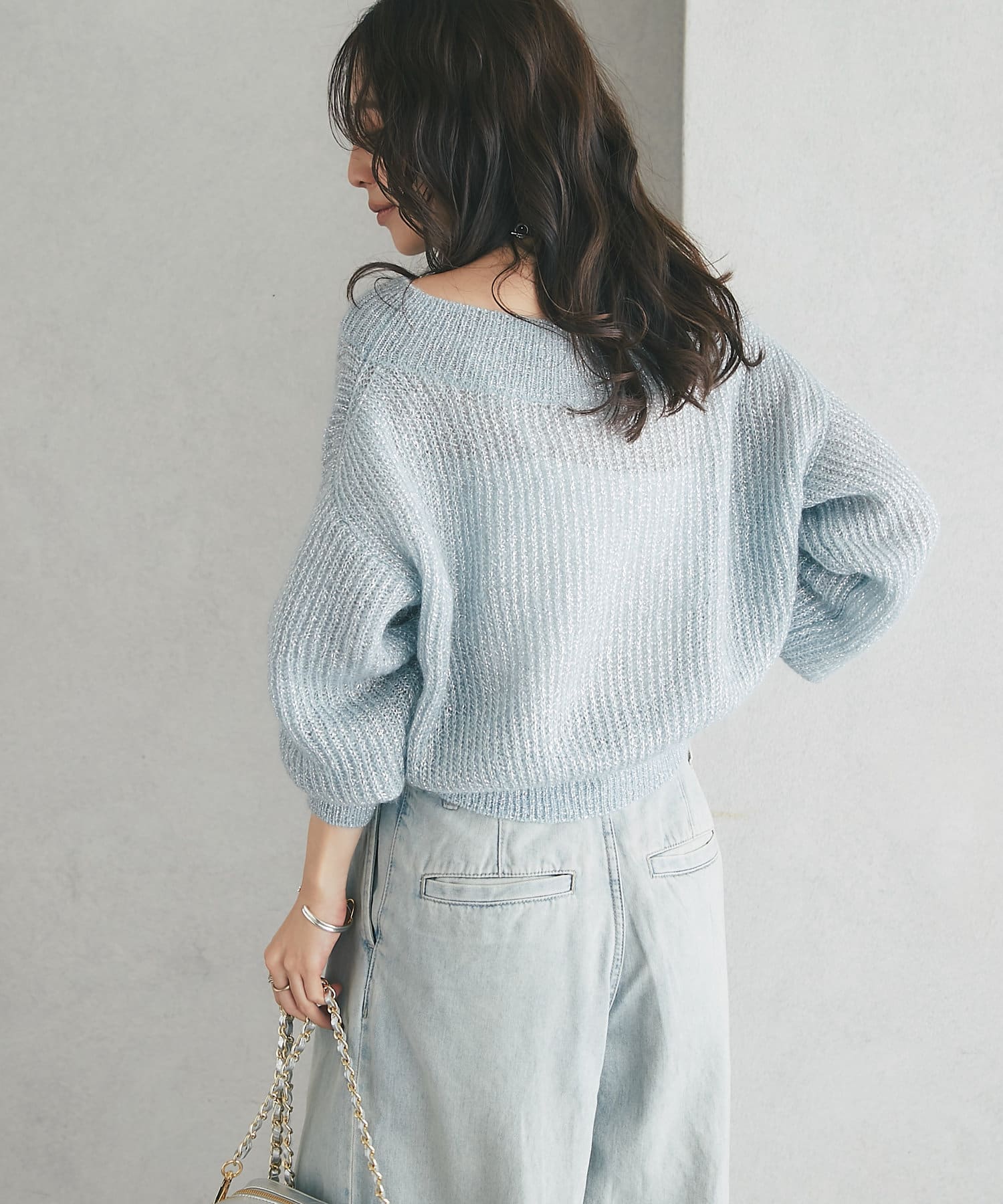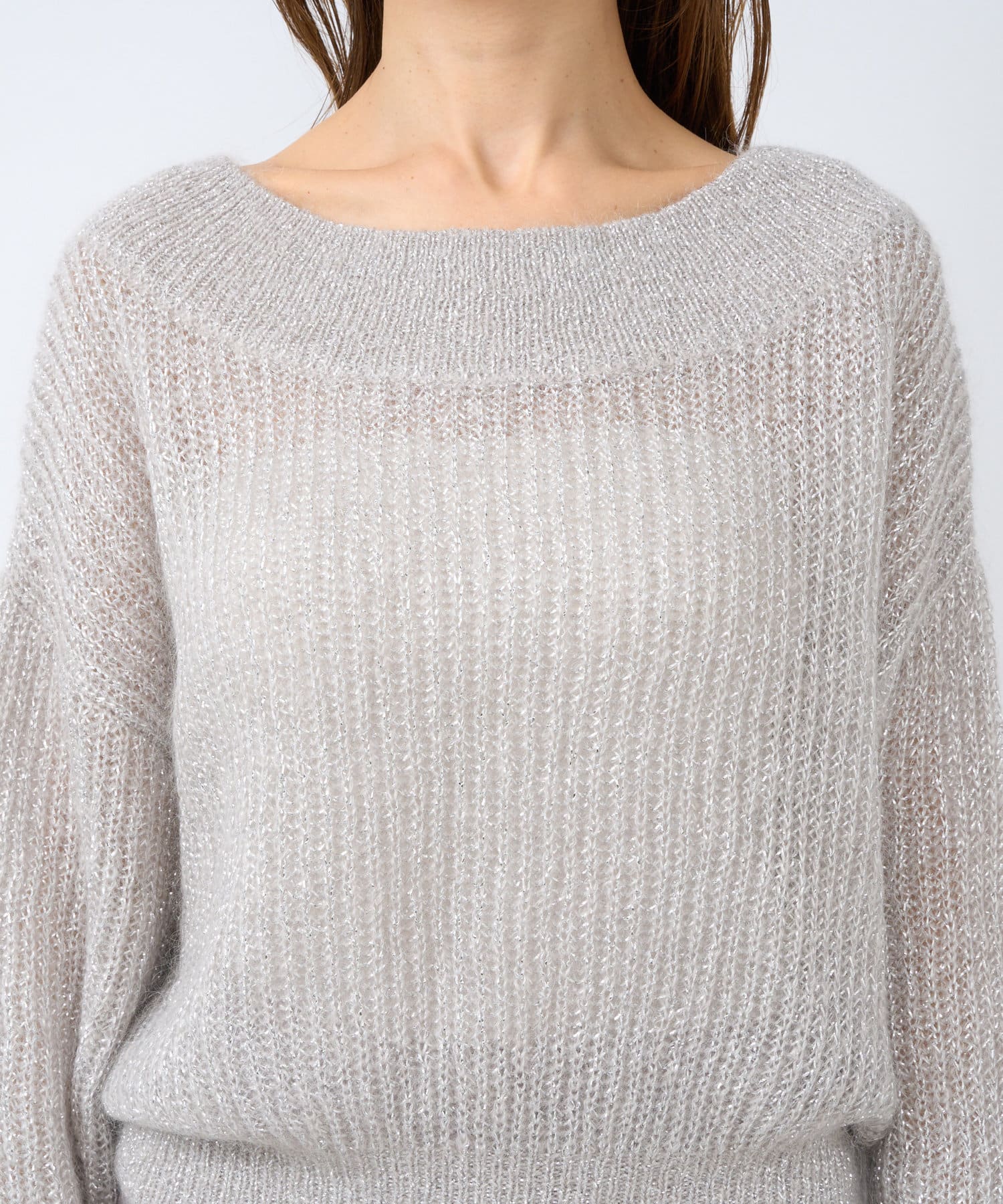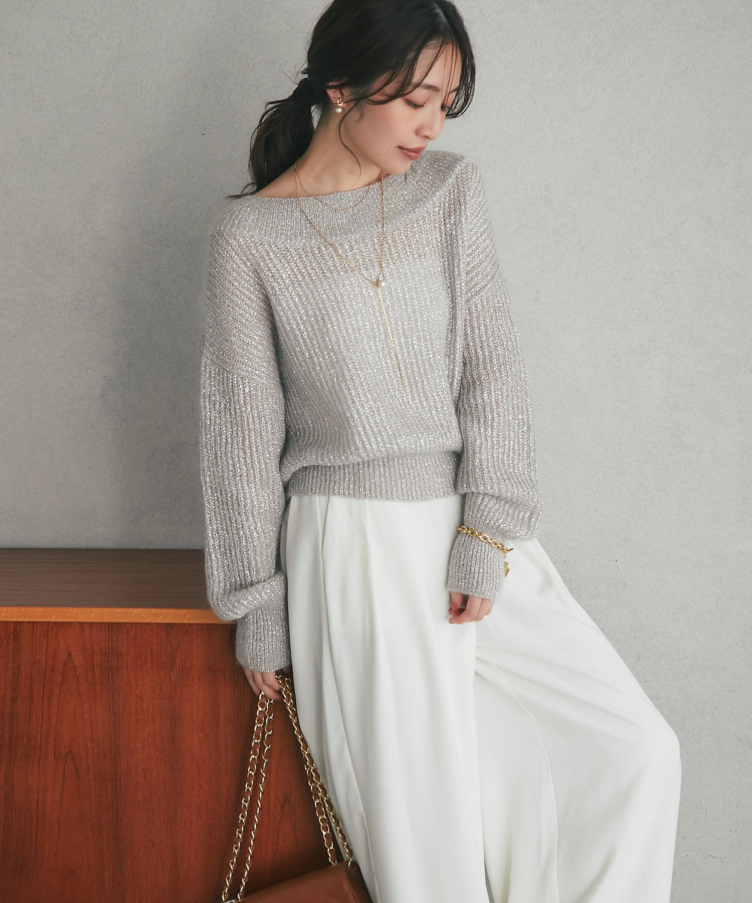 上品ラメとオフショルで女子力UPが叶うモヘアニット