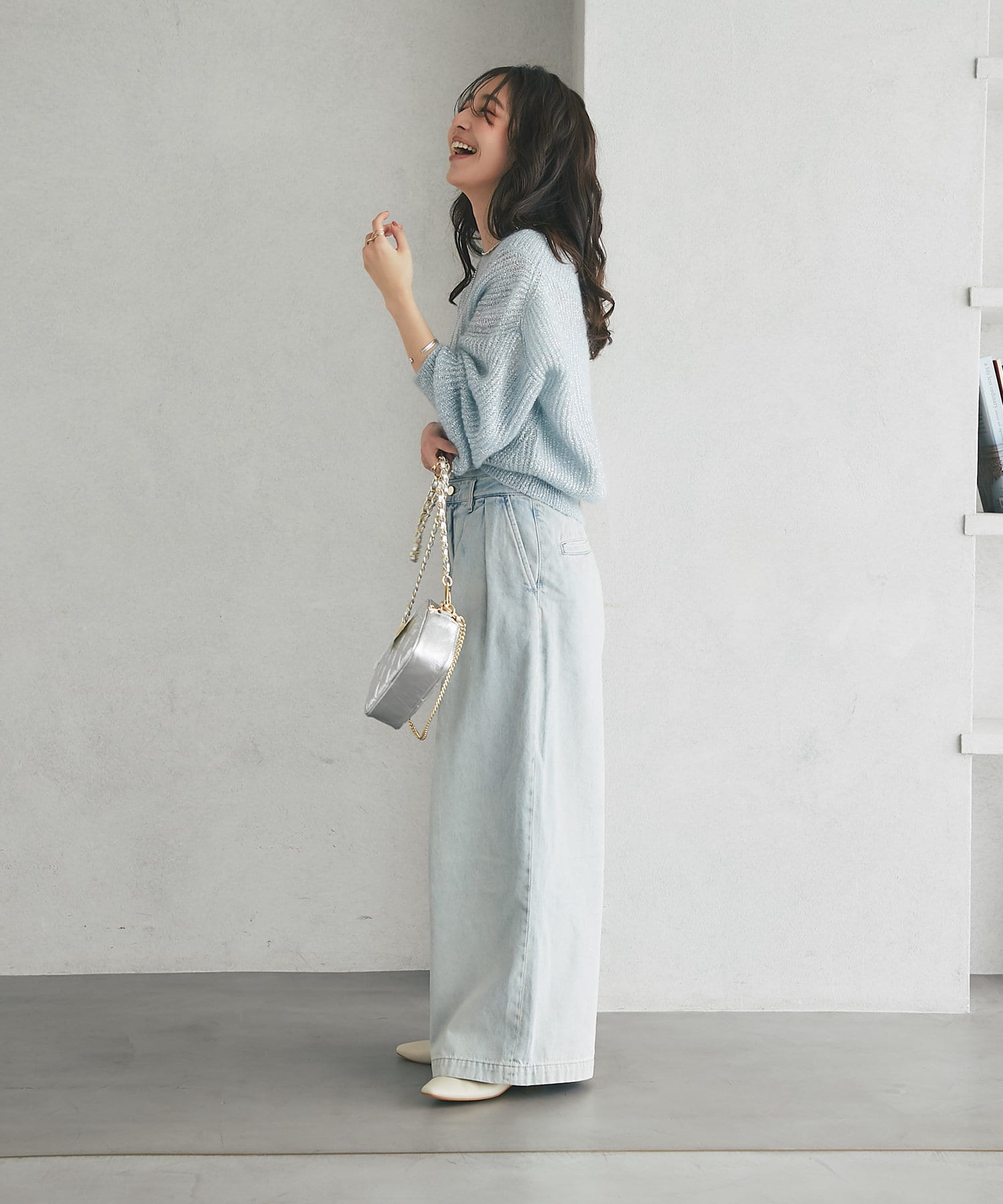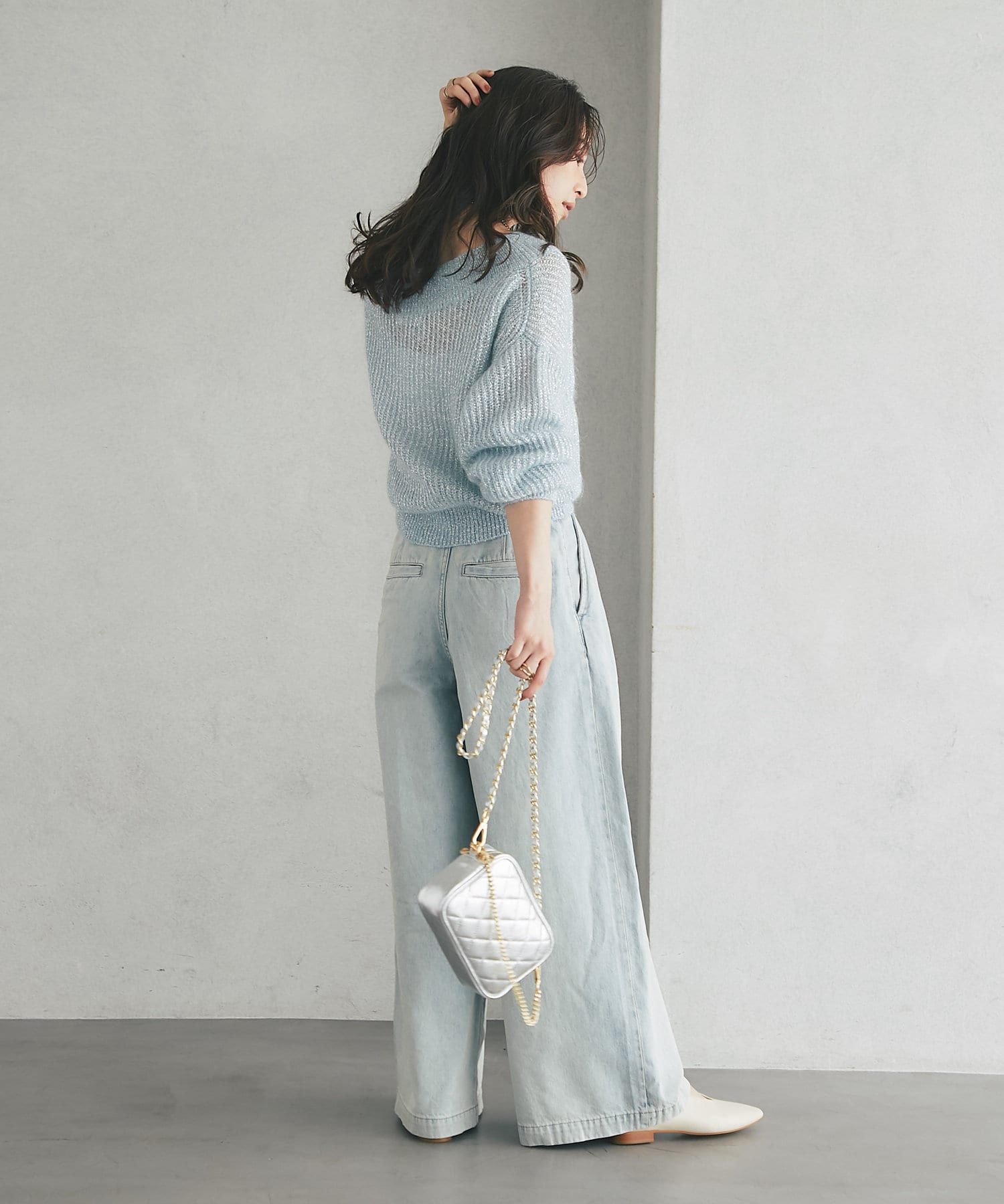抜け感あるスタイリングで大人の雰囲気を演出。