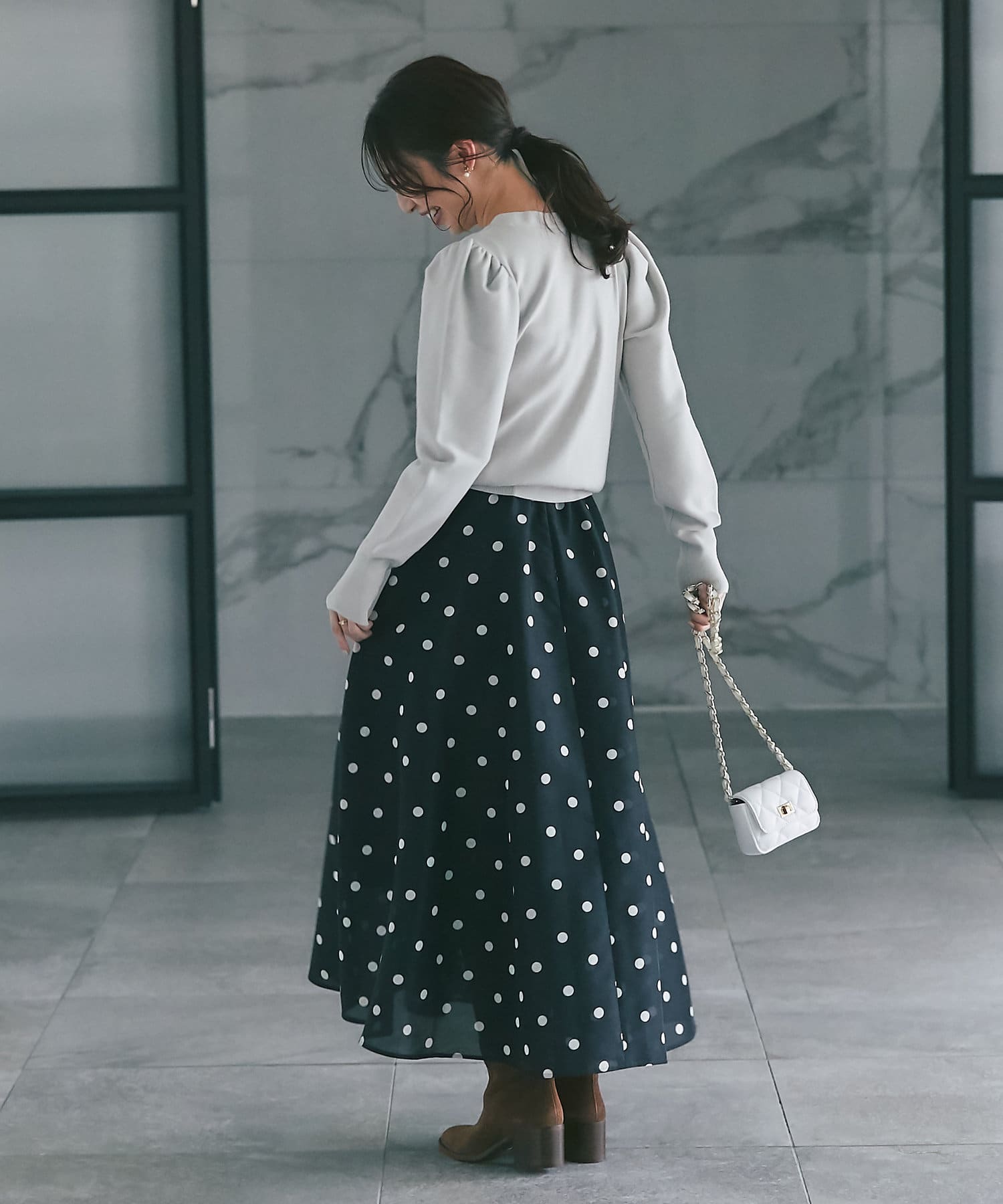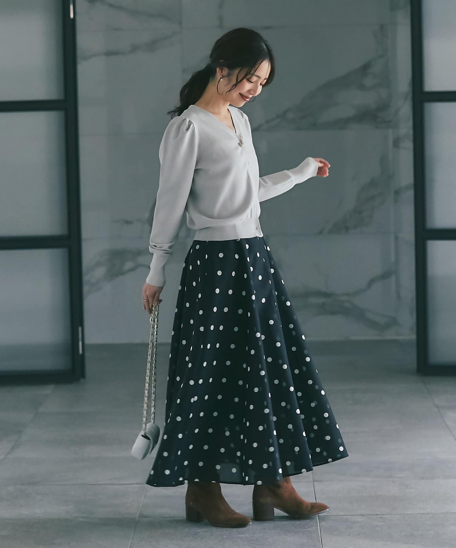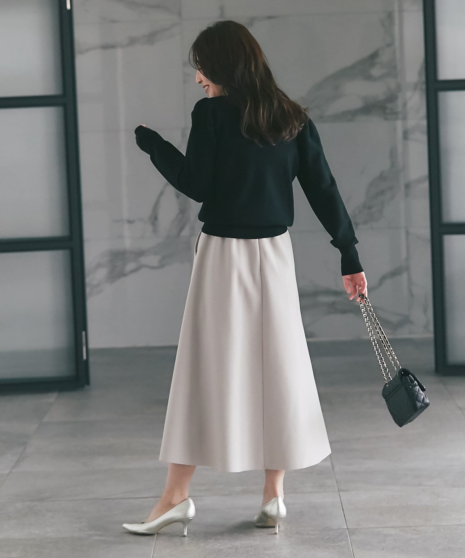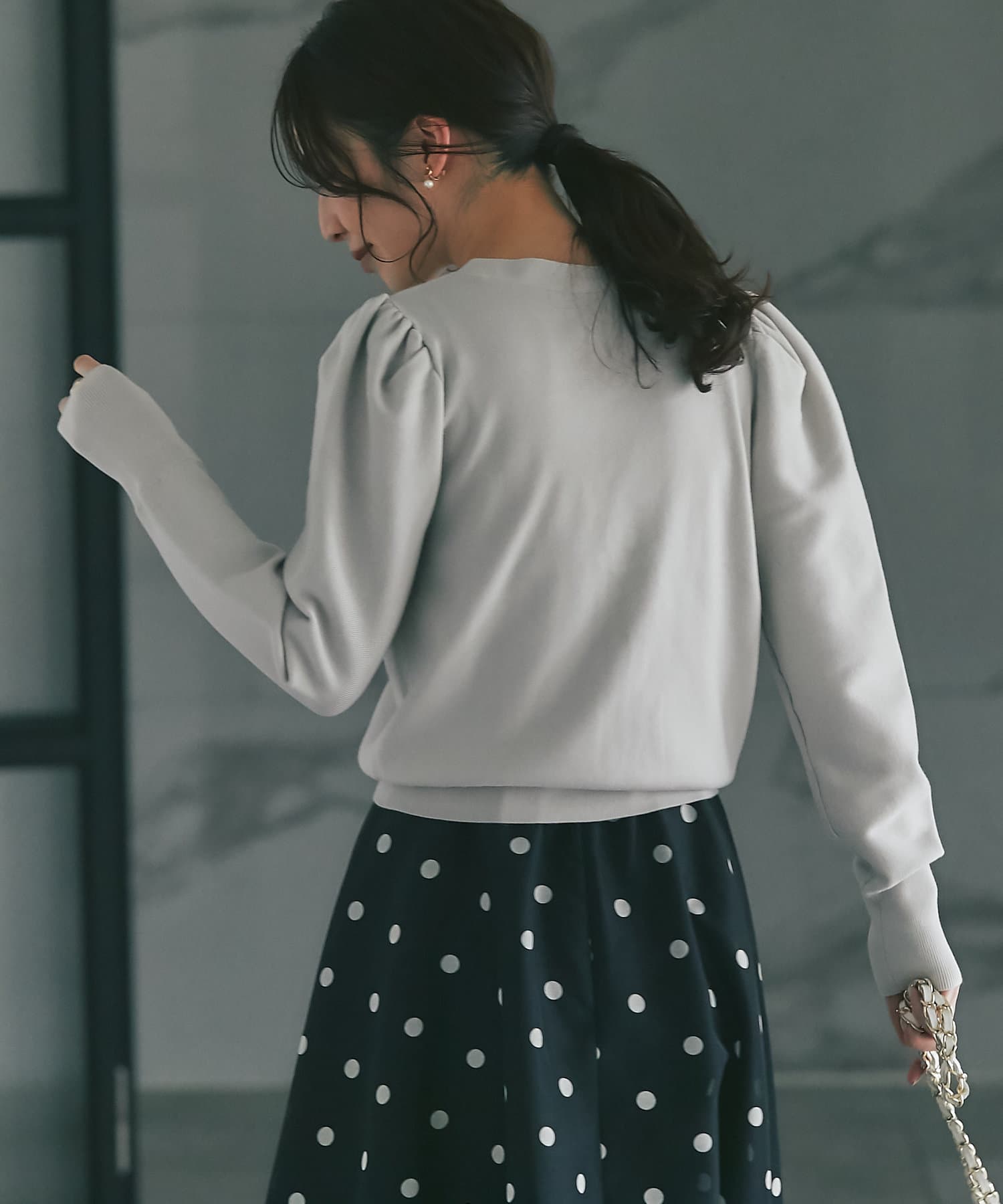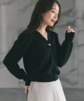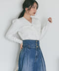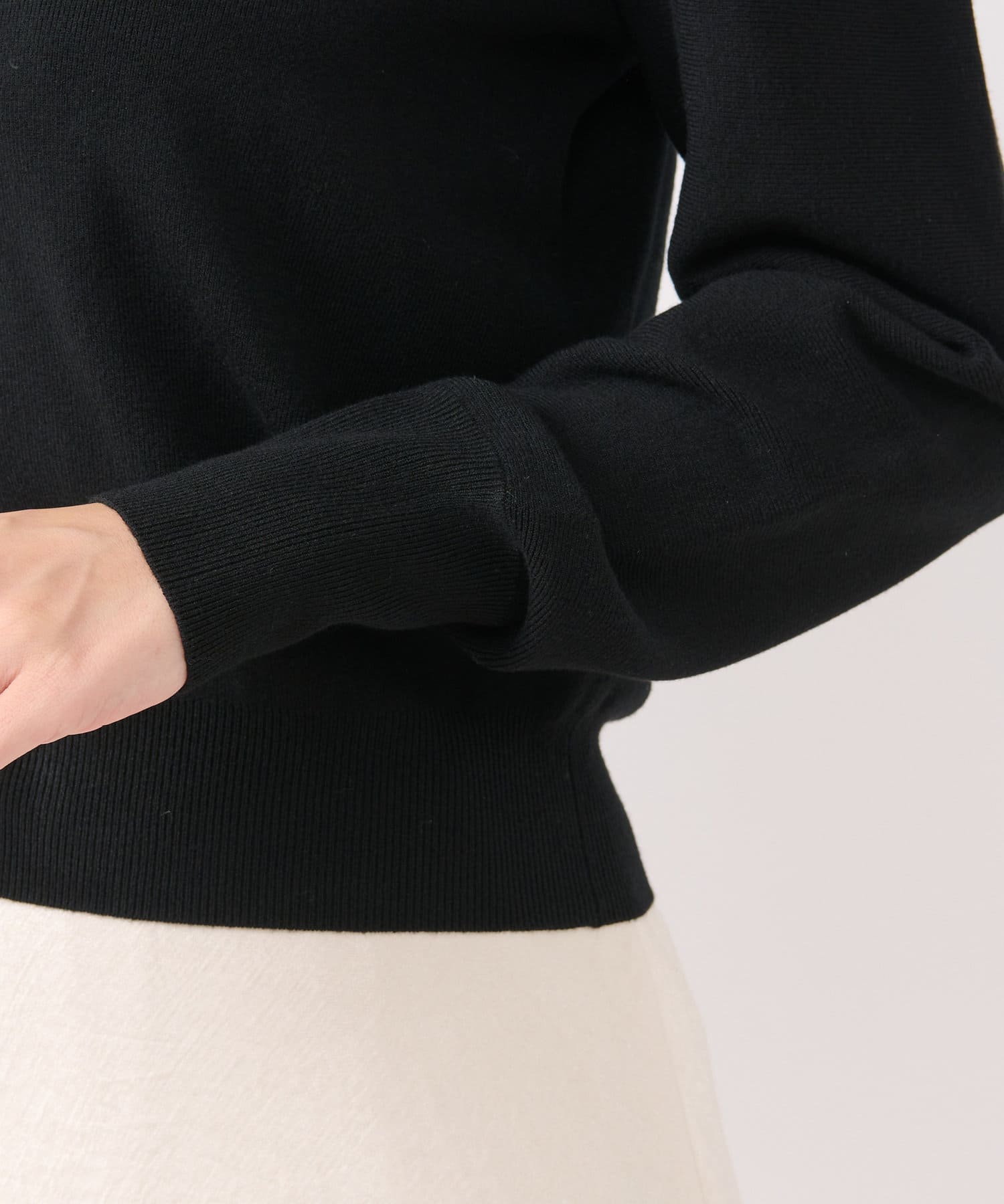 柔らかい編地にコンパクトなサイズ感で程よくフィットし、女性らしい1枚。