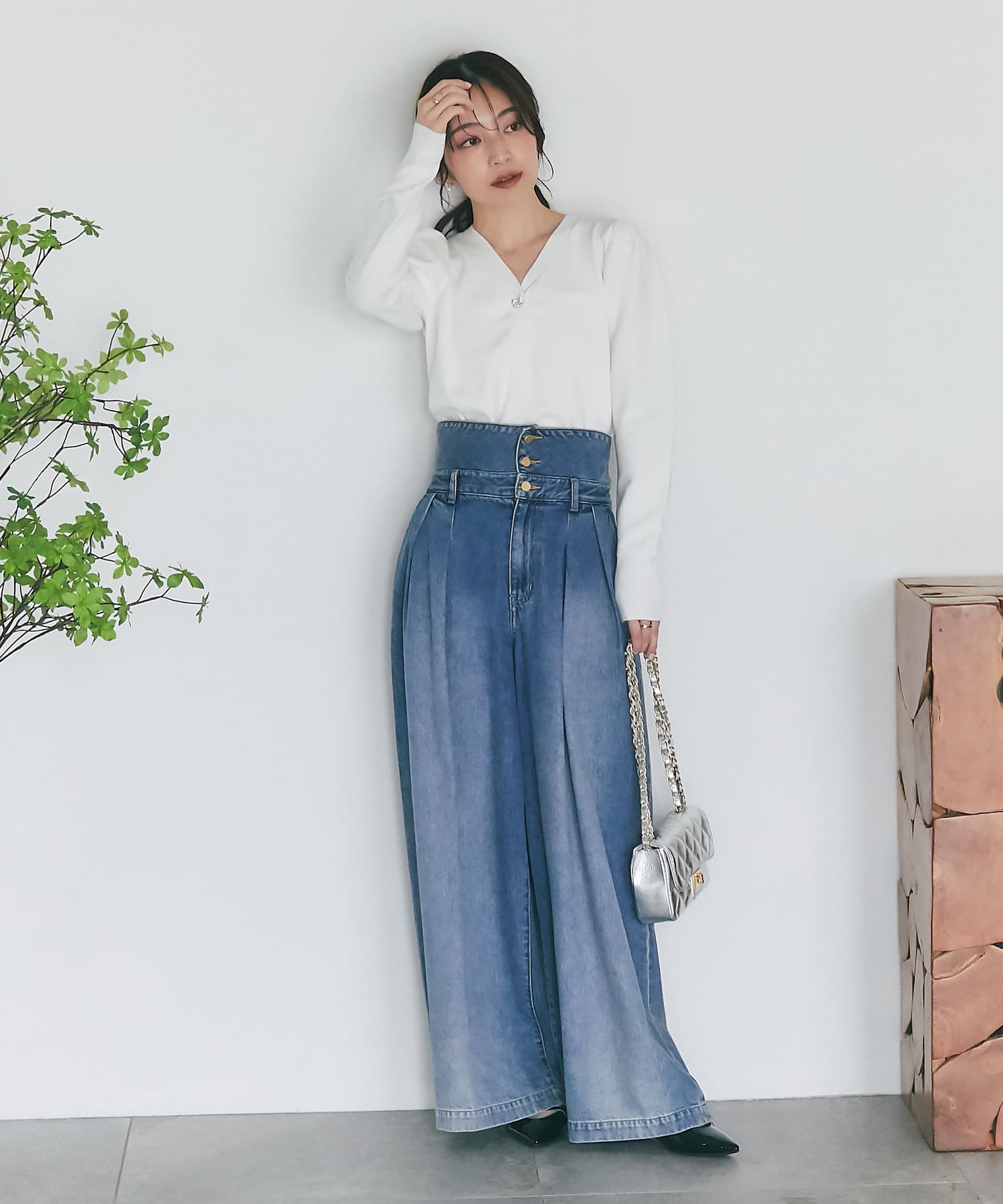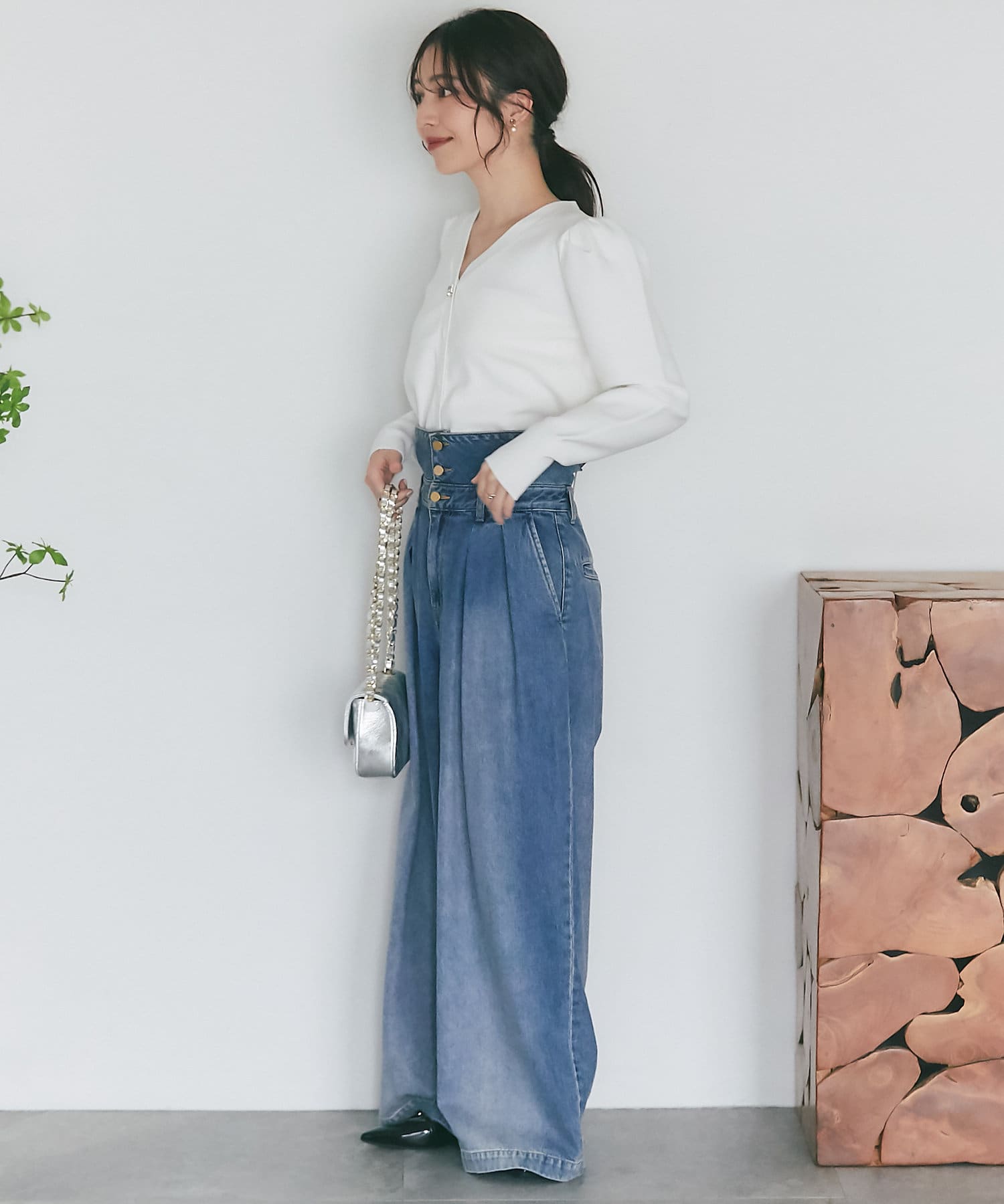 デニム合わせでカジュアルな着こなしも楽しめます。