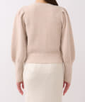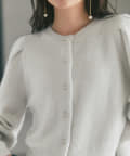 パール釦と袖山にタックの入ったボリュームスリーブがポイントで前を閉じて一枚着としての着用が華やかでお勧めです。