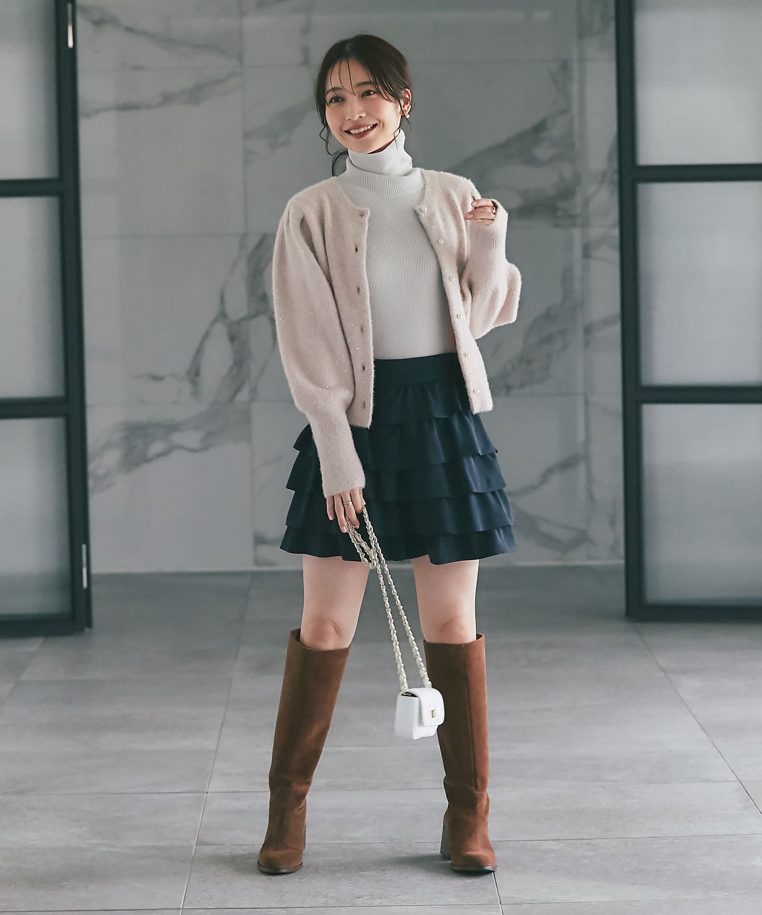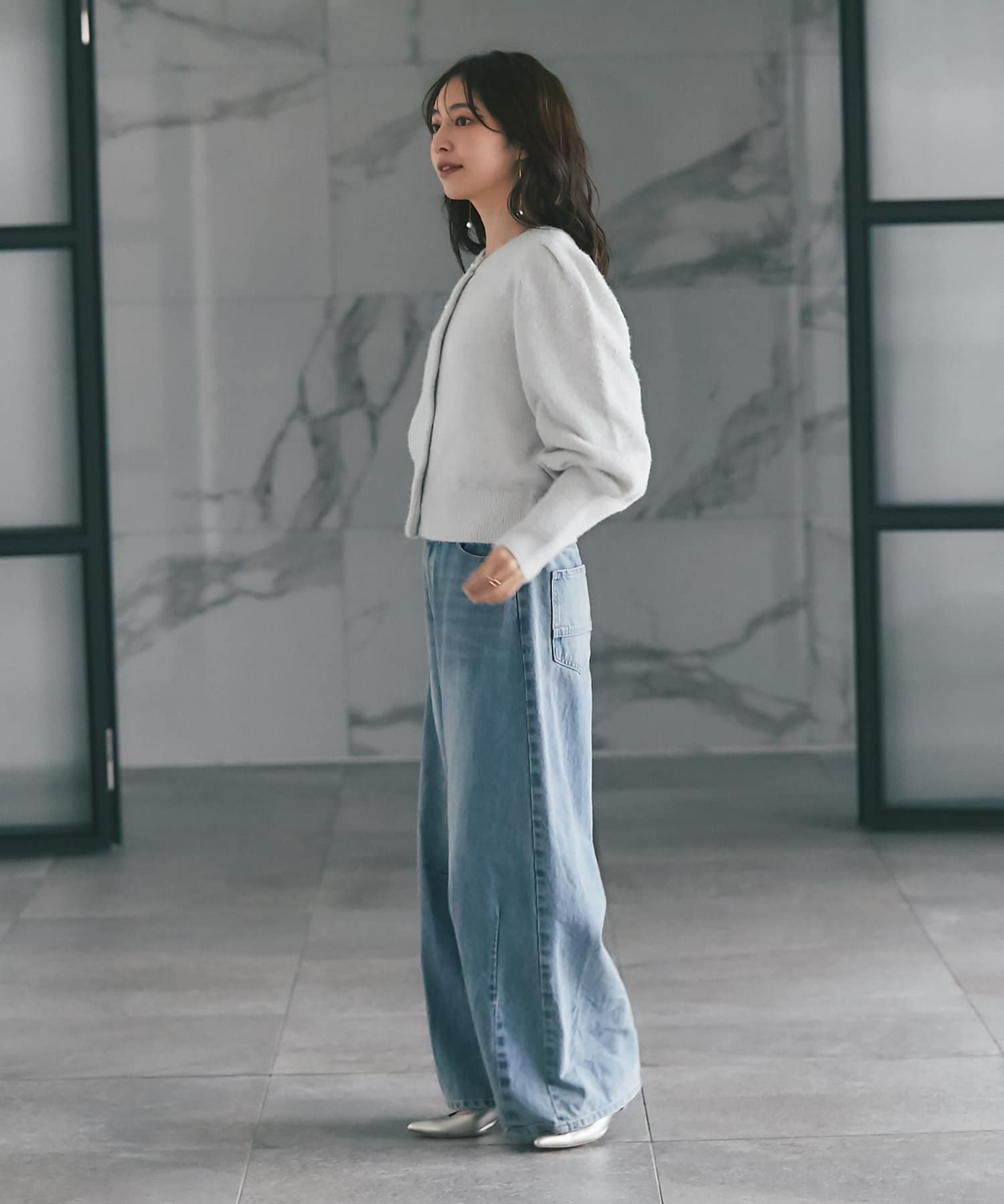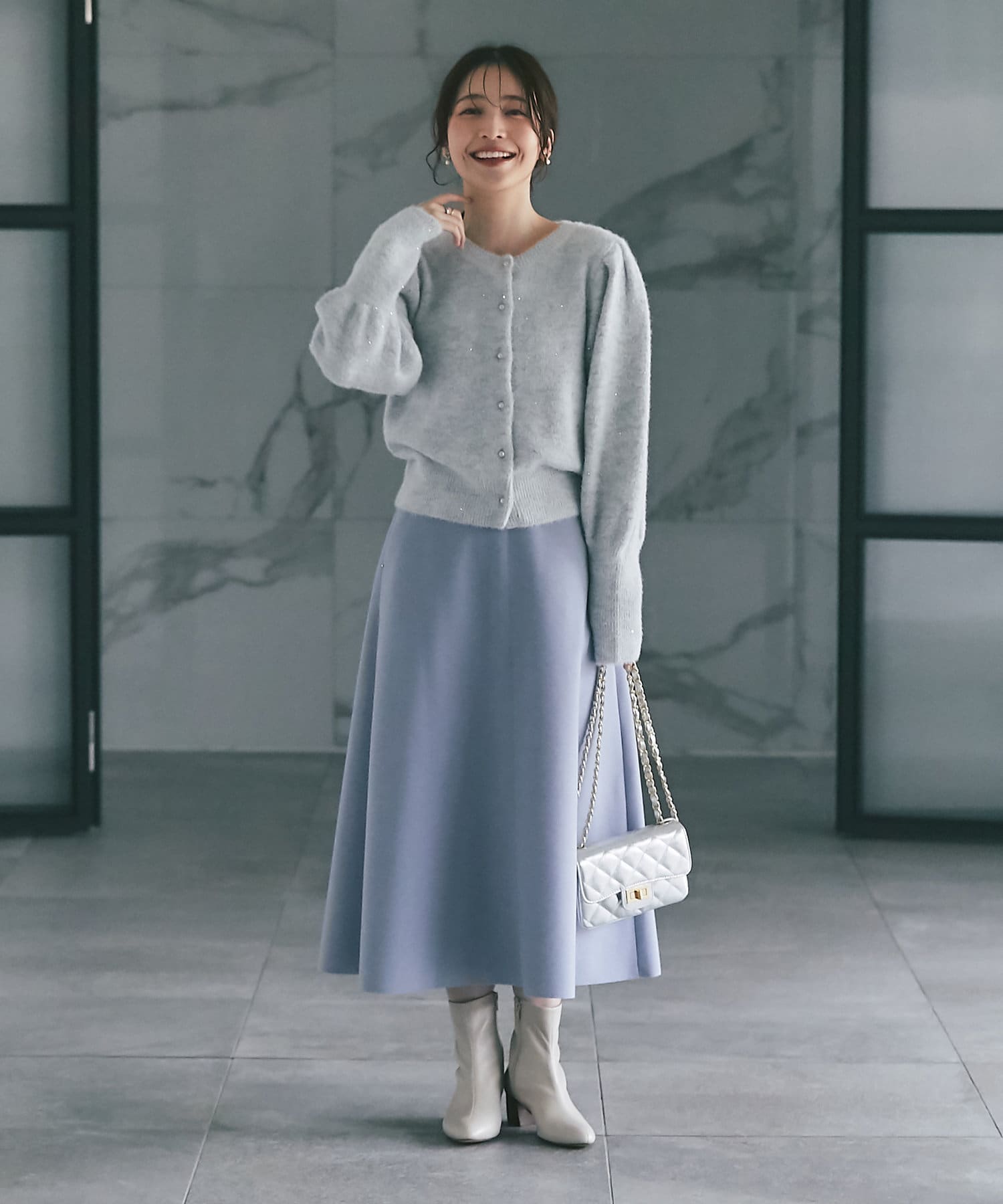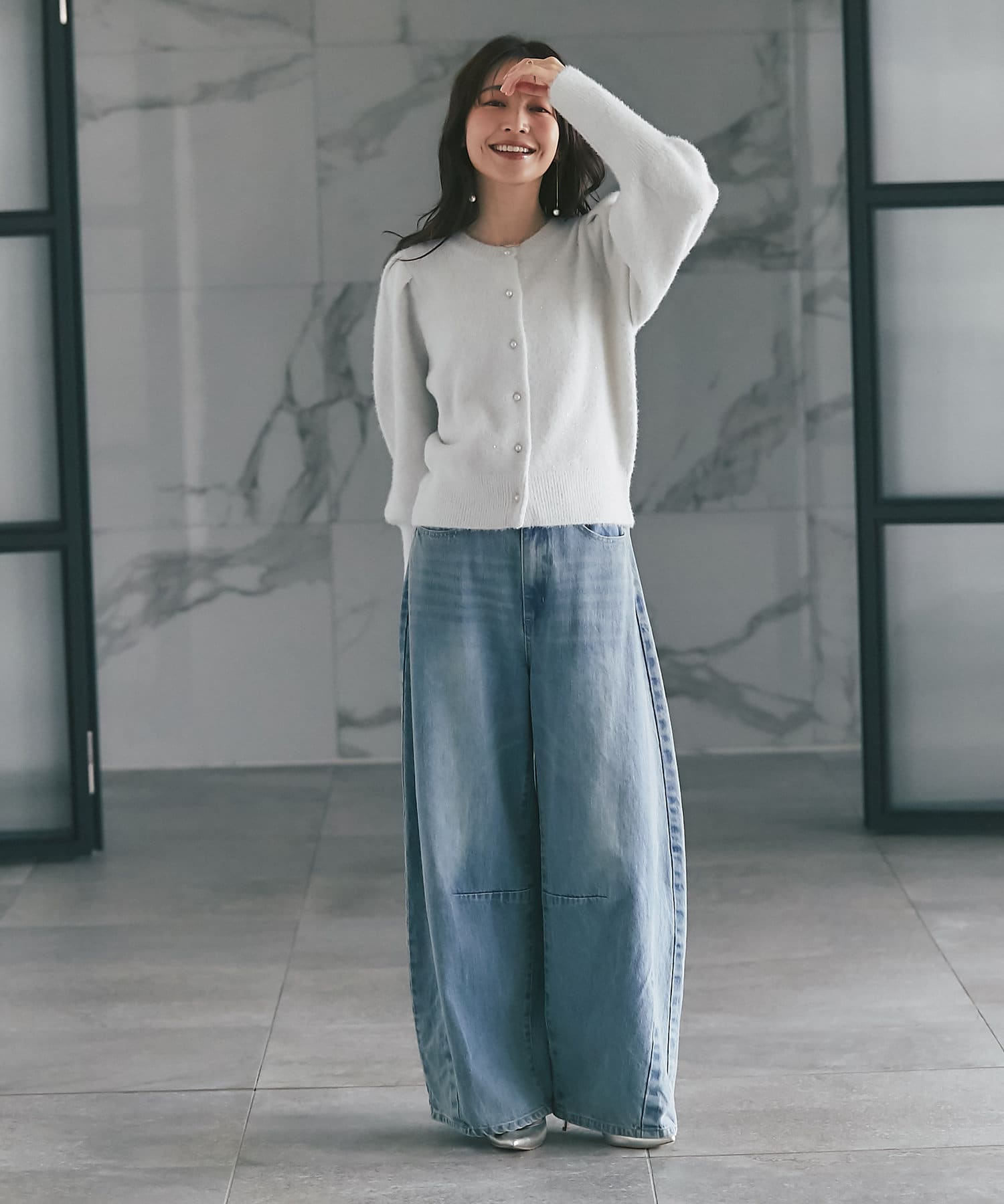パール釦が上品さも加えてくれて、一気に女子力UPできるアイテムです。