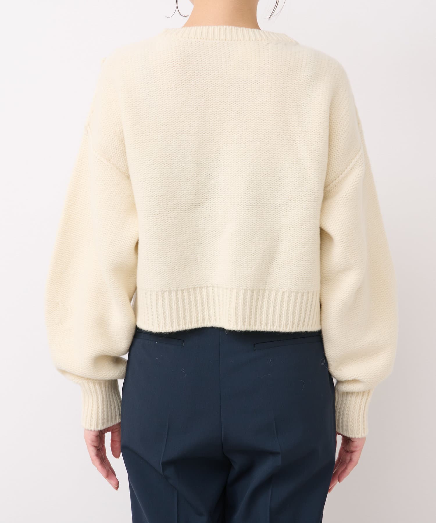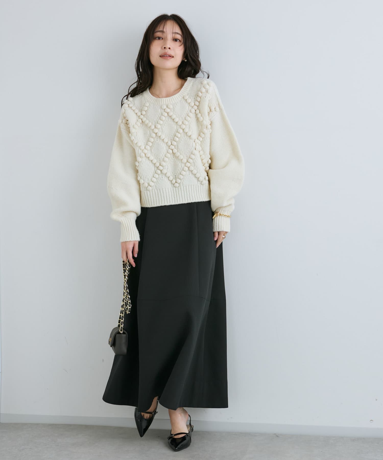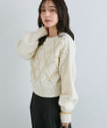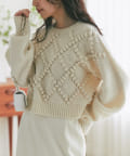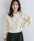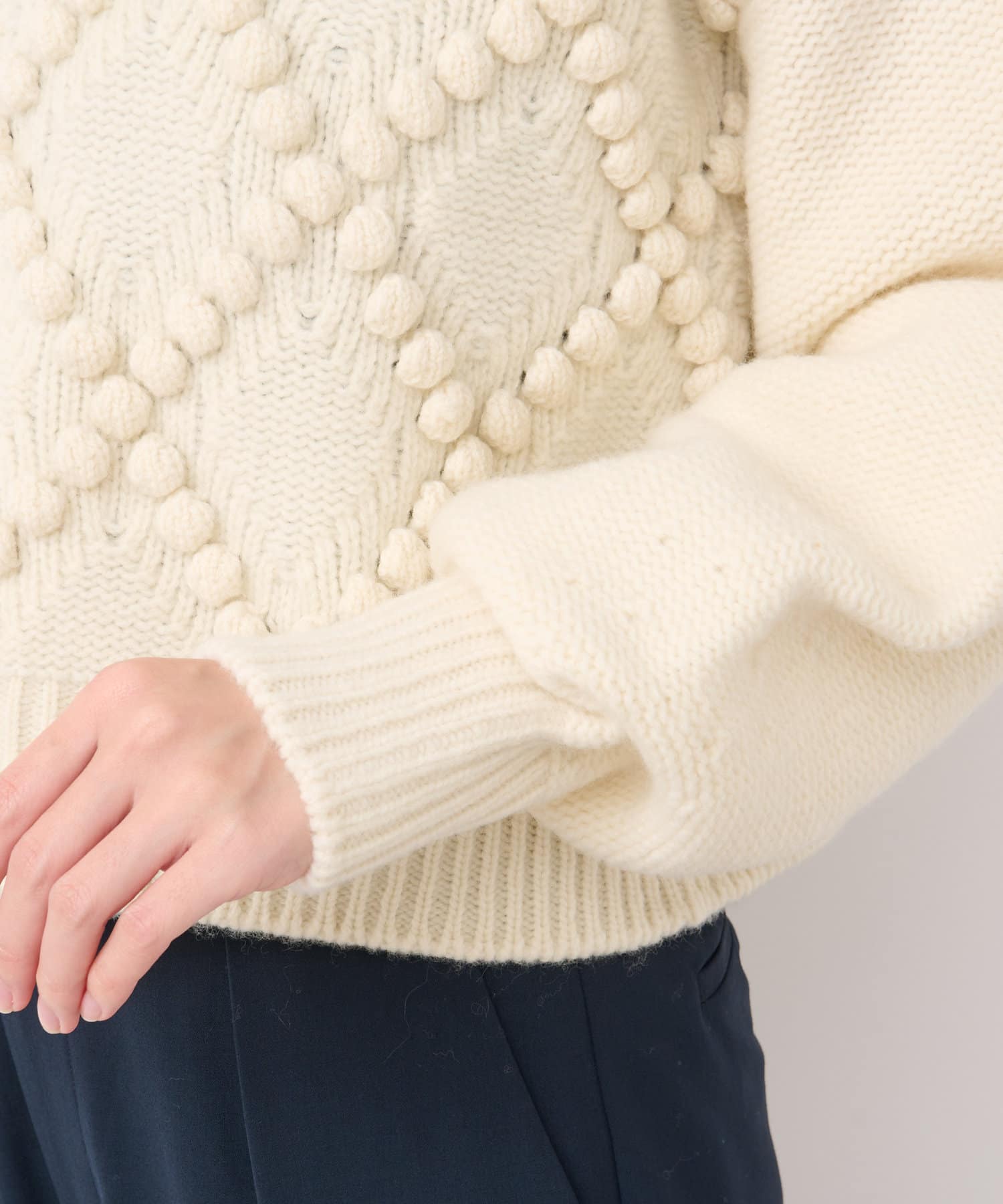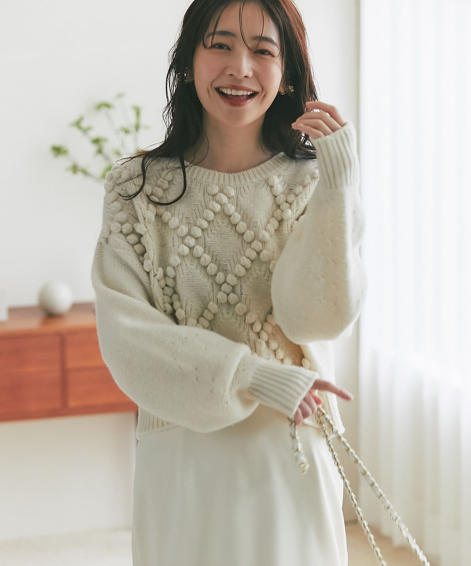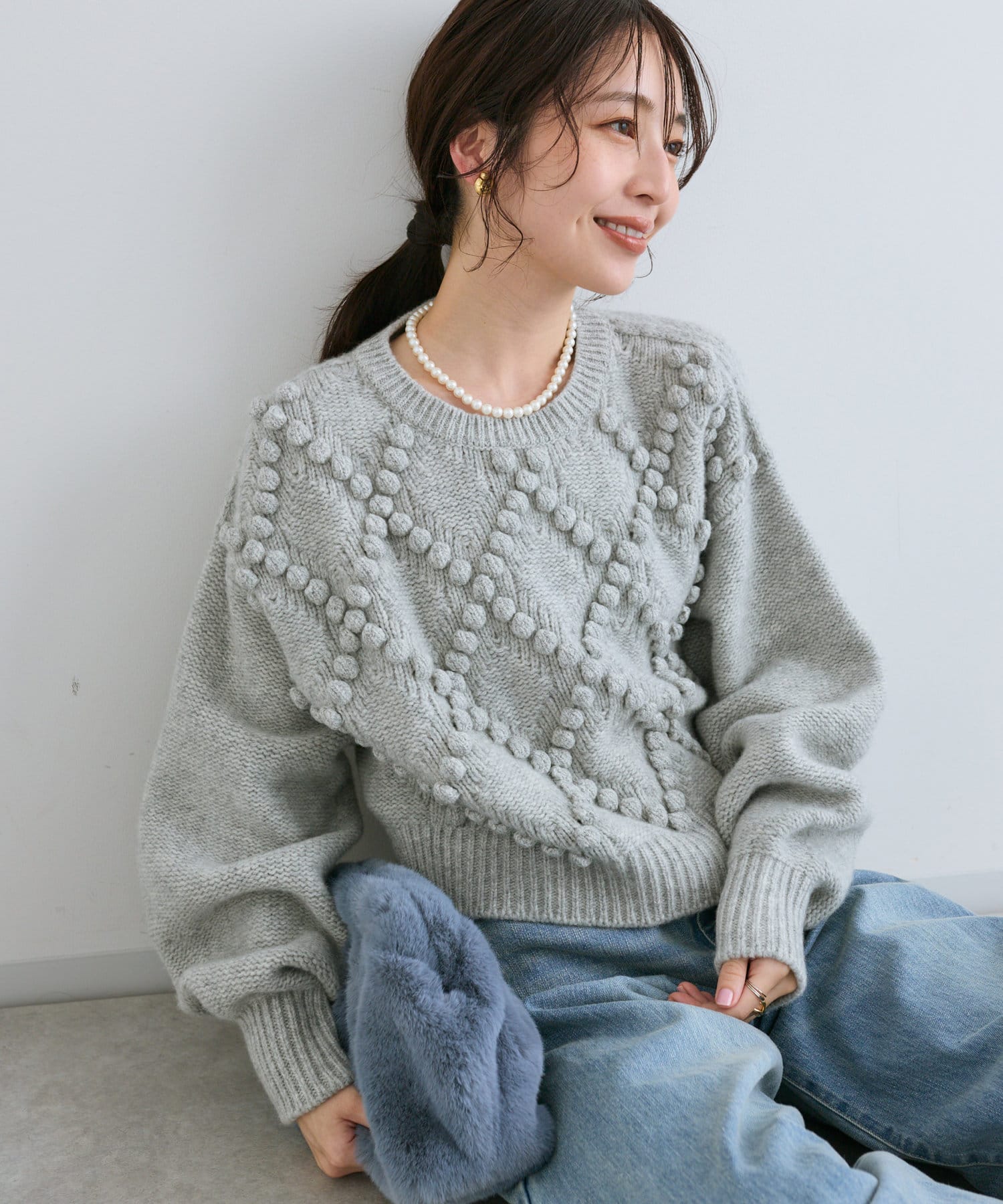 トレンドのクロップド丈に施したダイヤ柄のポップコーンがポイントのニットプルオーバー。